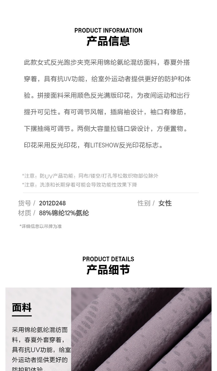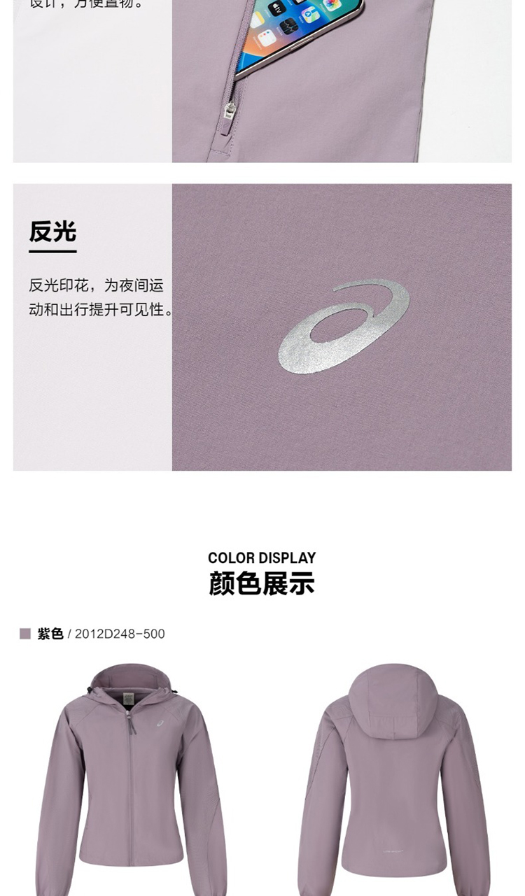 ASICS亚瑟士 女款反光跑步运动舒适休闲夹克