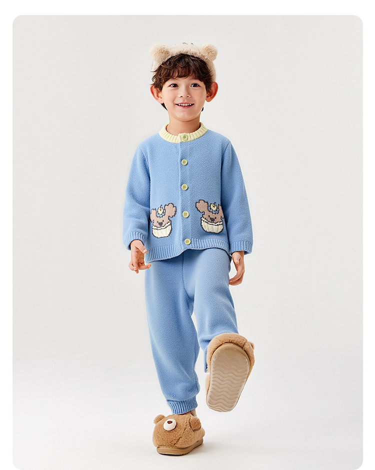 巴拉巴拉balaOne儿童家居服套装男童女童2025冬季新款半边绒保暖