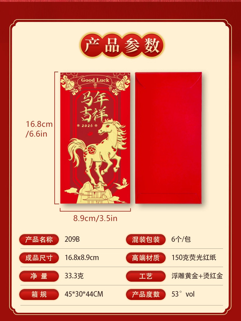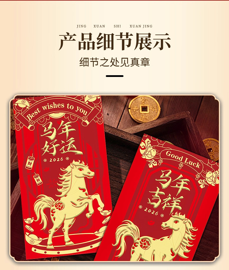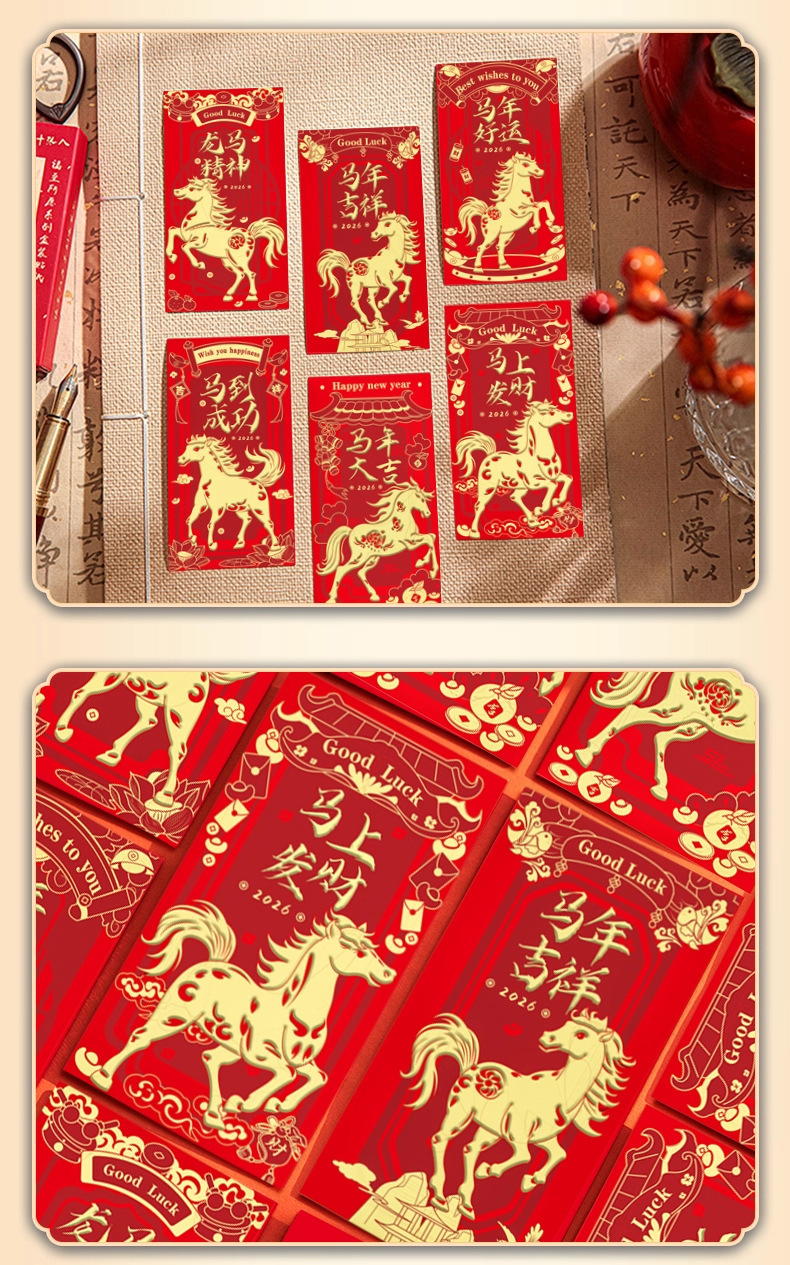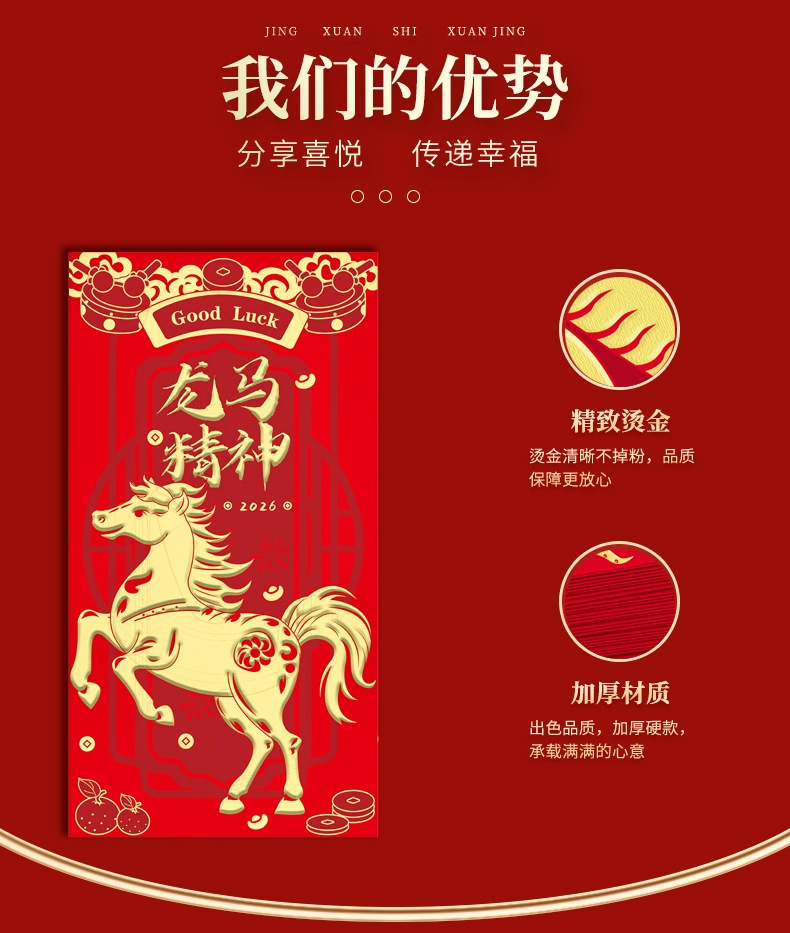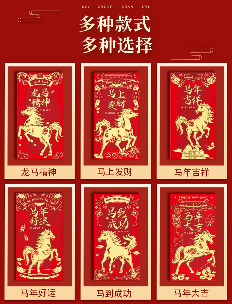 【浮雕烫金工艺❗️分享喜悦传递幸福】2026马年红包袋创意设计新年通用款见面礼专用烫金利是封。ja
