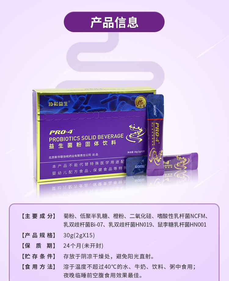 协和益生Pro-4益生菌粉固体饮料30g/盒 2gx15袋 复合益生元