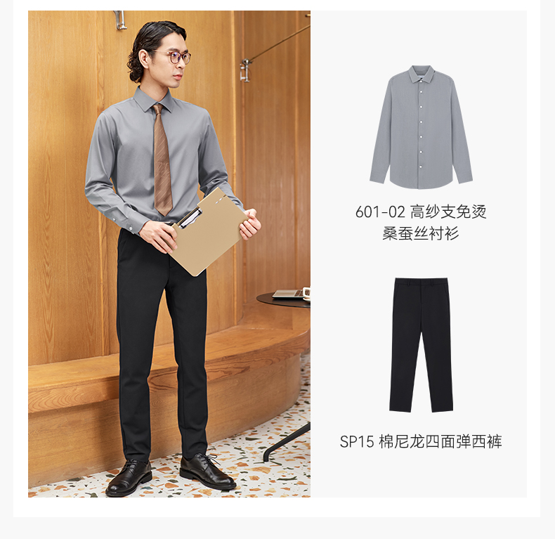十如仕钮扣领拒水汗无痕商务休闲长袖衬衫-SS01-03
