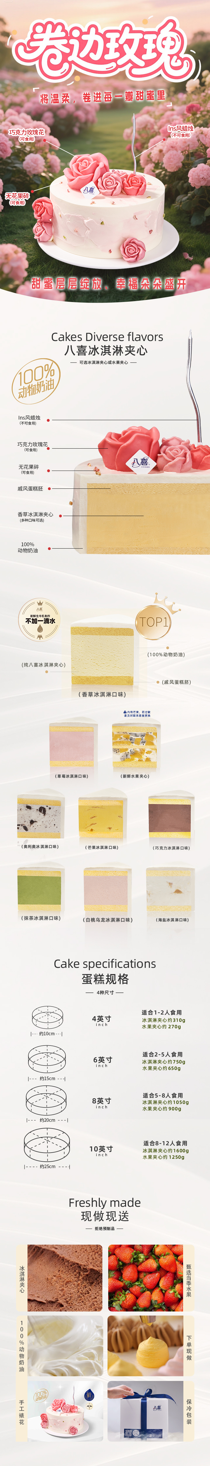 【卷边玫瑰】冰淇淋/水果生日蛋糕