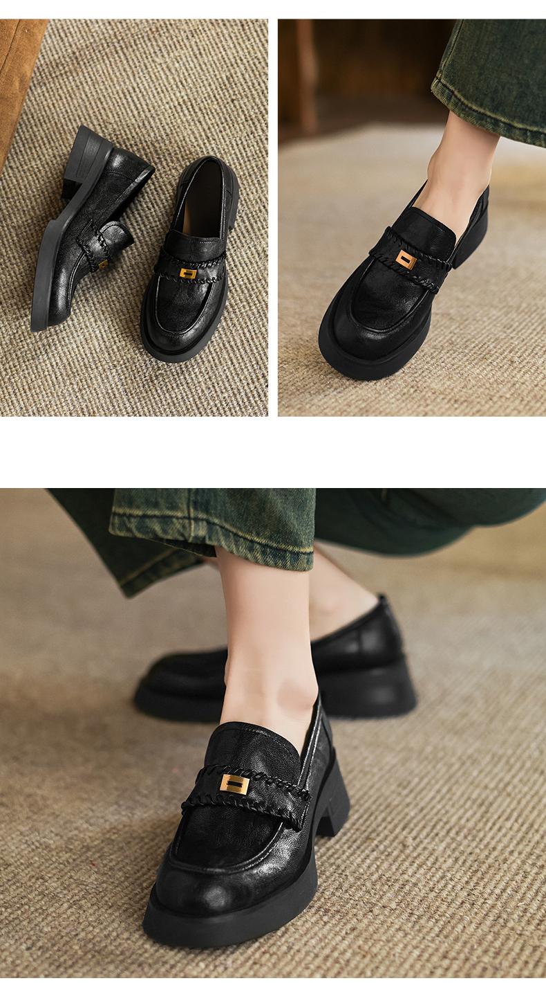 手工女鞋真皮复古英伦风粗跟乐福鞋2025新款深口圆头单鞋5CM 商品图3