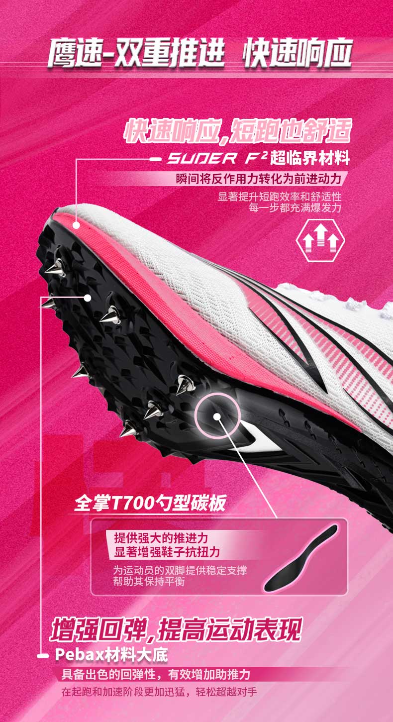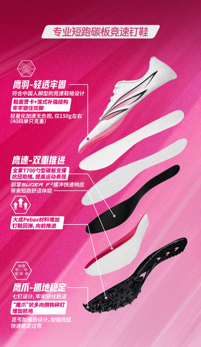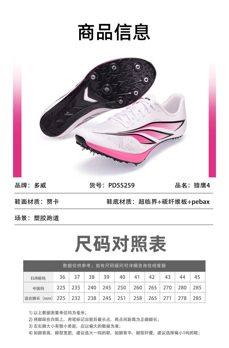 多威猎鹰4代钉鞋新款碳板短跑竞速钉鞋男女学生体育生专业鞋PD55259