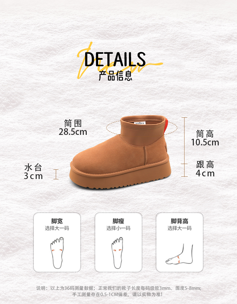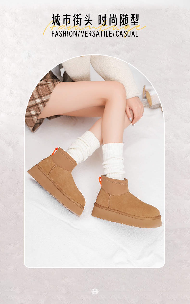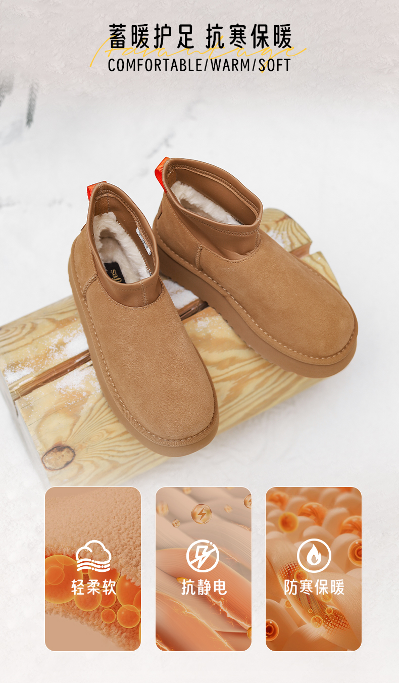 Safiya/索菲娅2024经典休闲厚底百搭防滑加绒时尚雪地靴 SF4411A410