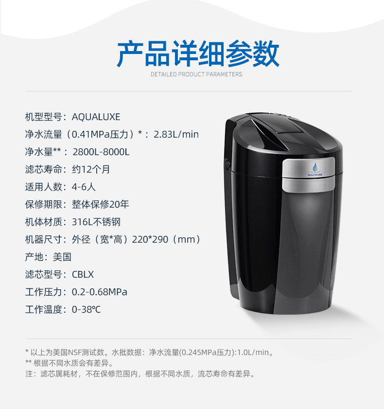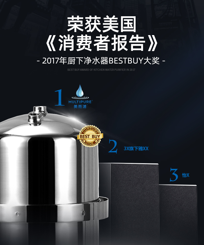 原装美国进口珍浦净水器美而浦厨房家用直饮水机 净水量2.8-8千升