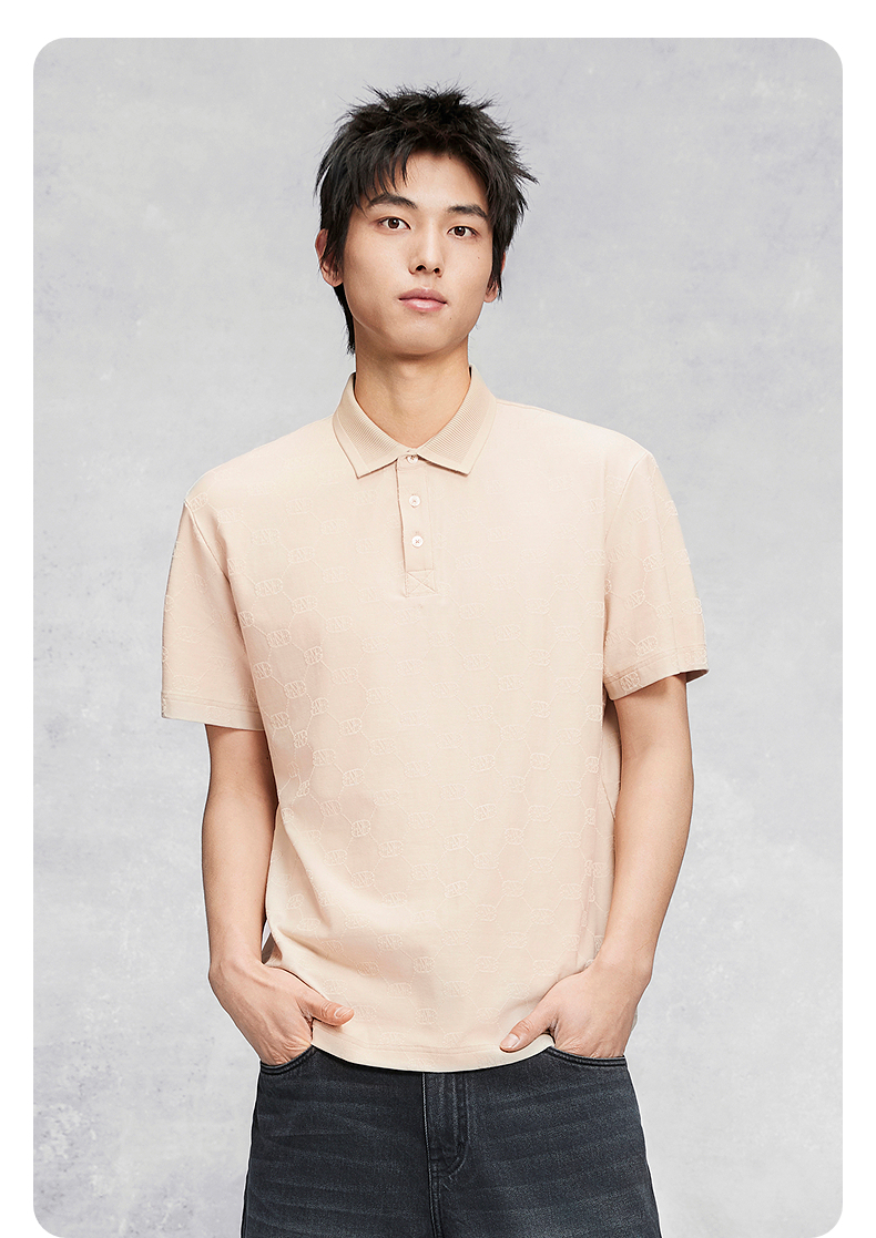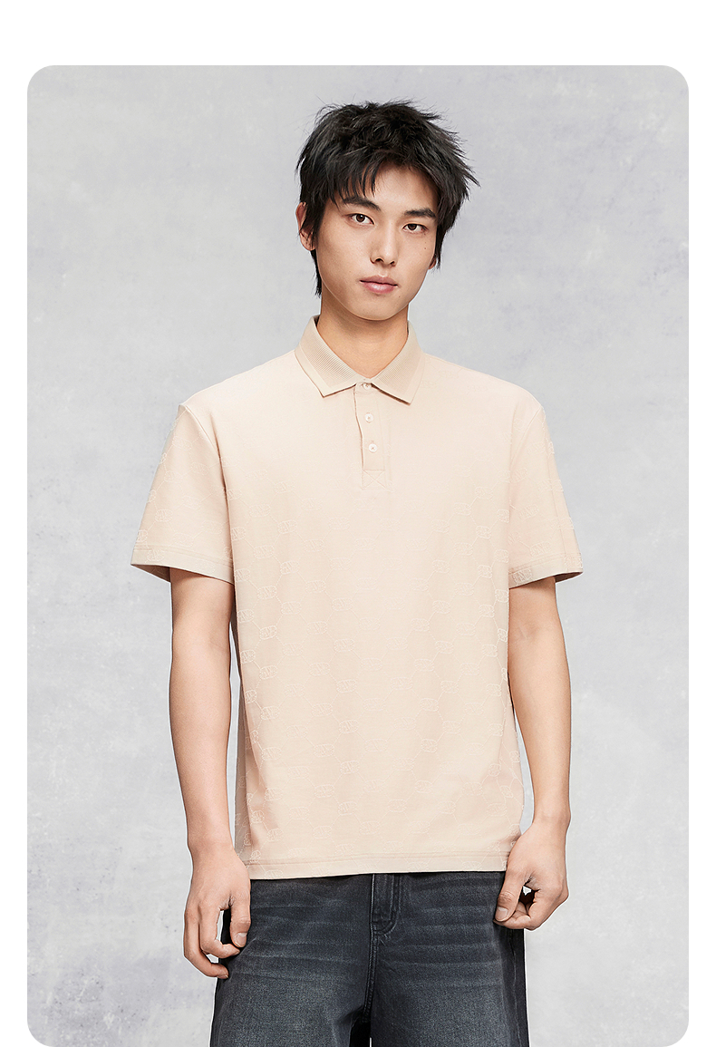 GXG男装 满版印花通勤polo衫男士上衣简约翻领短袖 25夏热卖