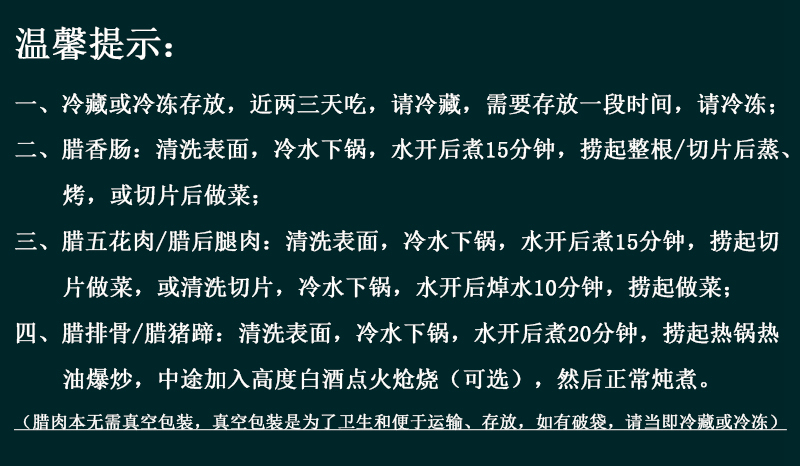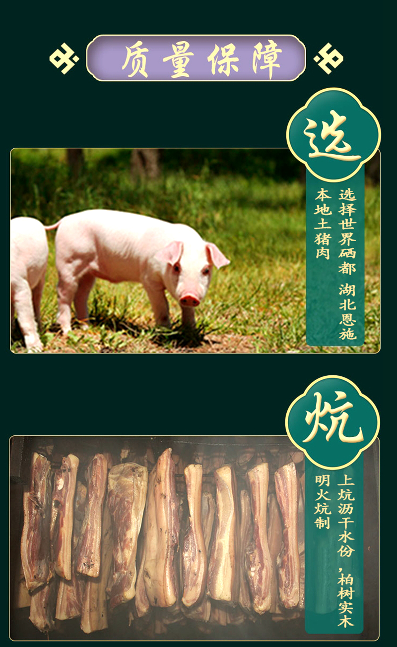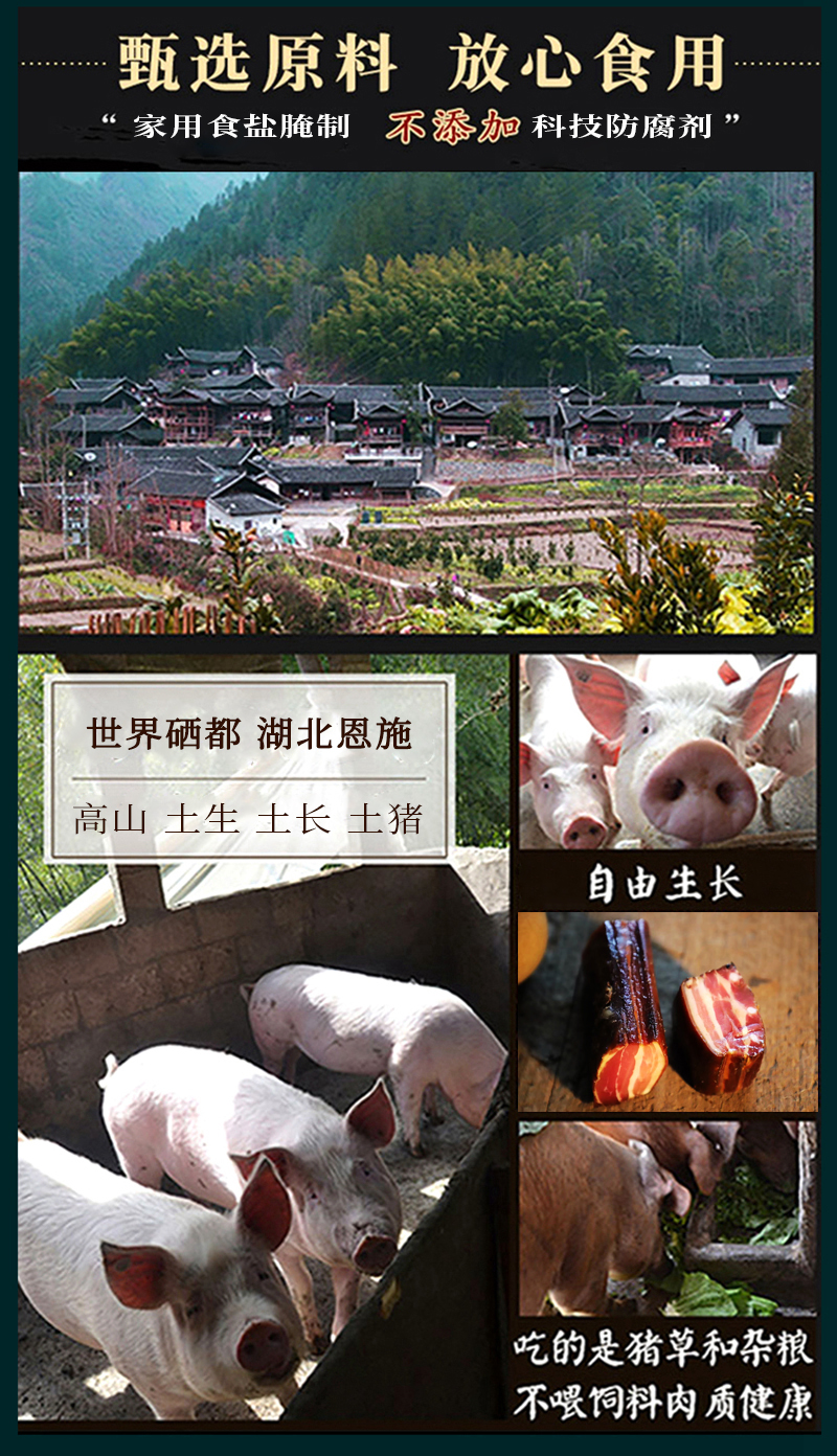 恩施 听瀑崖 土家高山腊肉 腊香肠 后腿肉 五花肉组合 500克*3袋