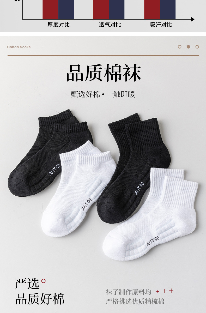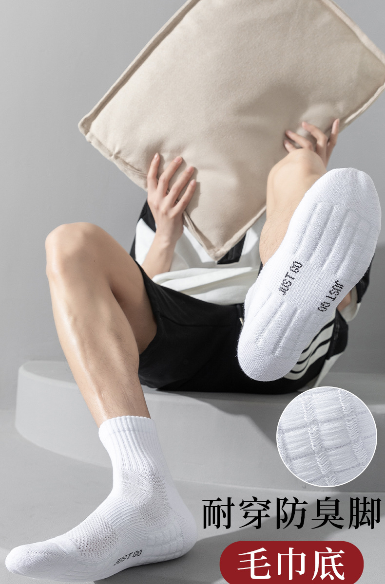 「6双装!数款组合」袜子男春秋中筒袜毛巾底防滑运动袜棉白色短筒袜篮球袜配饰