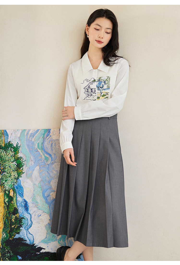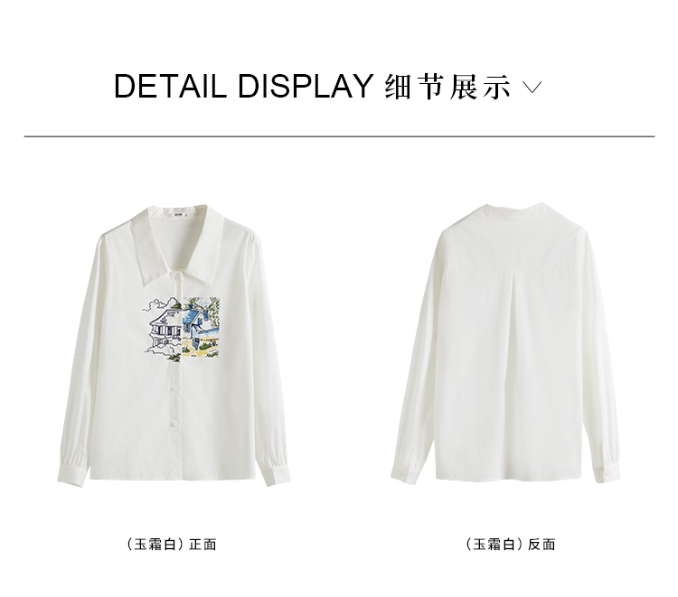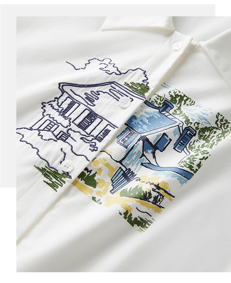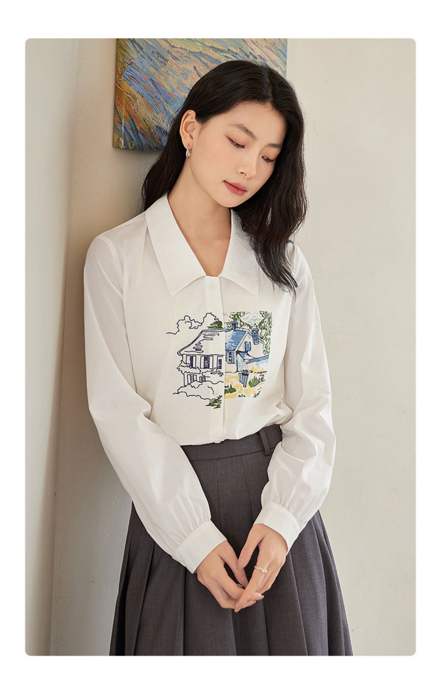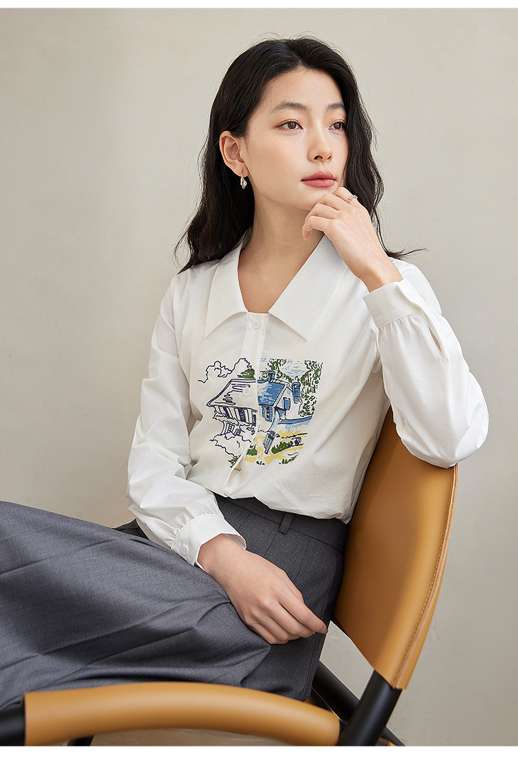 【年终特卖】【梵高联名】熙世界白色印花衬衫女长袖宽松休闲上衣2025秋日新款