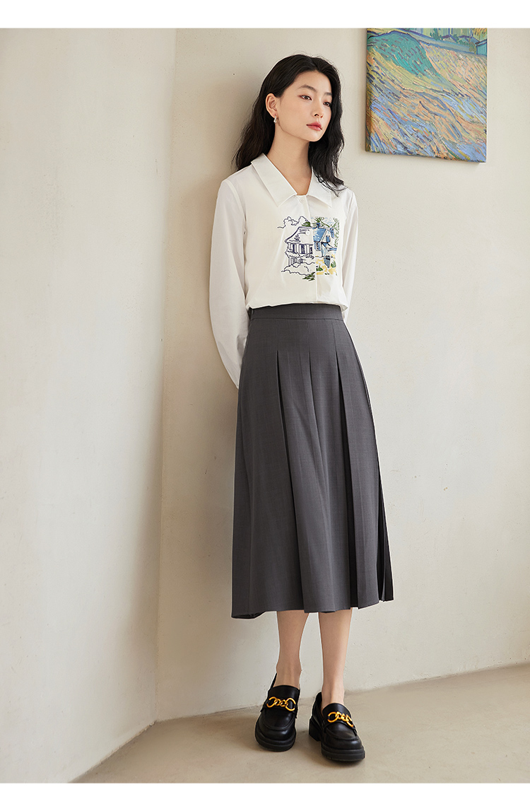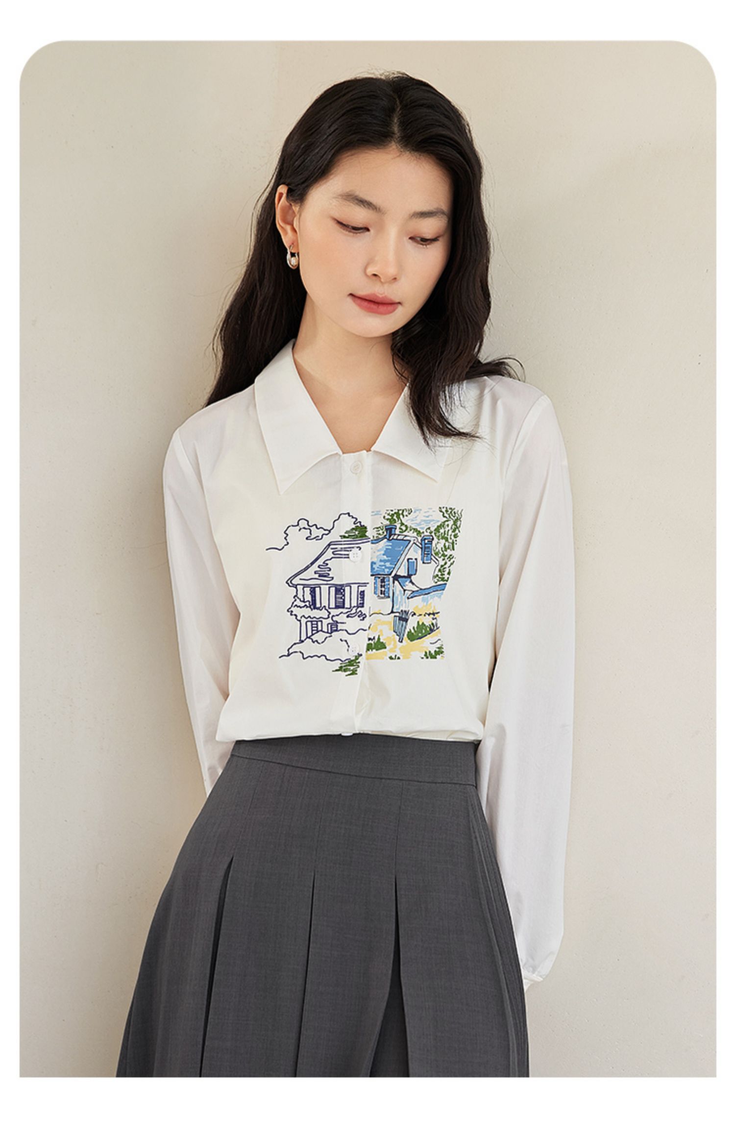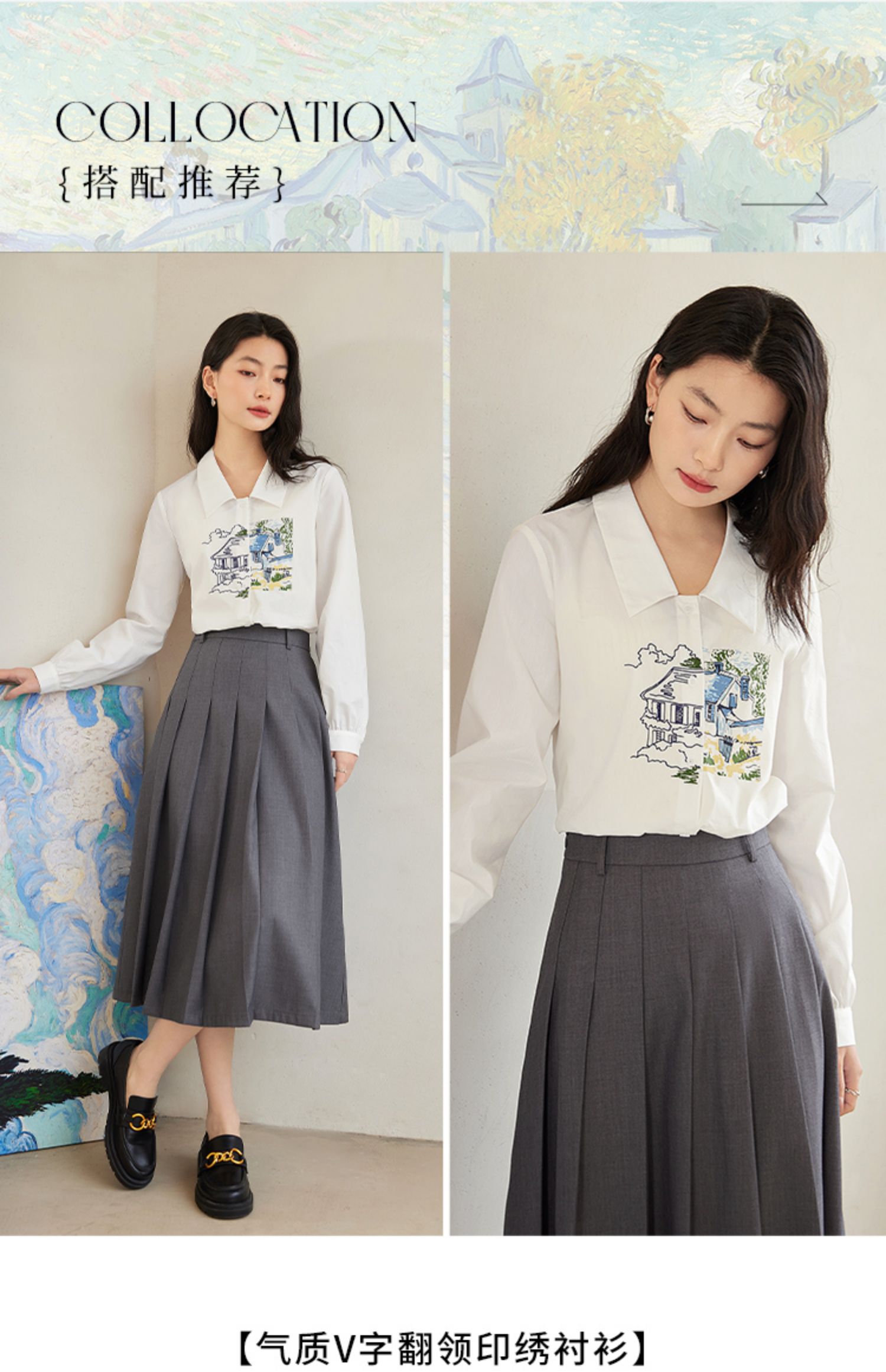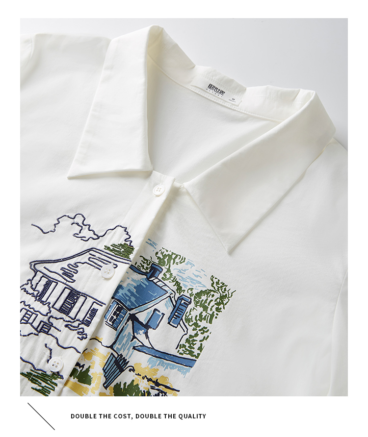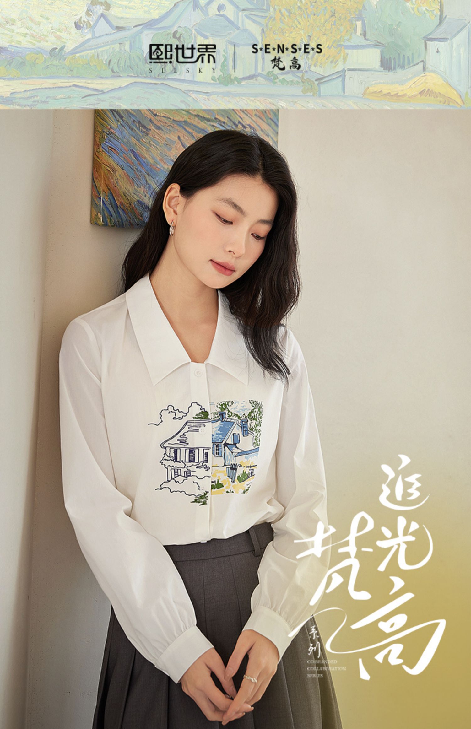 【年终特卖】【梵高联名】熙世界白色印花衬衫女长袖宽松休闲上衣2025秋日新款