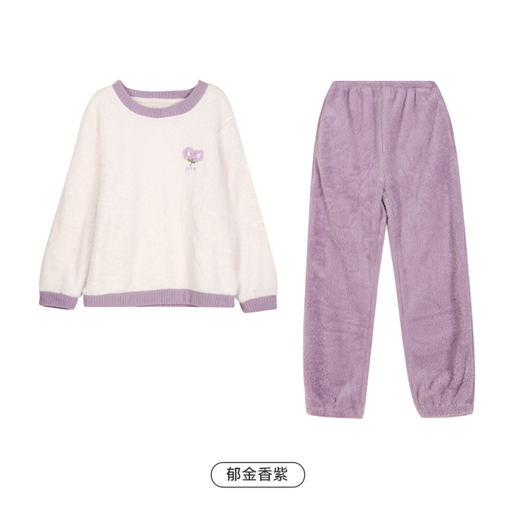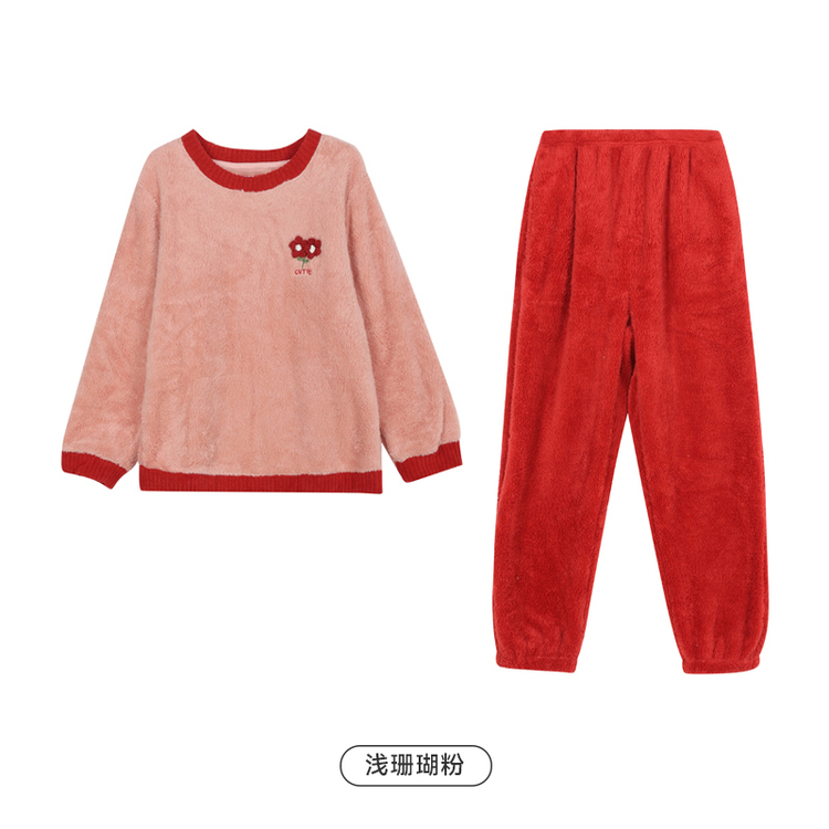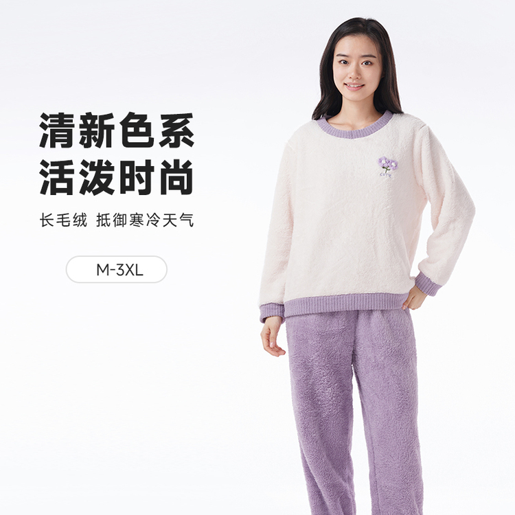 都市丽人睡衣长毛绒睡衣女士家居服长袖长裤法兰绒套装LHH2Q9