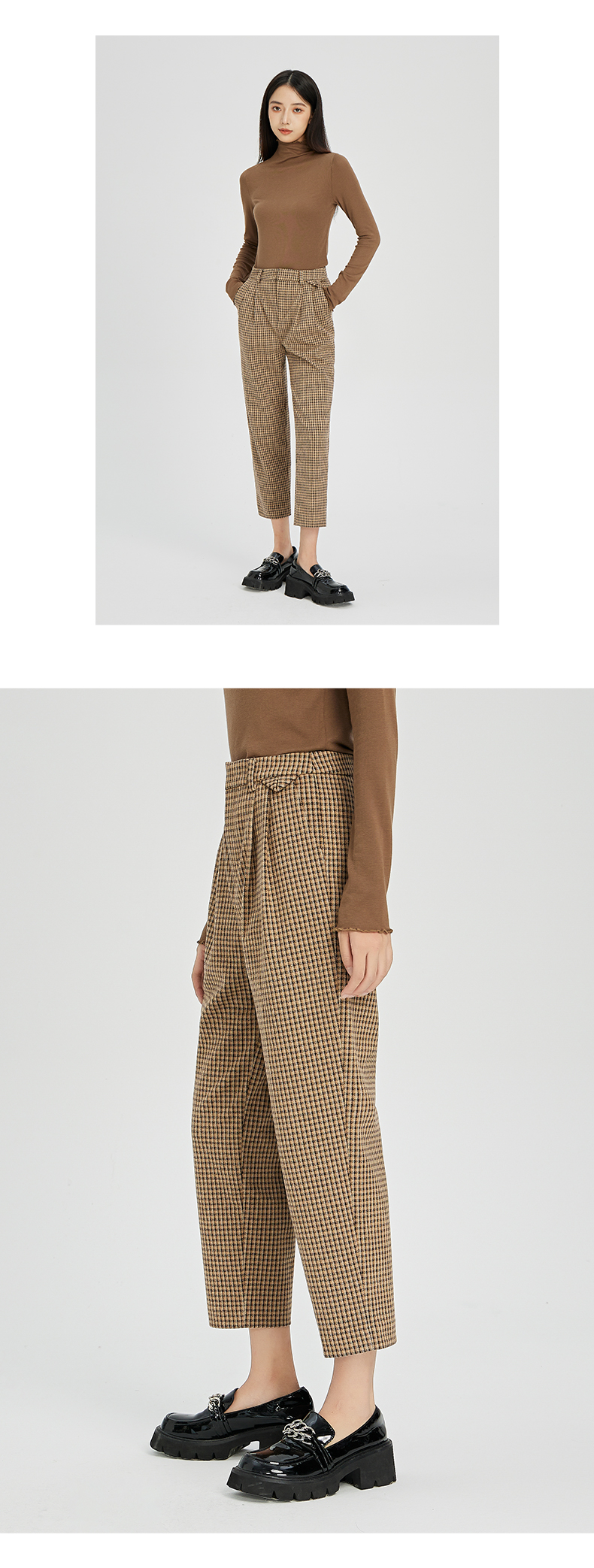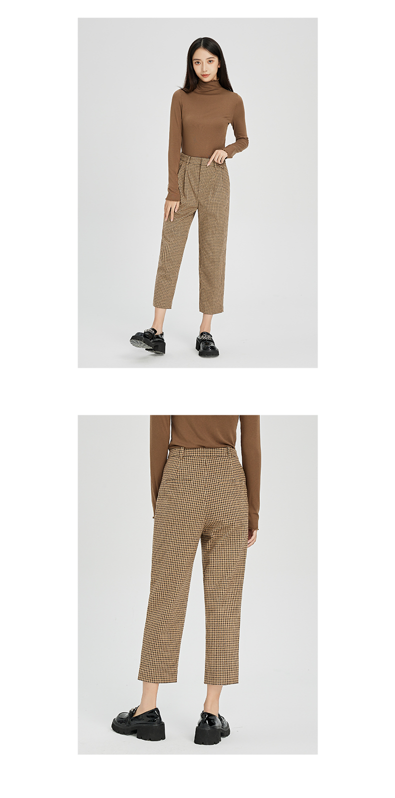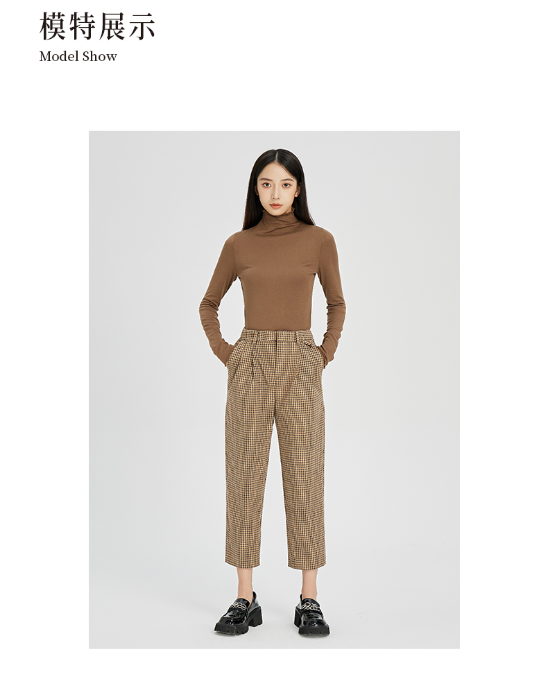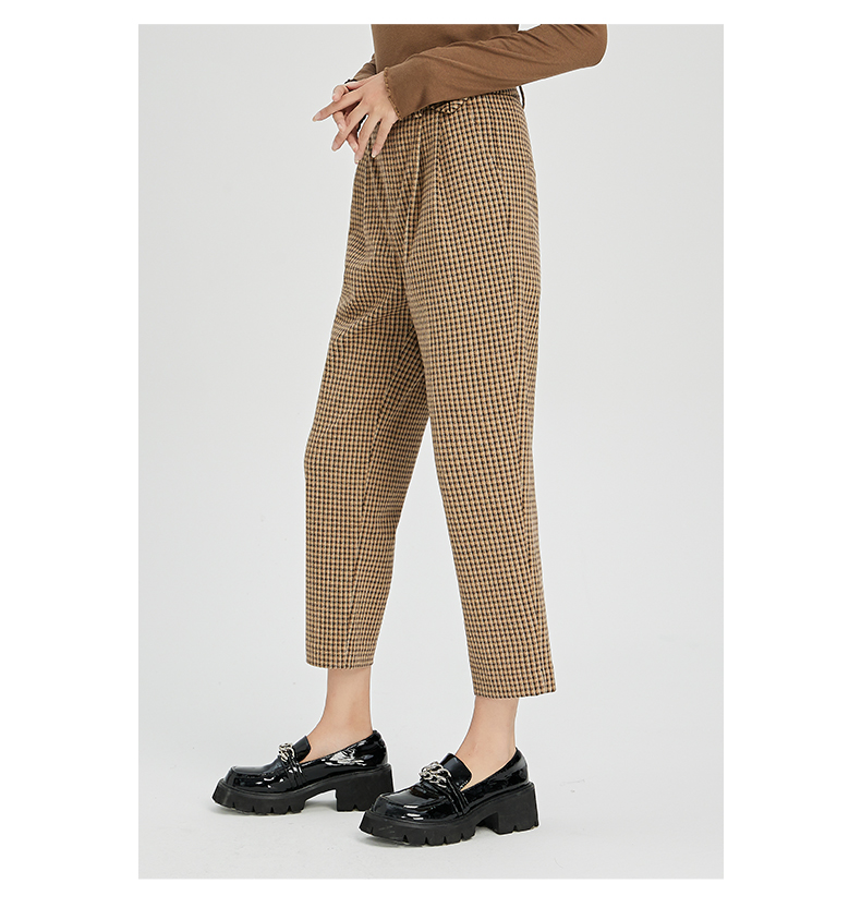 NUTS春秋款气质百搭高腰直筒显瘦格子休闲西装长裤女241073194B