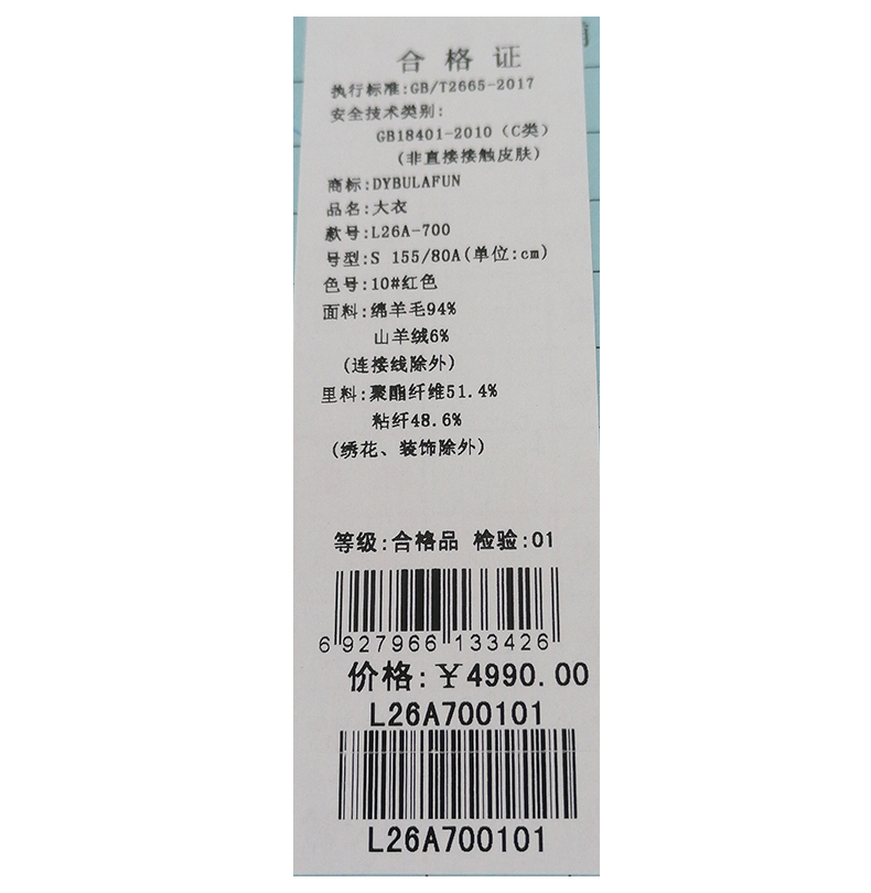 戴布拉芬大衣L26A700