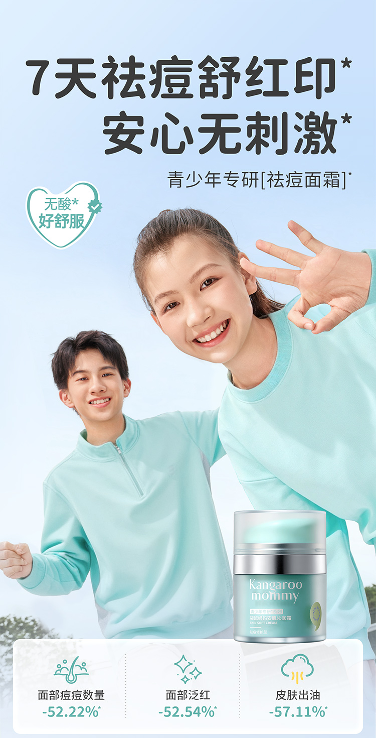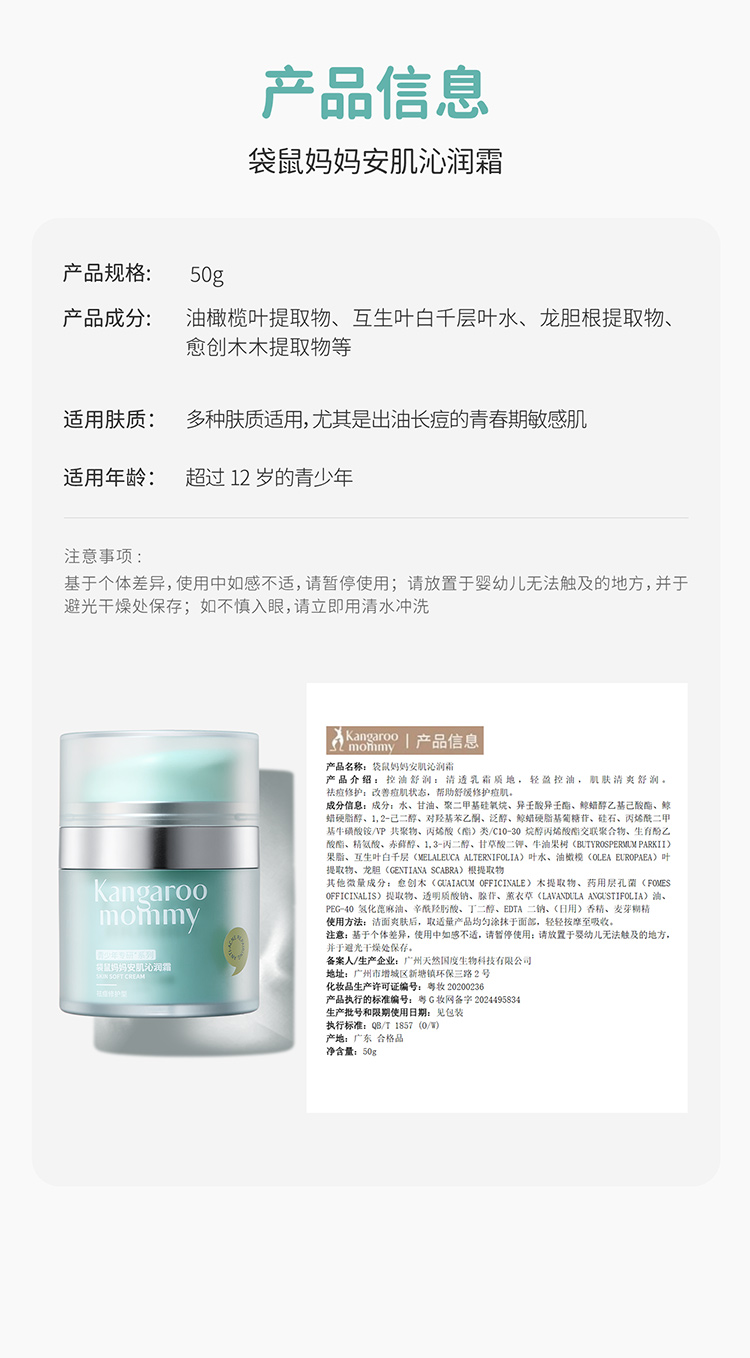 【青少年祛痘面霜】7天控油祛痘修红 袋鼠妈妈安肌沁润霜50g