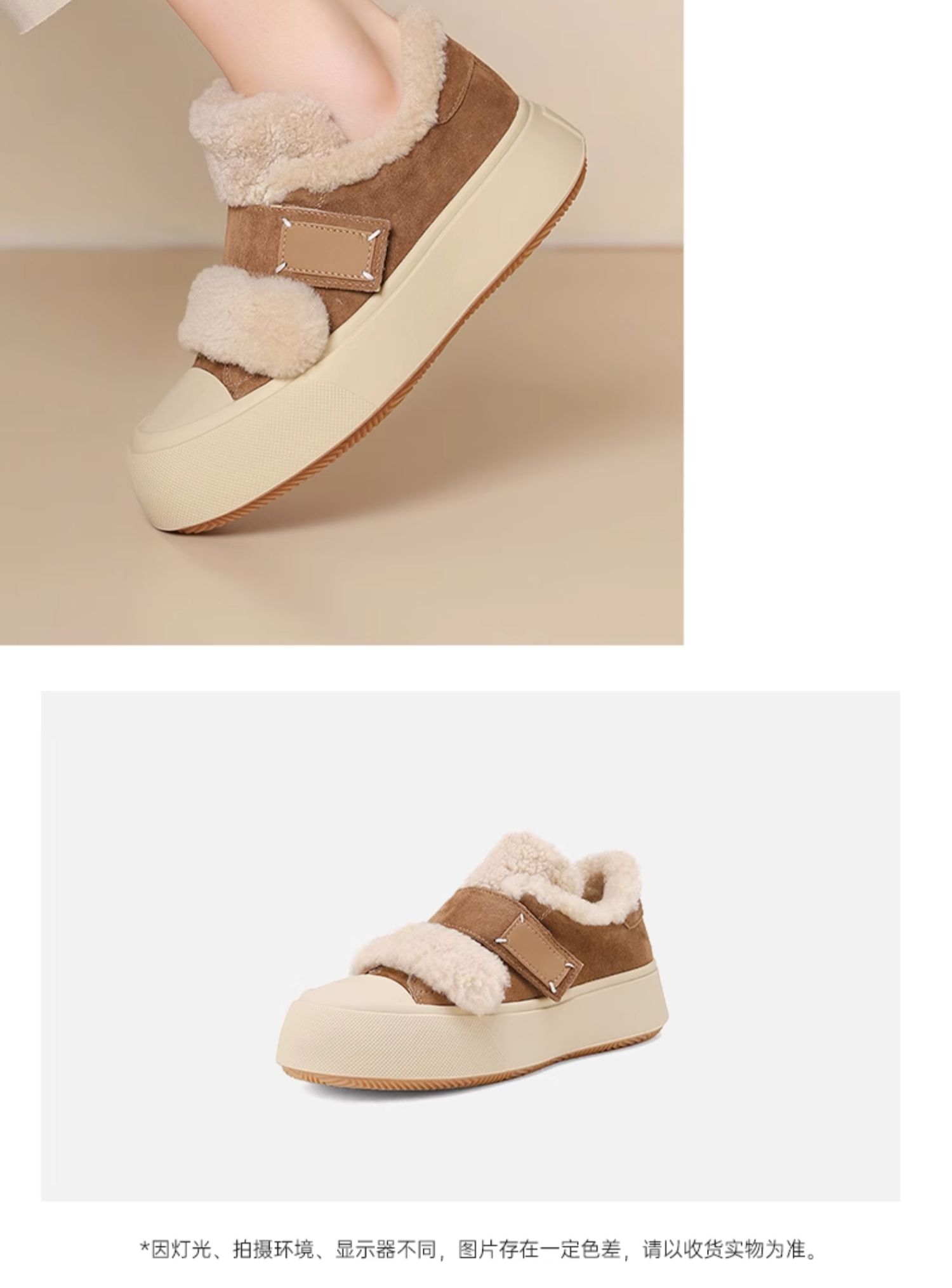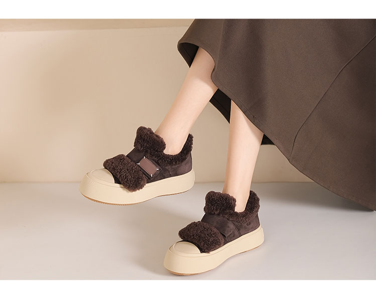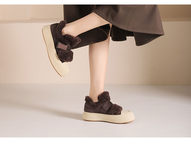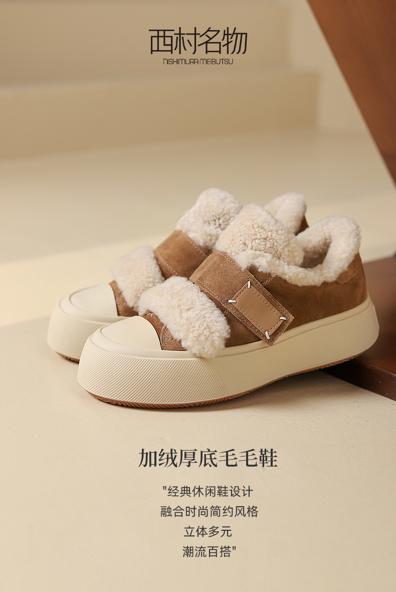 西村名物2024秋季新款时尚简约保暖加绒厚底毛毛鞋百搭休闲鞋女T24DM47971