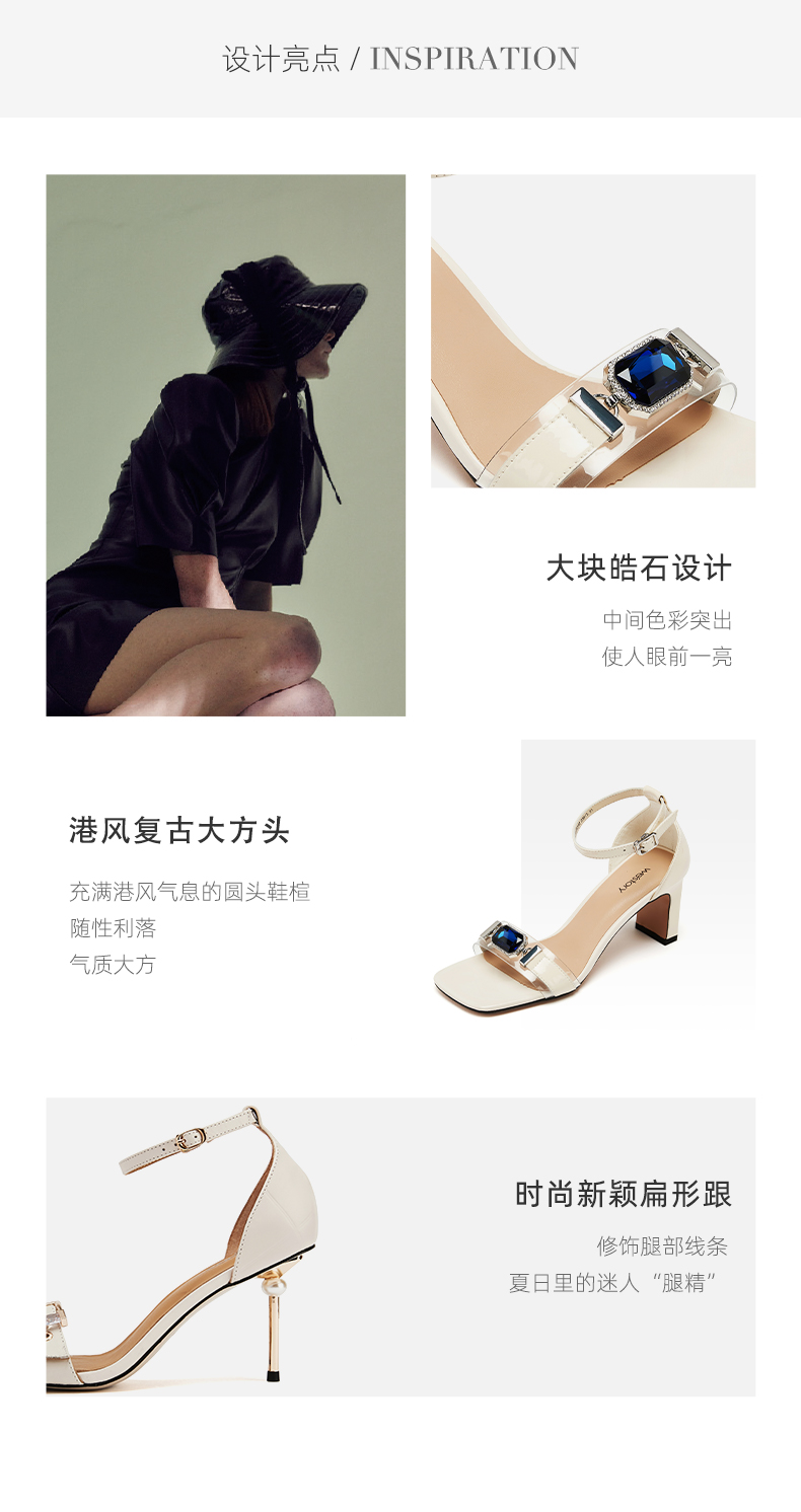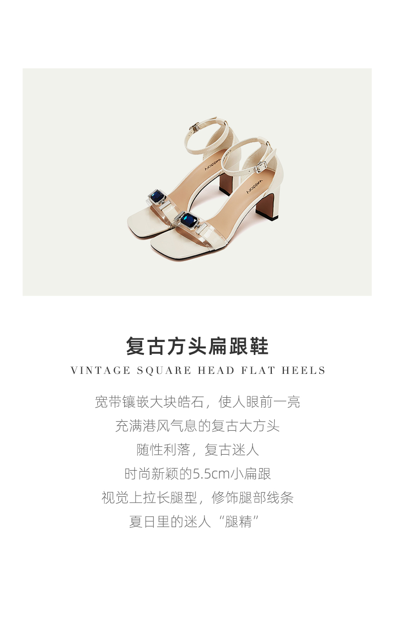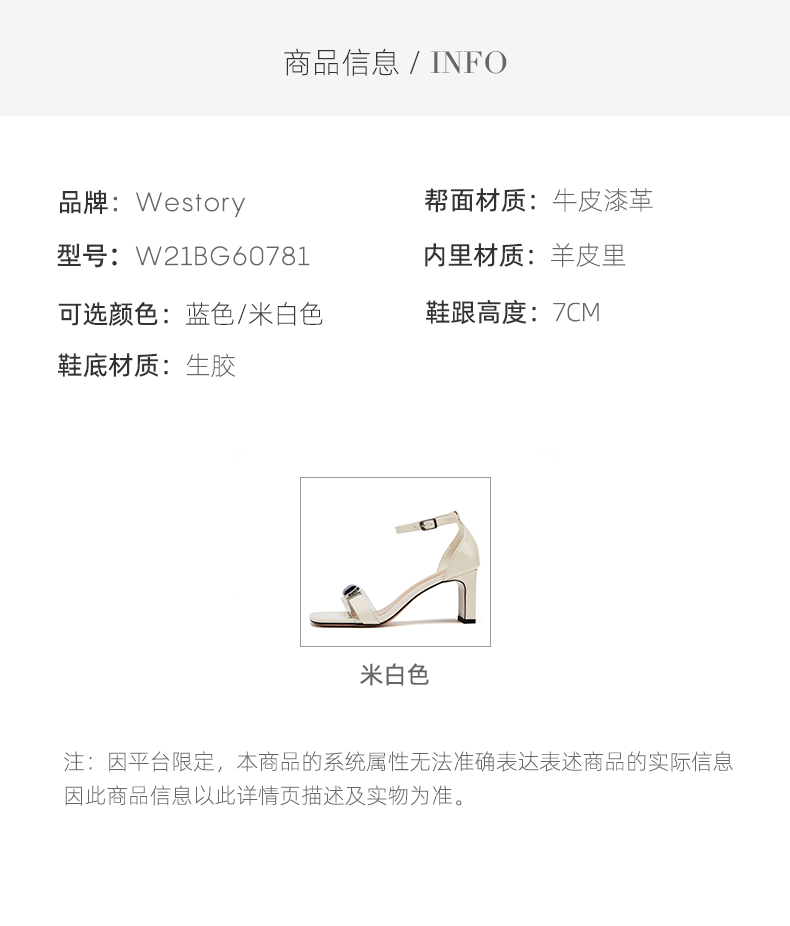 westory女鞋2021夏季新款漆皮仙女风一字带凉鞋高跟60781