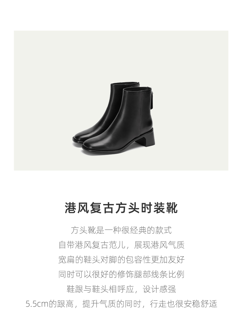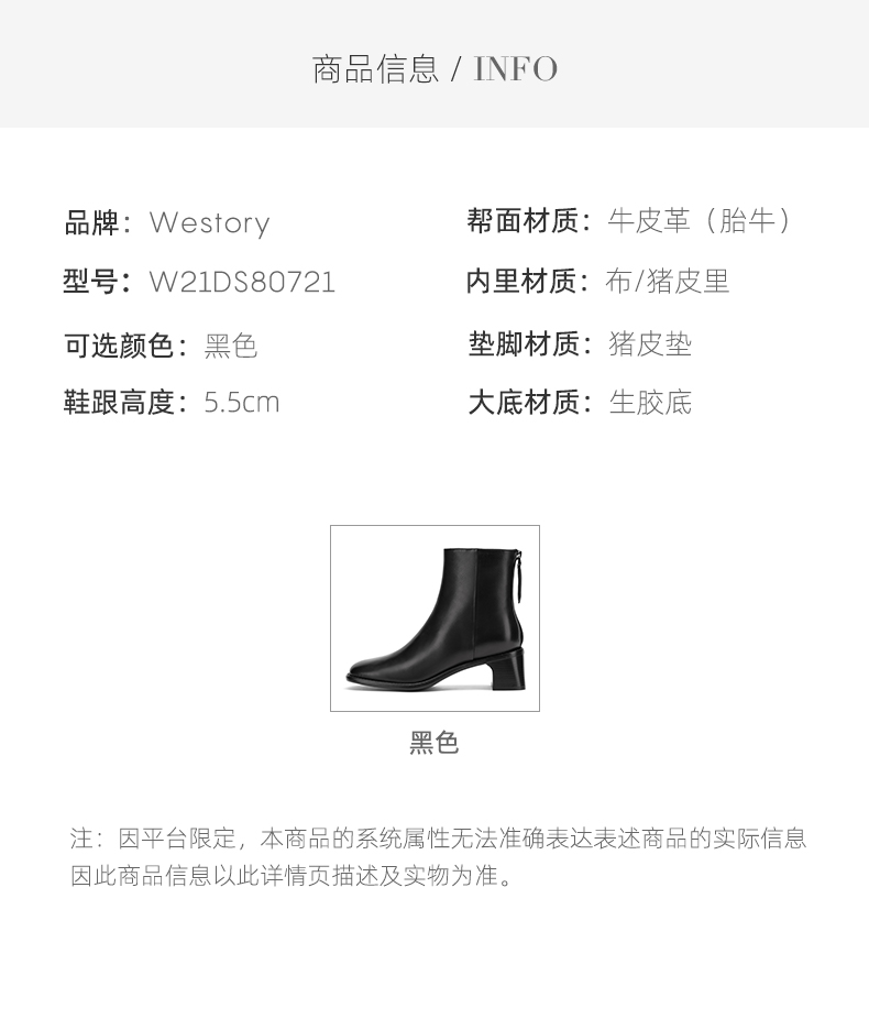 westory2021秋季新款短靴纯色粗跟时尚英伦风靴子女W21DS80721