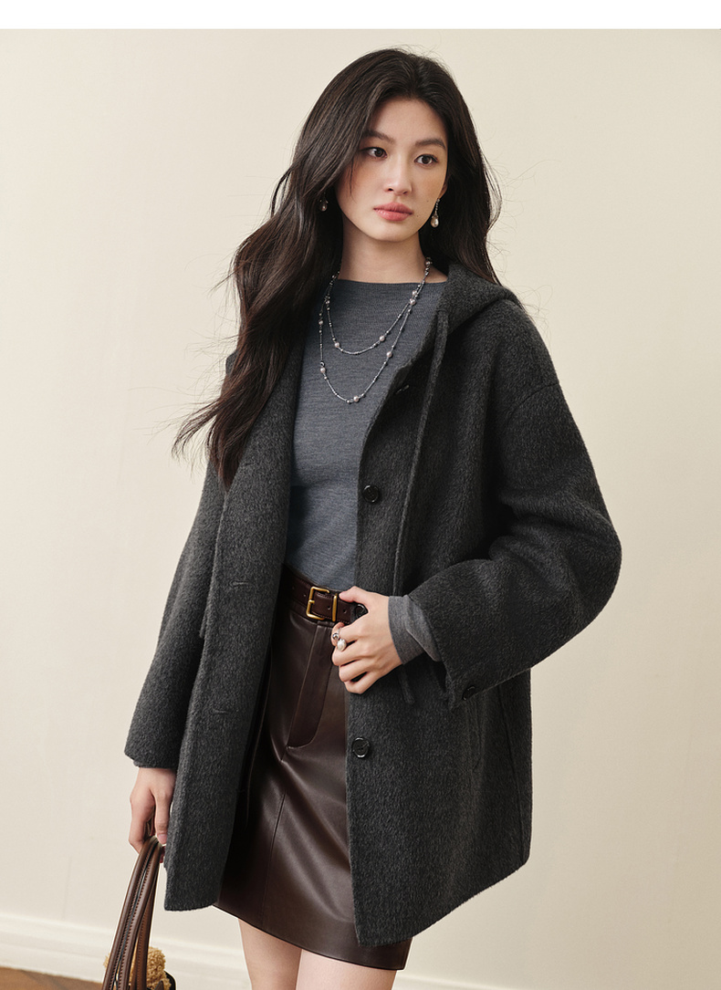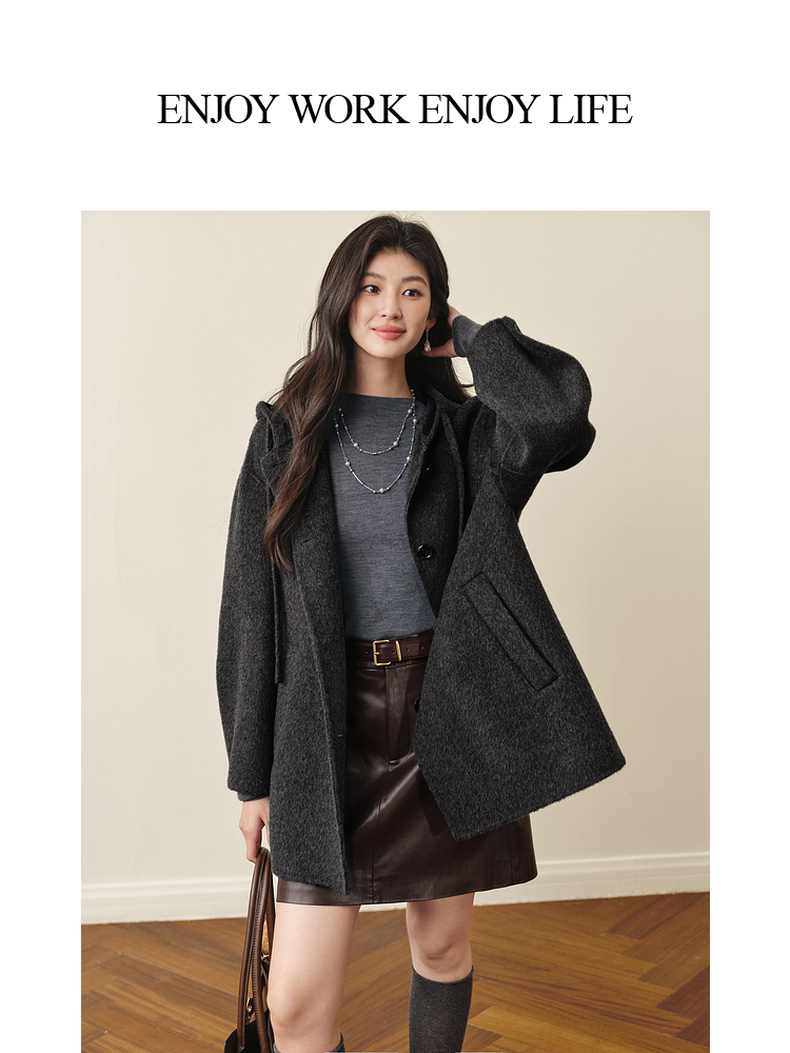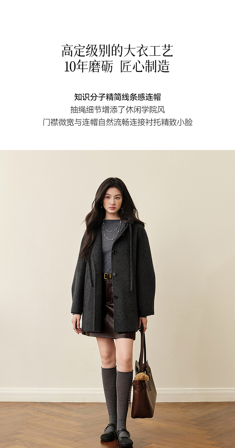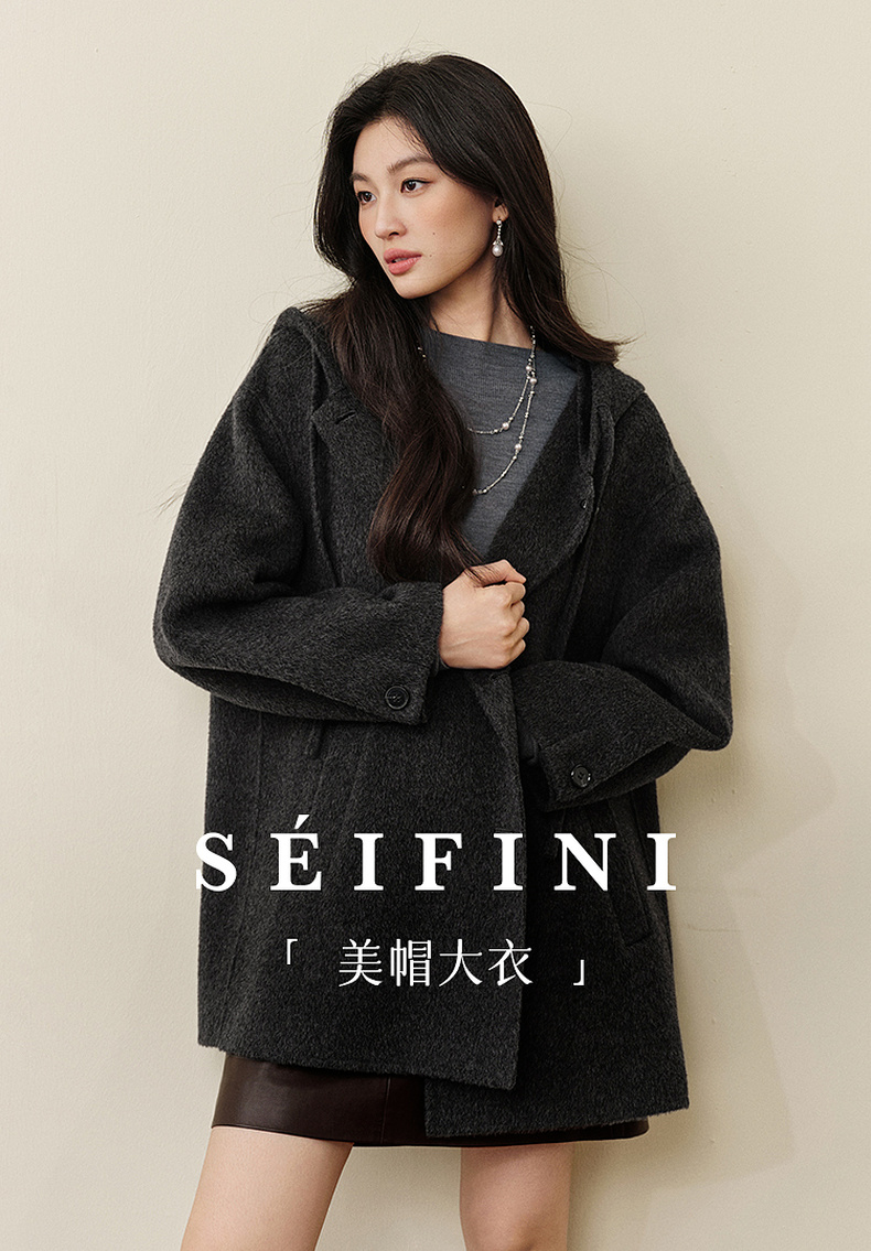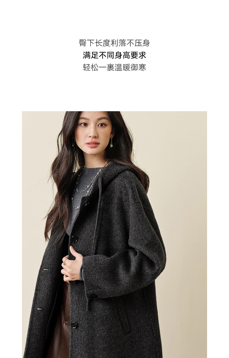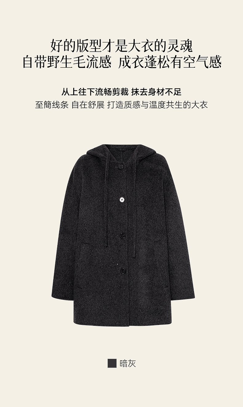 【严选】诗凡黎羊毛骆驼绒休闲连帽大衣2025冬新款宽松高级感双面呢外套女7G9370791