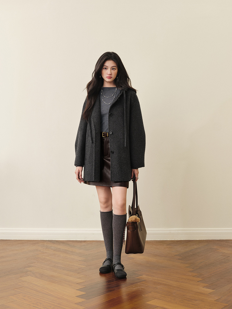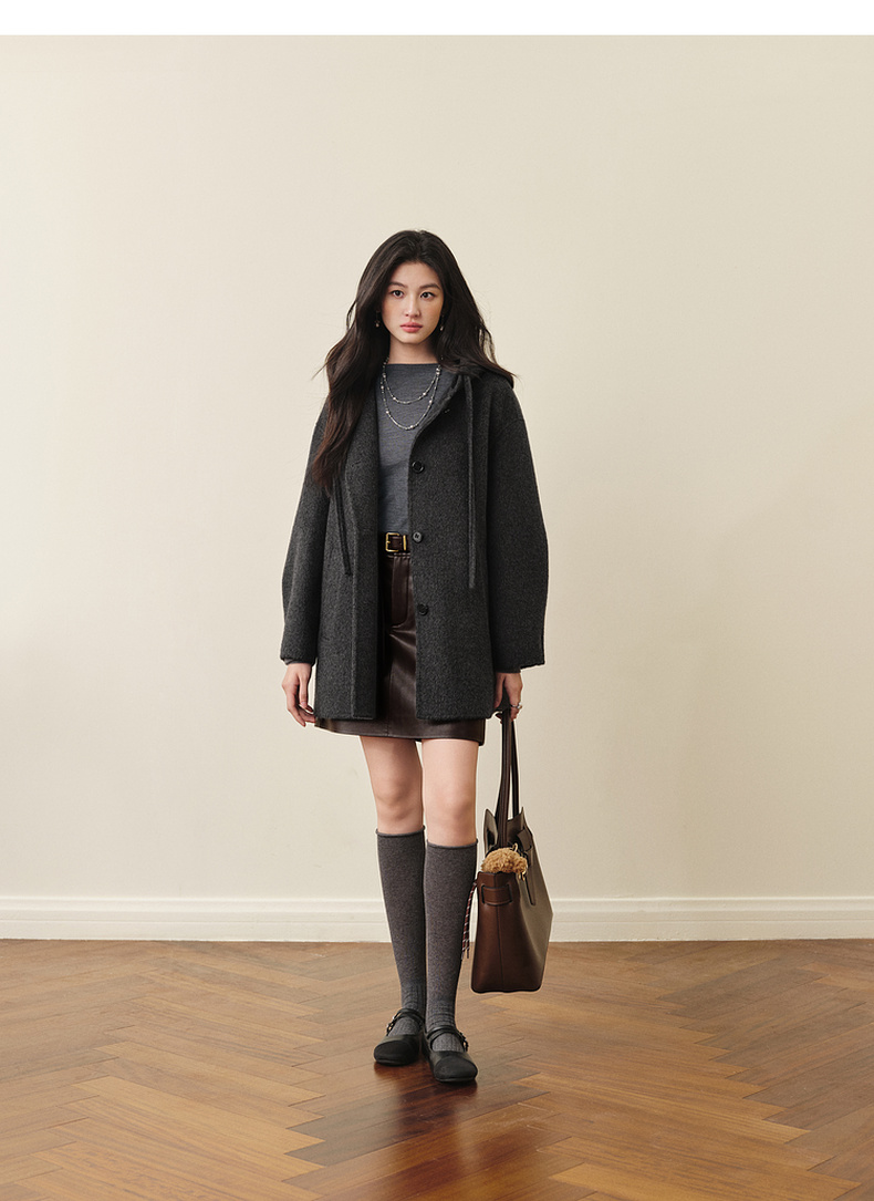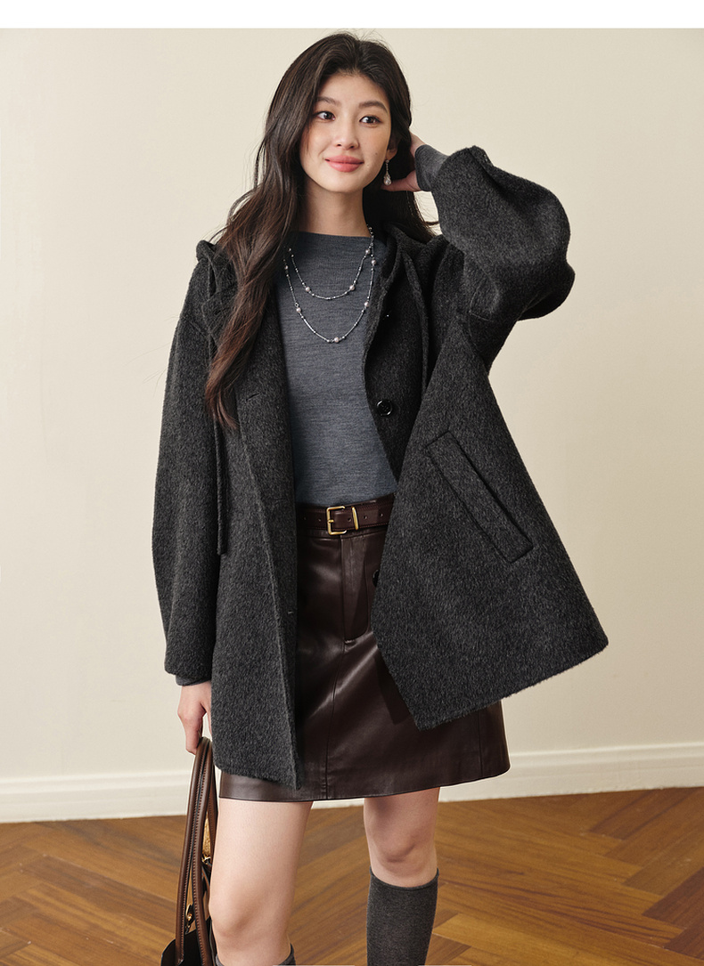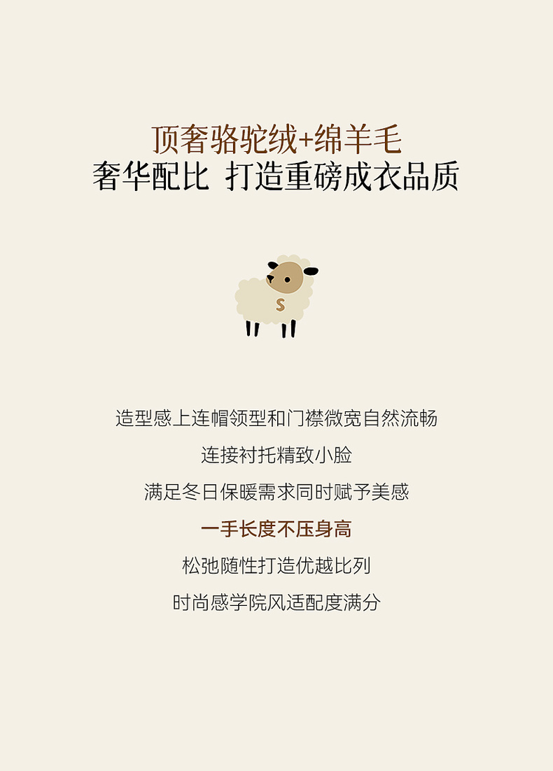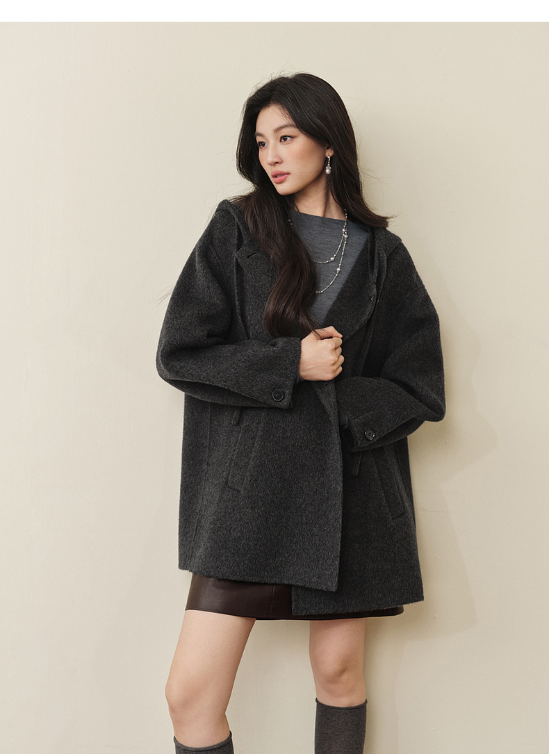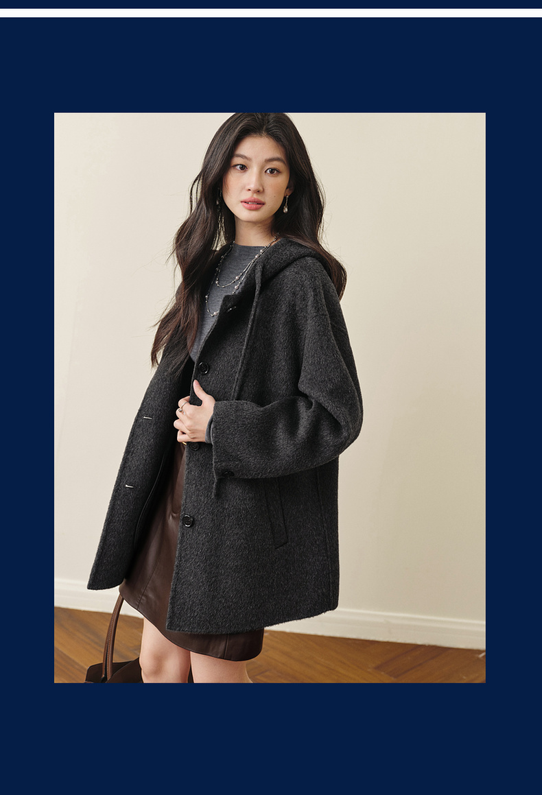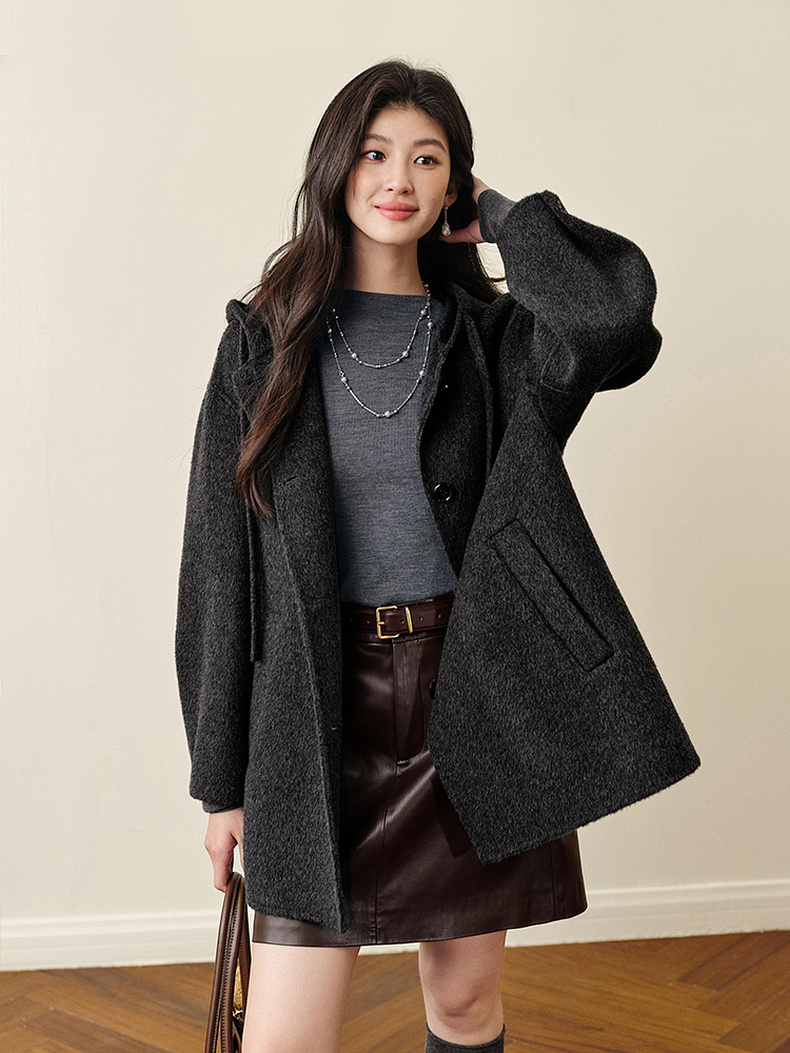 【严选】诗凡黎羊毛骆驼绒休闲连帽大衣2025冬新款宽松高级感双面呢外套女7G9370791