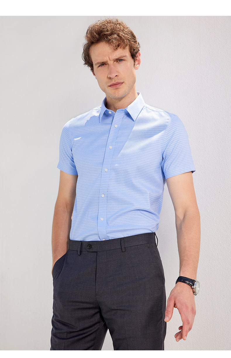 M&D/名盾商务短袖衬衫夏季新款男士正装DP免烫半袖格纹衬衣