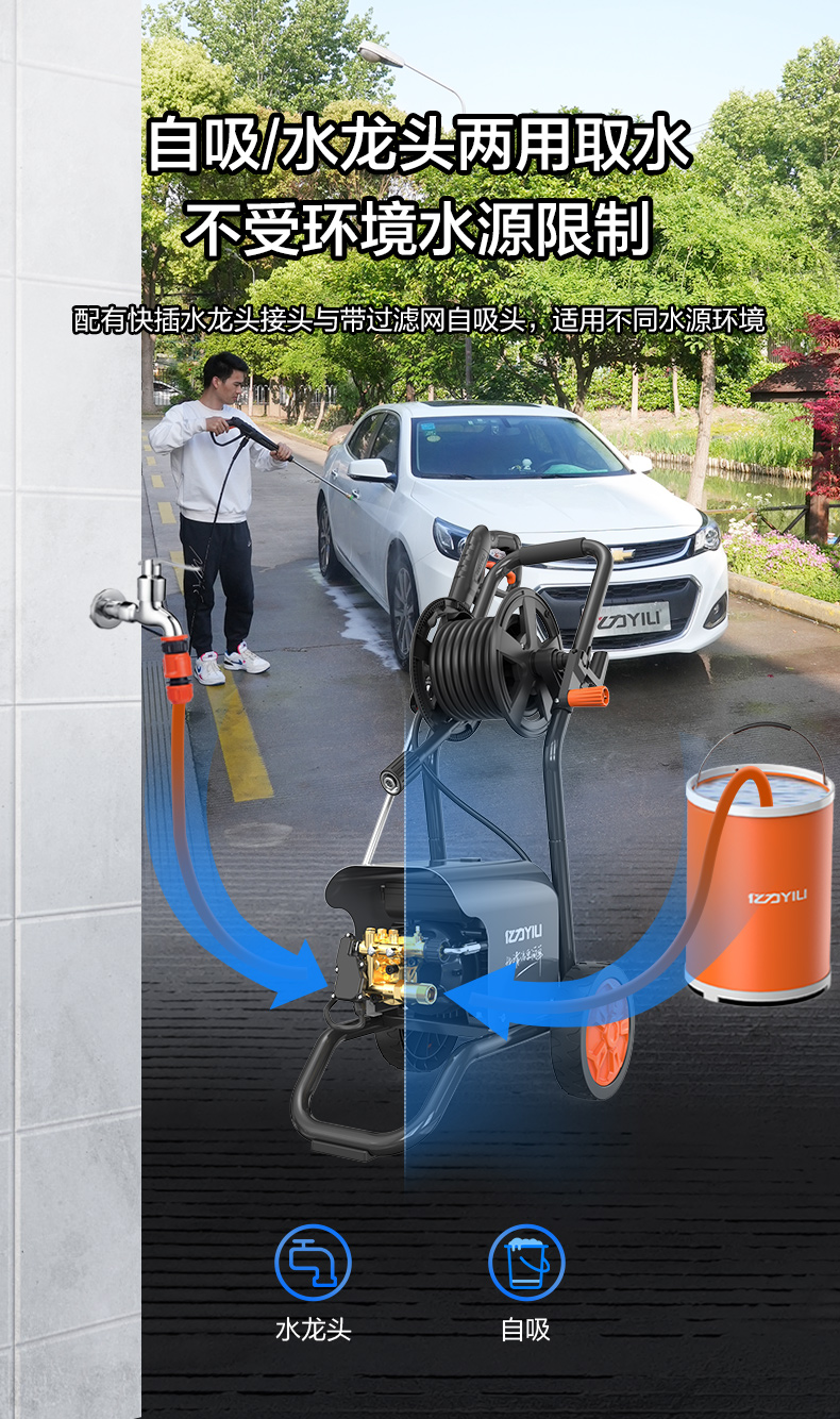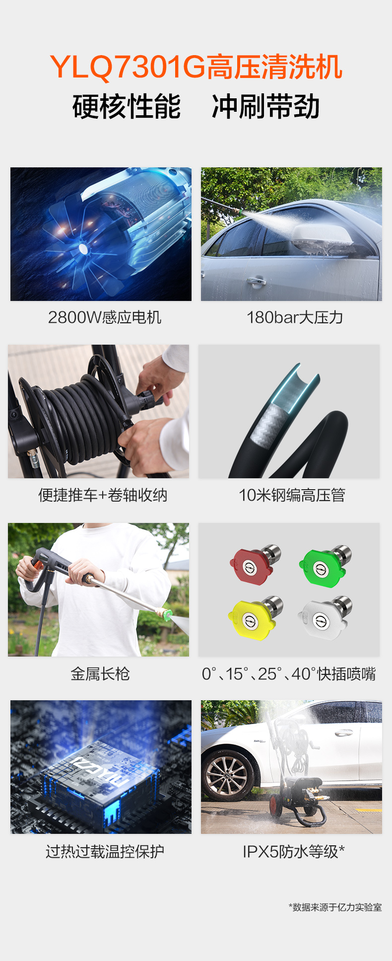 【小店】亿力YLQ7301家商用高压清洗机洗车机大功率汽美水泵高压水枪强力冲地