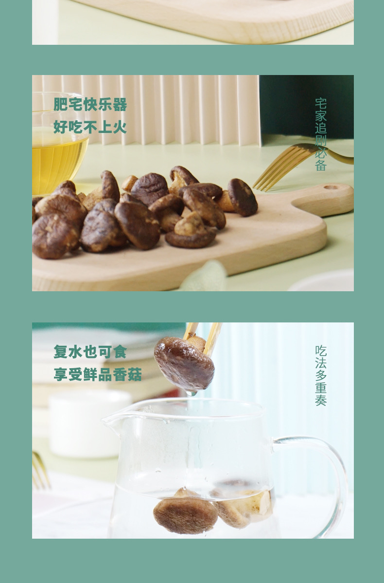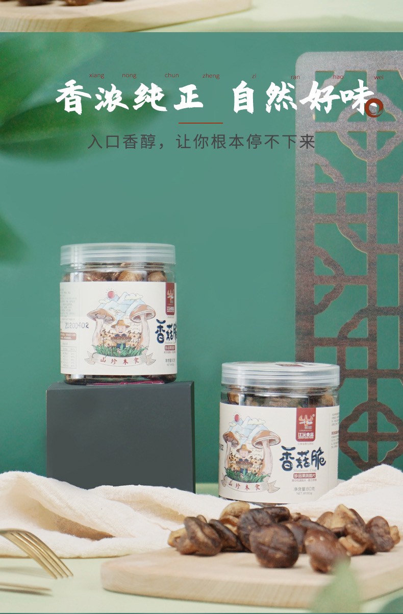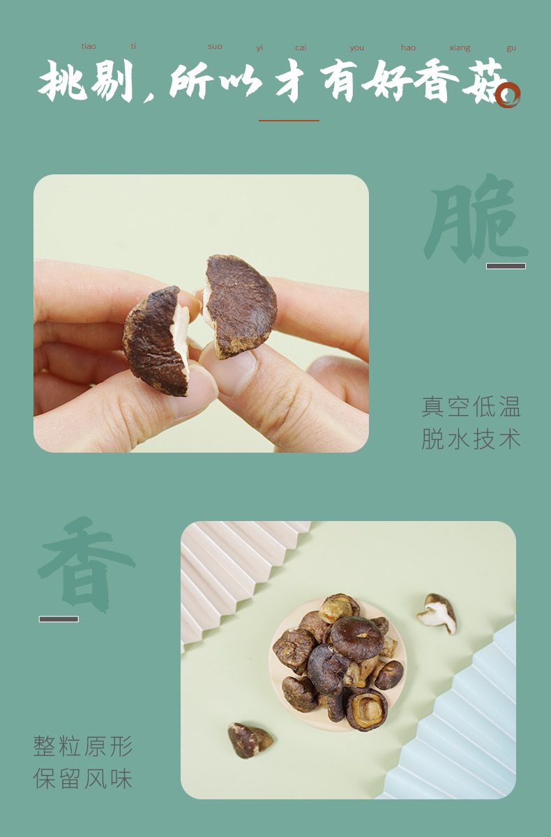 脱水后的香菇香气更加聚集浓烈,口感清脆甘香