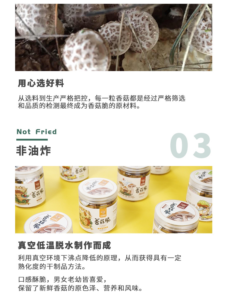 【香菇脆】蔬菜当做零食吃/真空低温脱水技术/告别油炸低脂低热高纤维/无任何添加/鲜香酥脆 老少皆宜2瓶包邮
