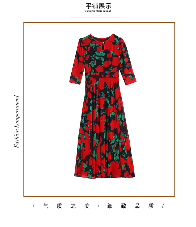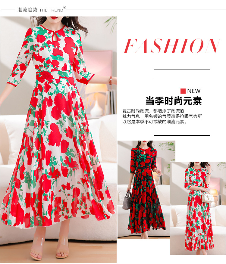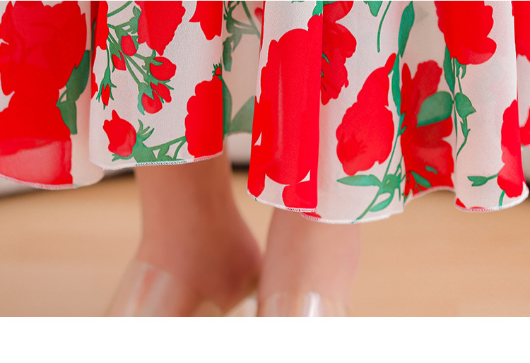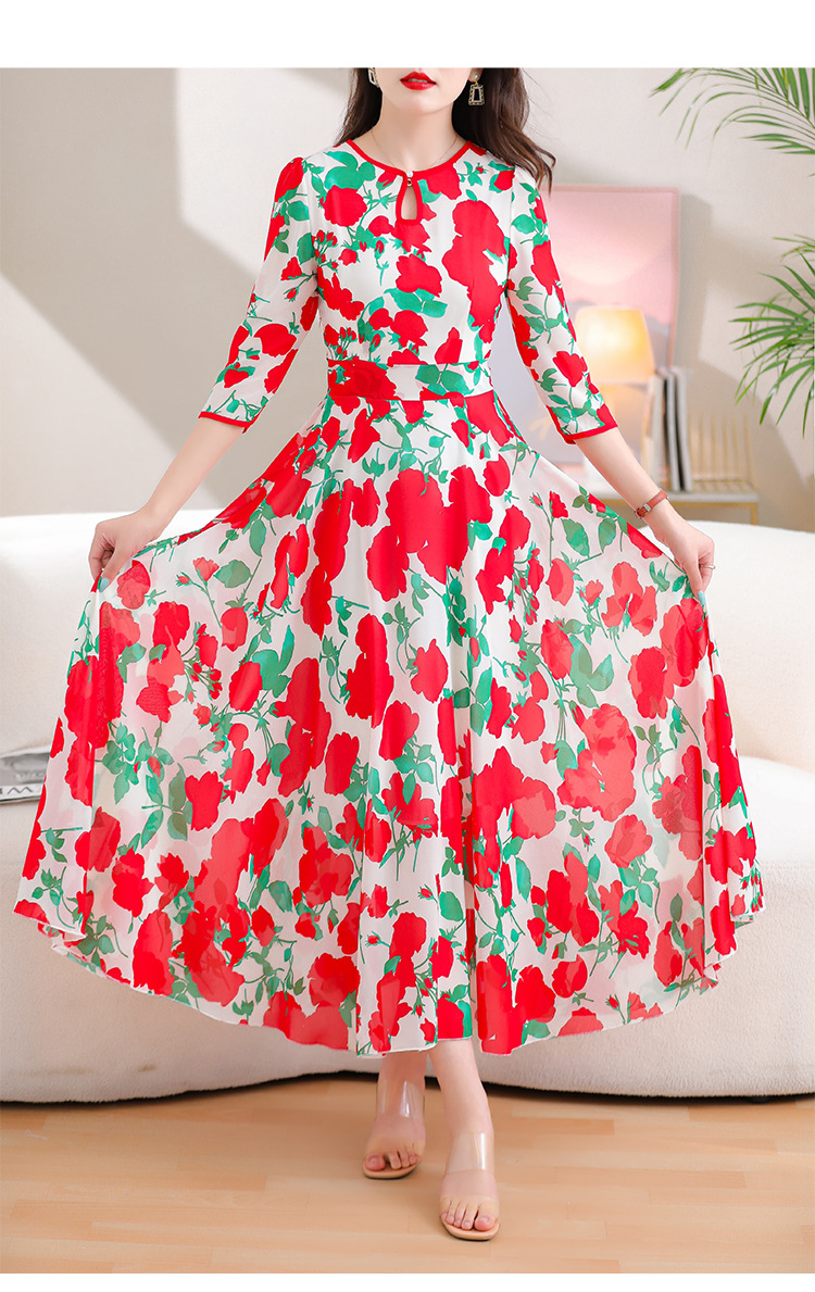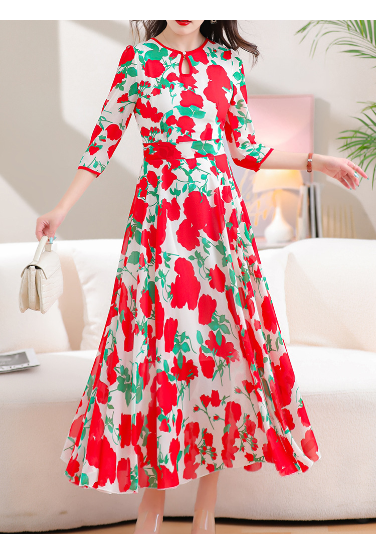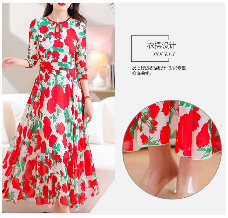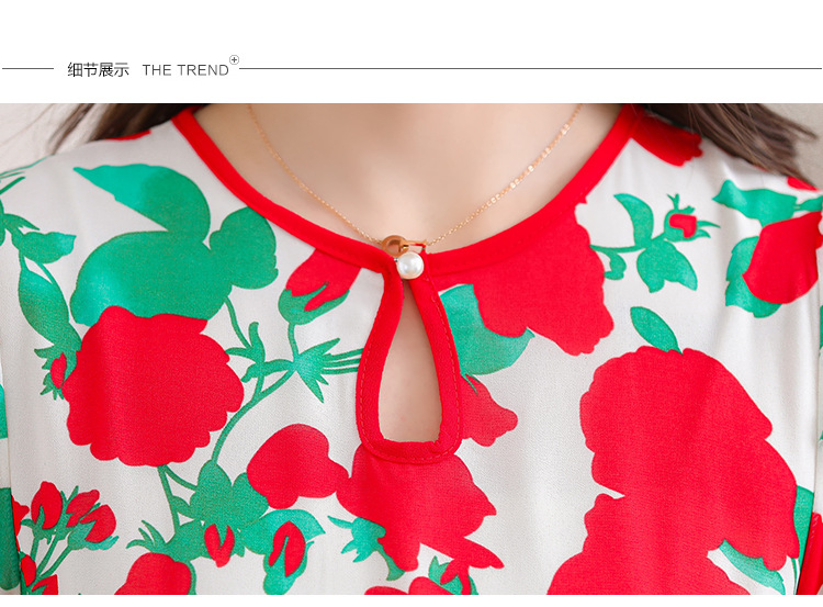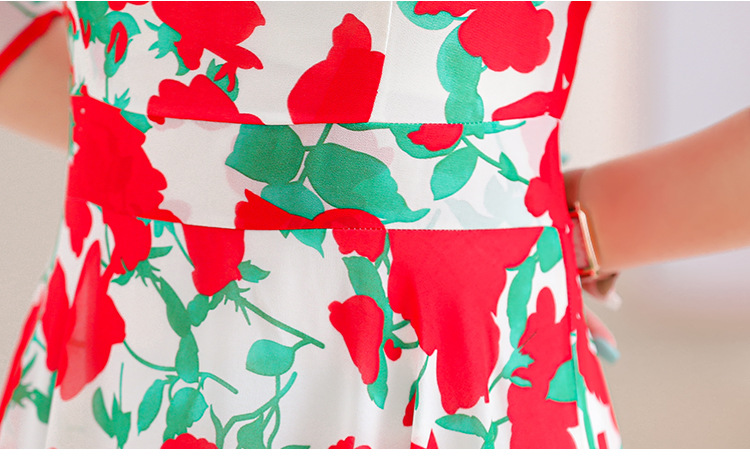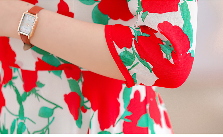 洋气修身,沙滩中袖时尚裙夏季雪纺碎花连衣裙YA318