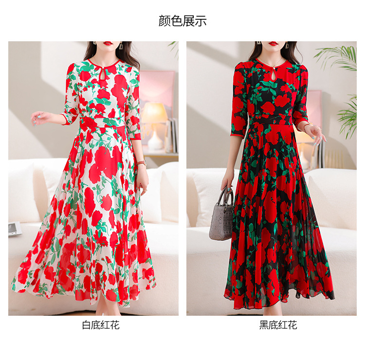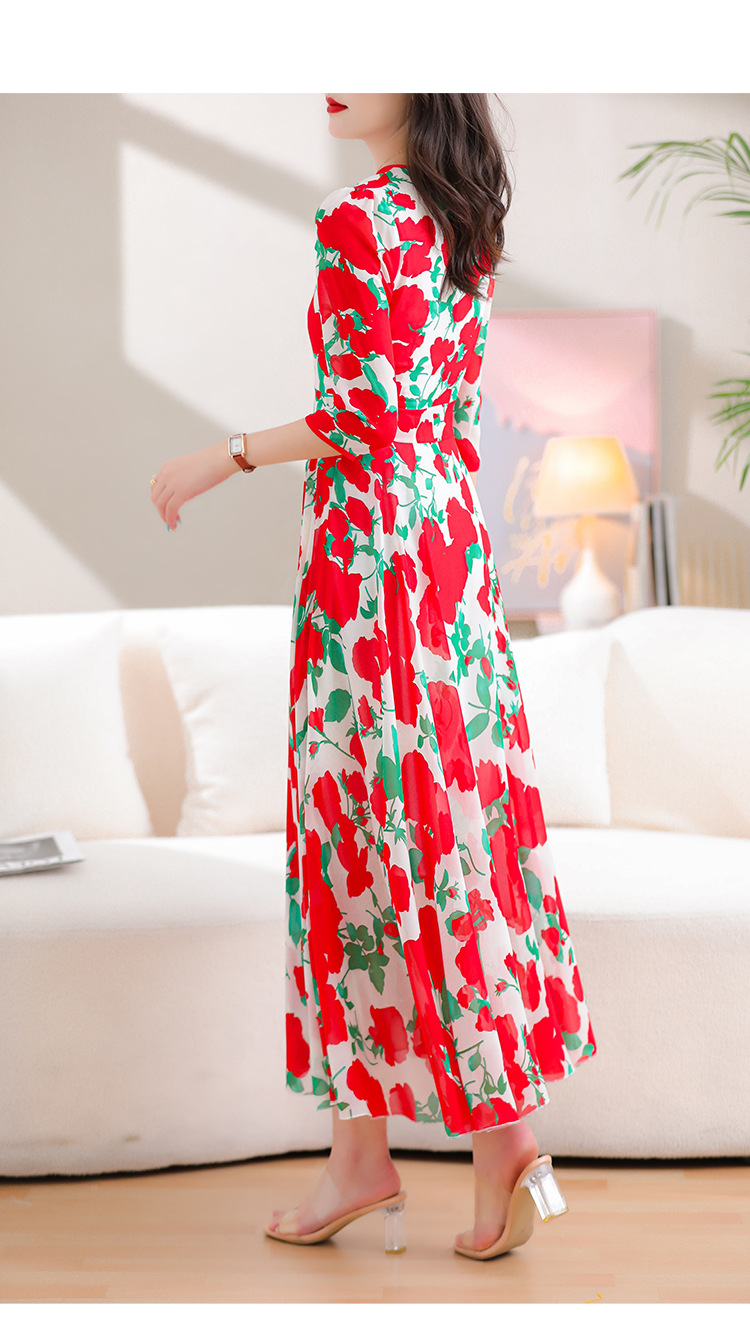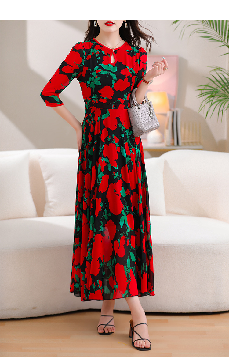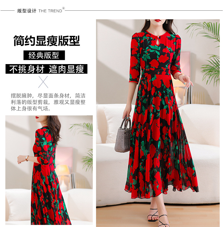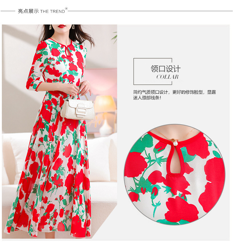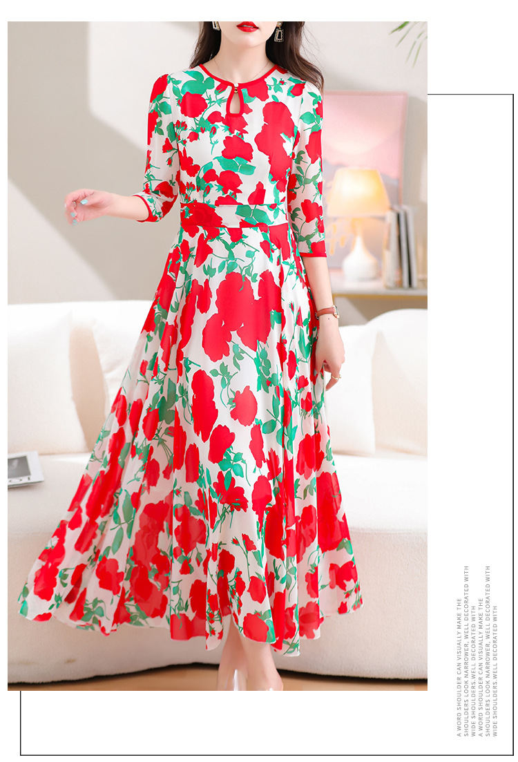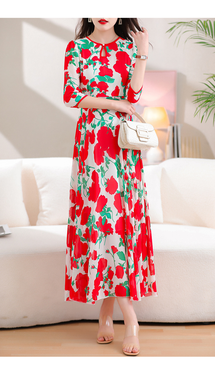 洋气修身,沙滩中袖时尚裙夏季雪纺碎花连衣裙YA318
