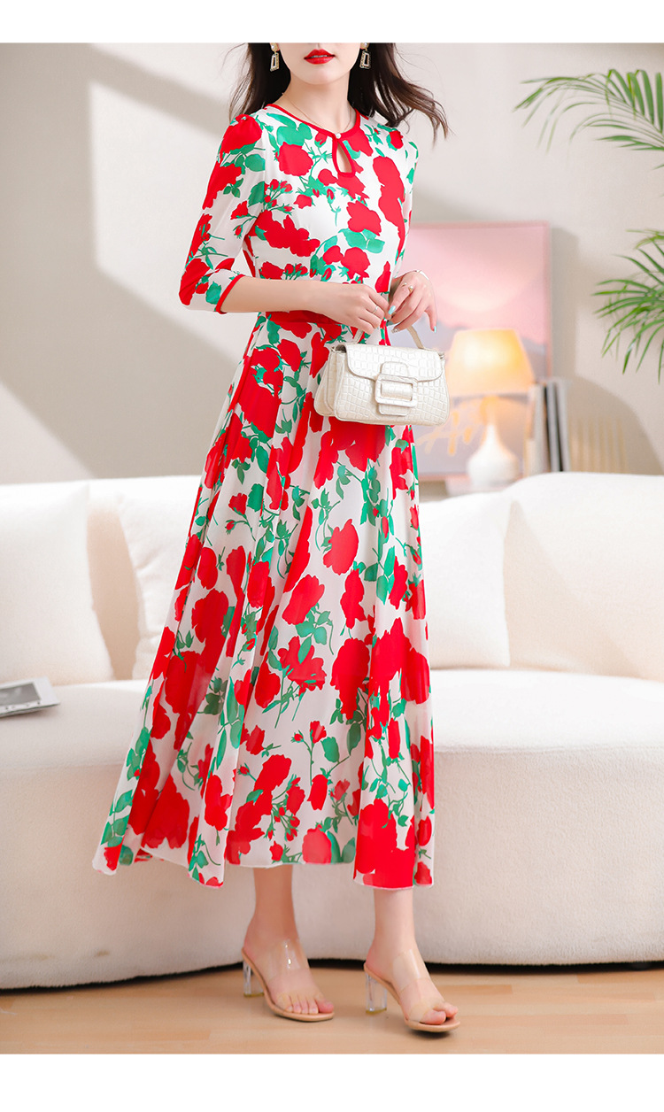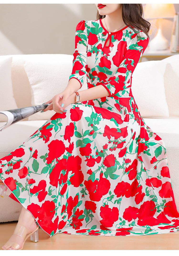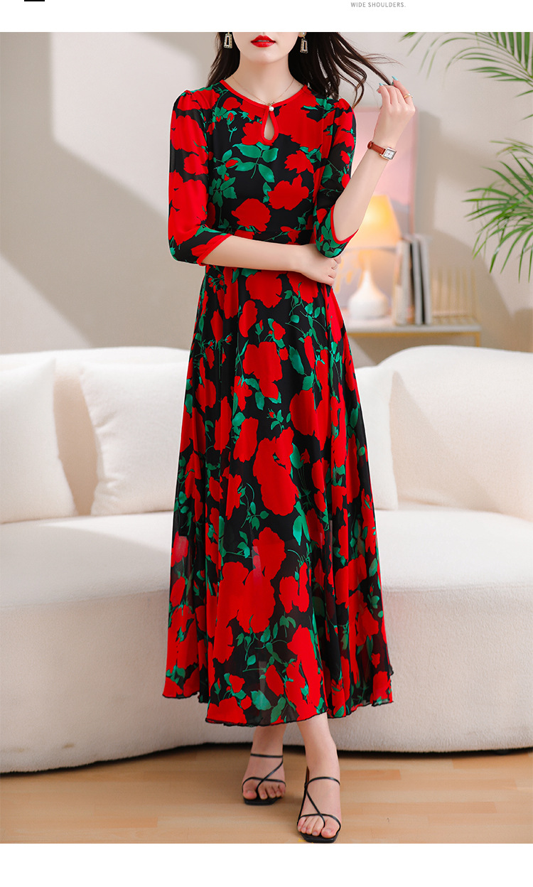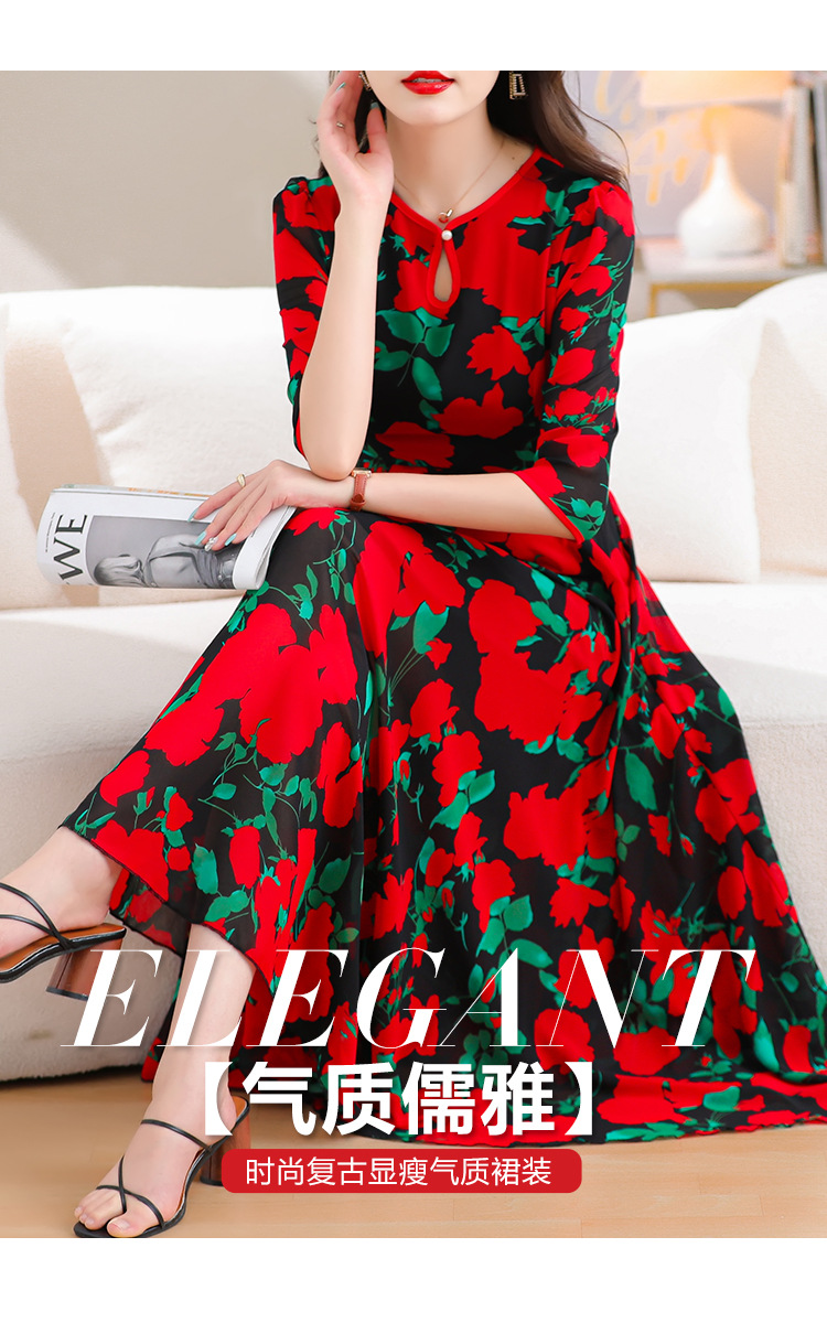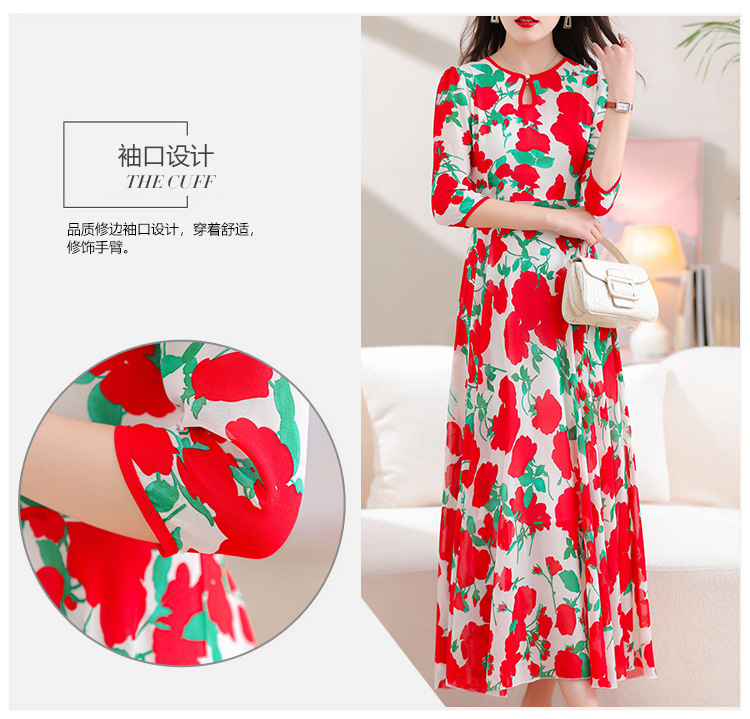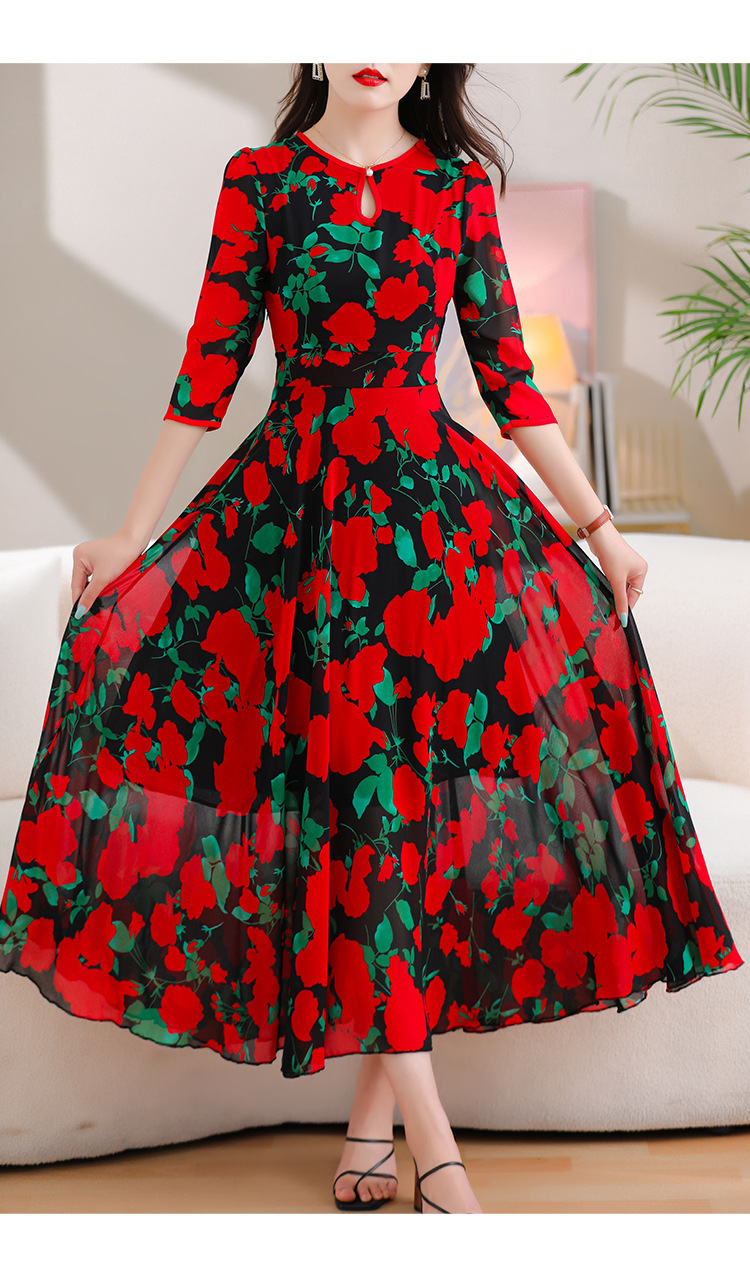 洋气修身,沙滩中袖时尚裙夏季雪纺碎花连衣裙YA318