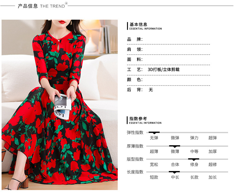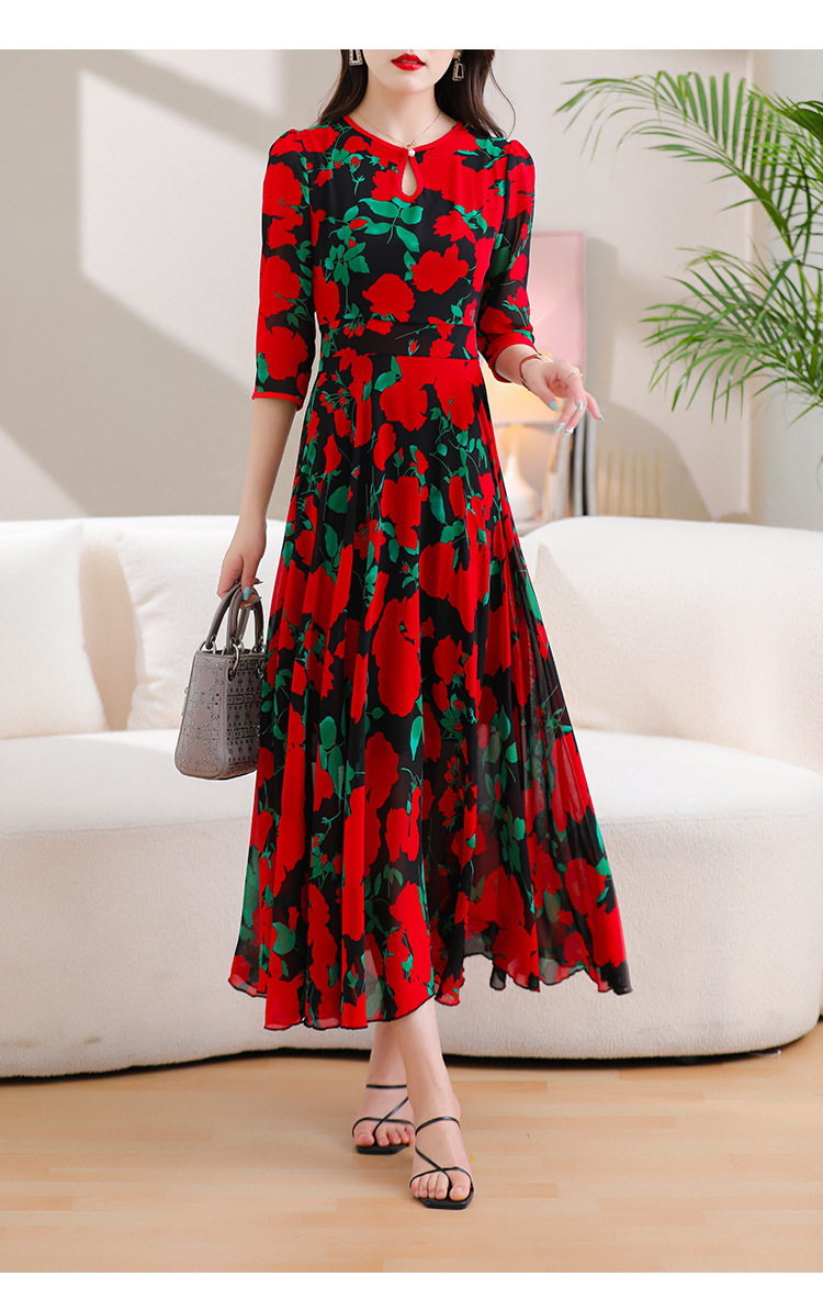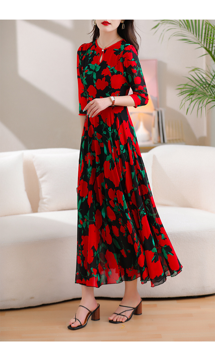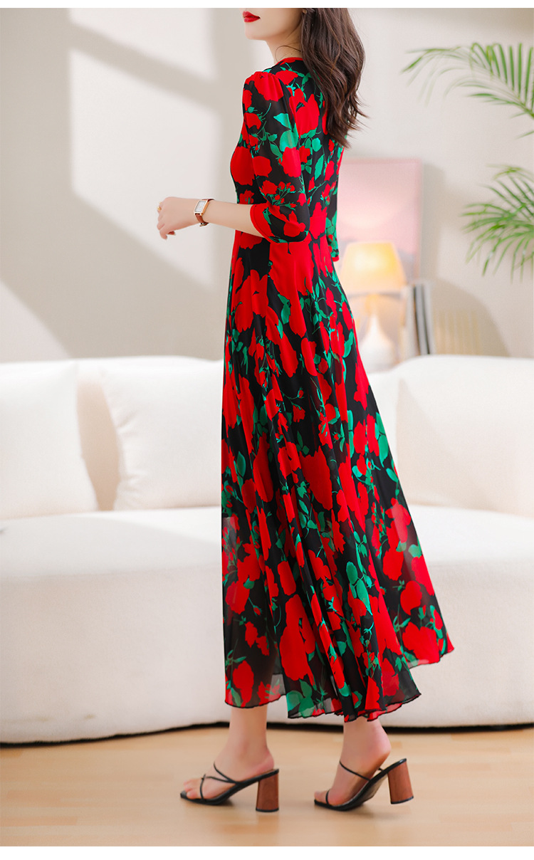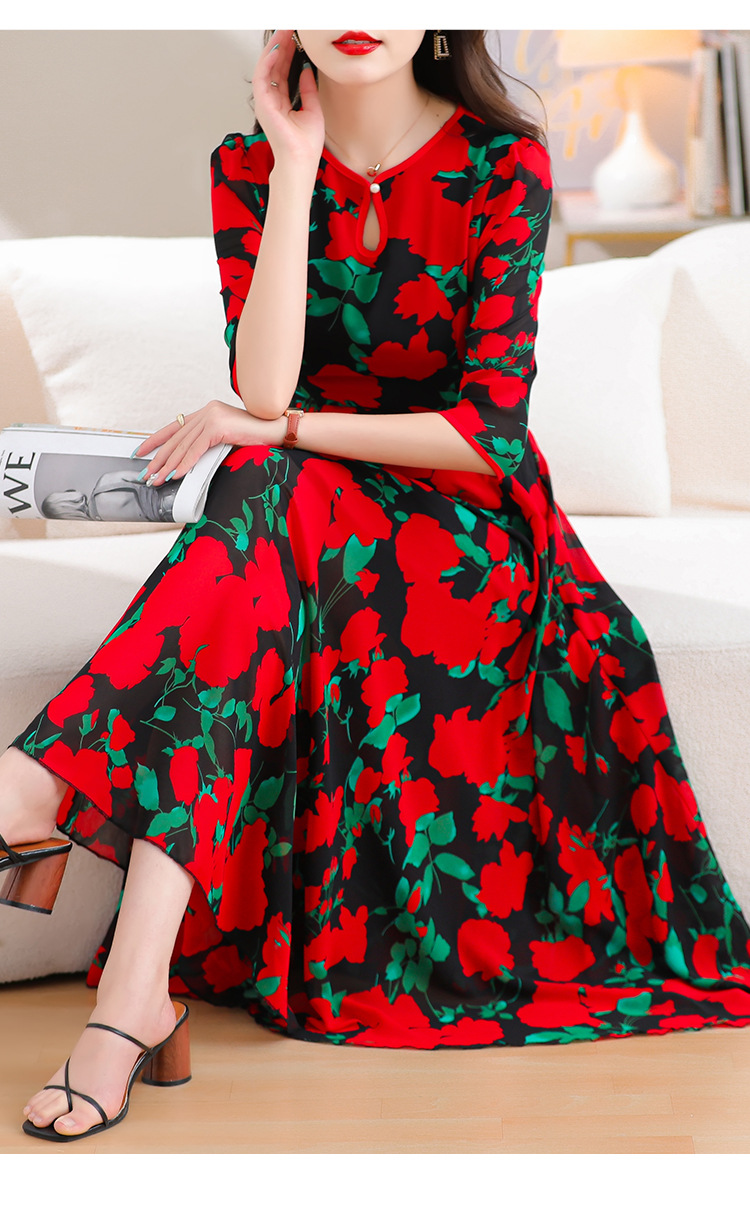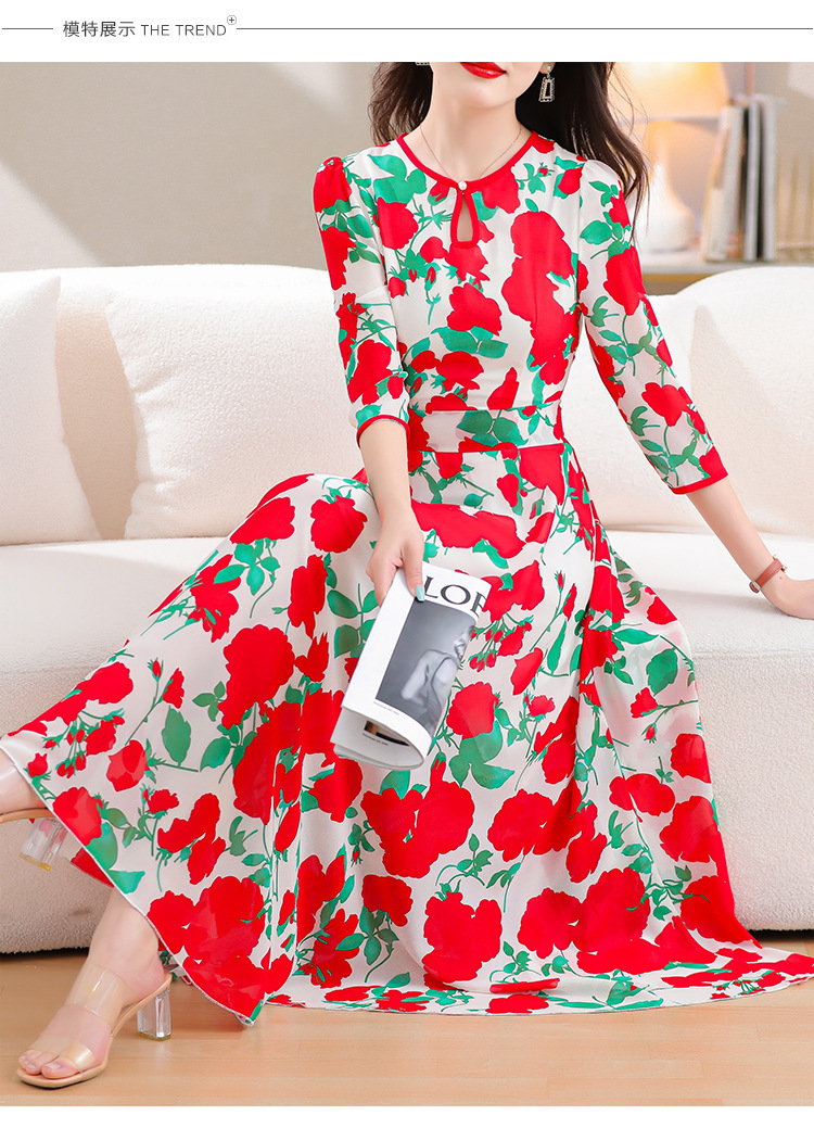 洋气修身,沙滩中袖时尚裙夏季雪纺碎花连衣裙YA318