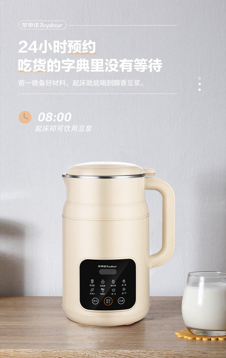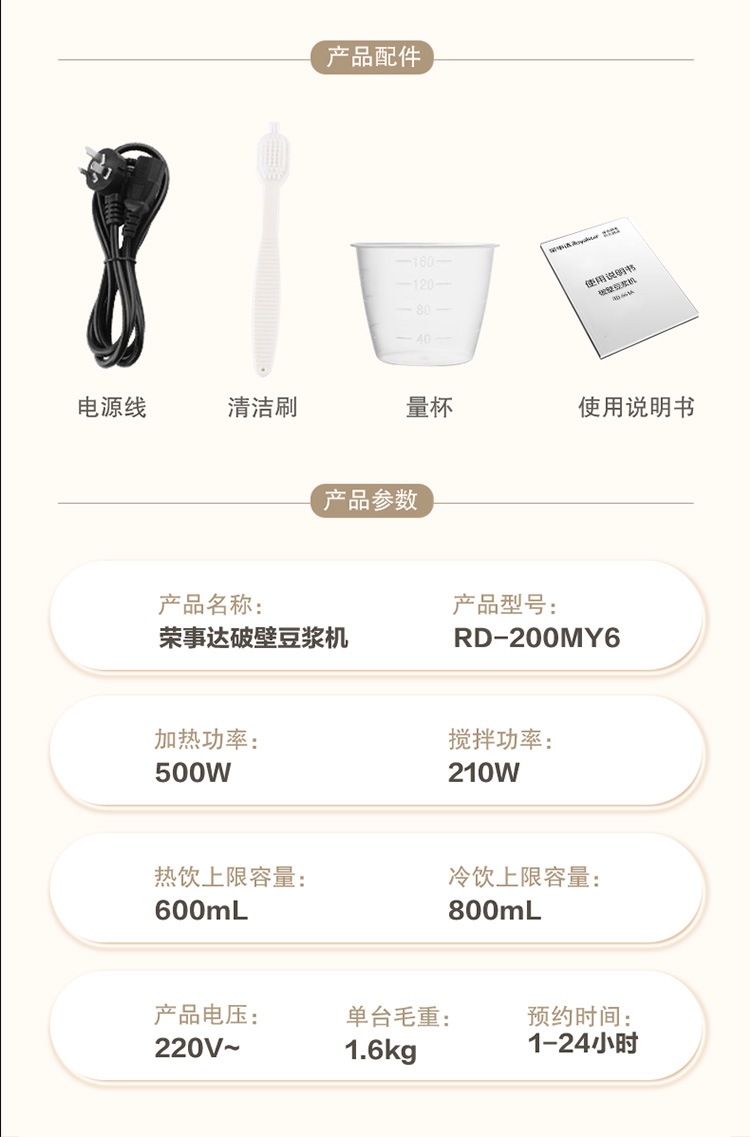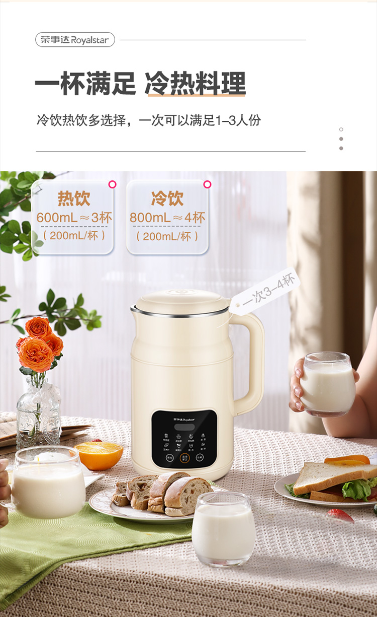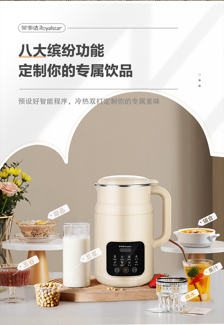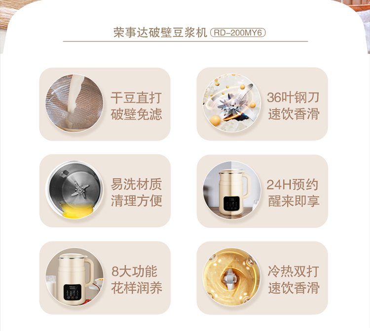 心选丨【干豆直打 冷热破壁】荣事达豆浆破壁料理机冷热双打24小时预约36叶刀果汁机RD-200MY6