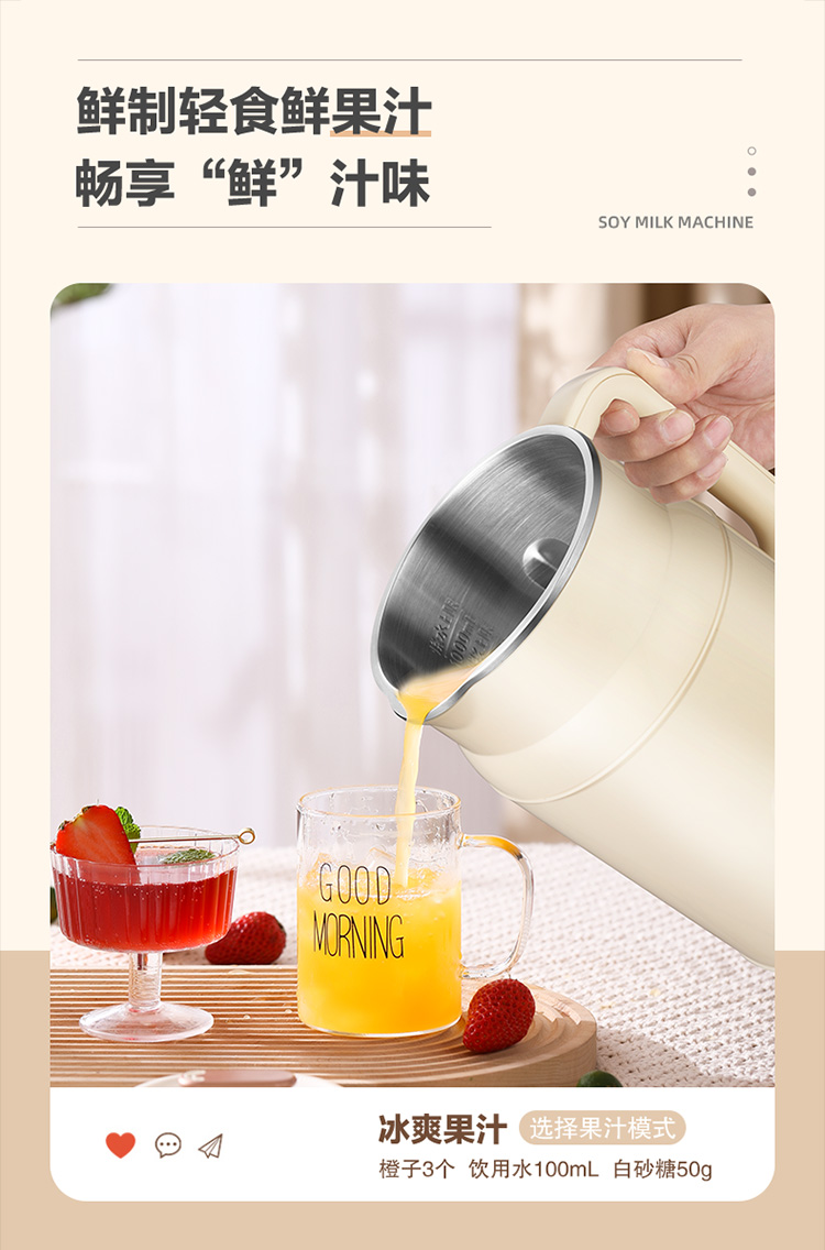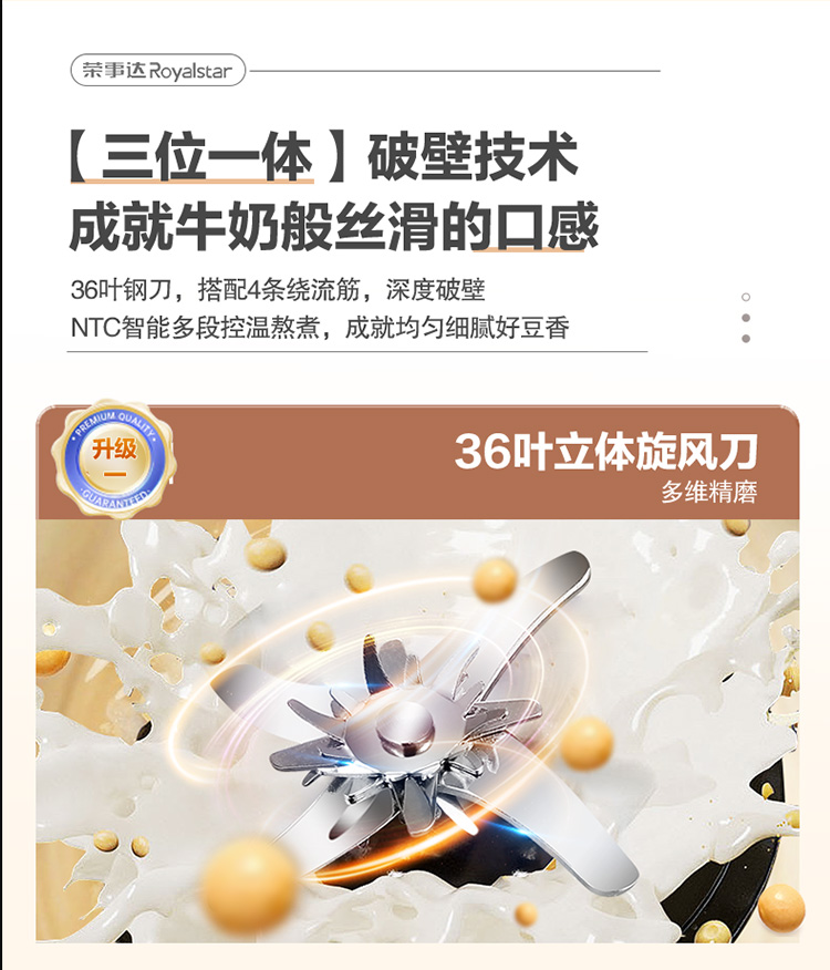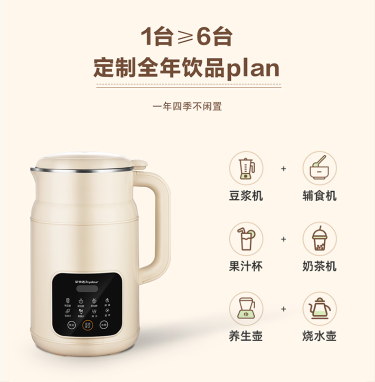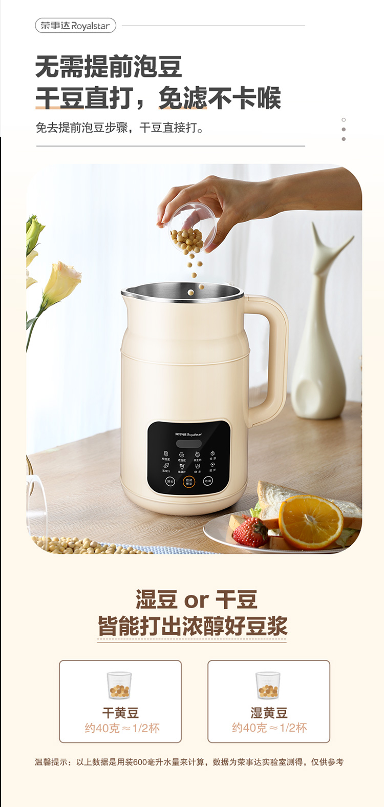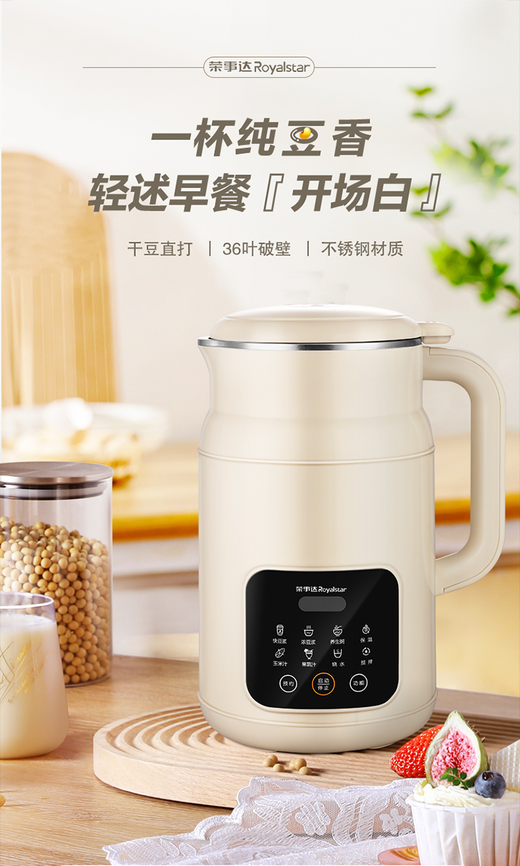 心选丨【干豆直打 冷热破壁】荣事达豆浆破壁料理机冷热双打24小时预约36叶刀果汁机RD-200MY6