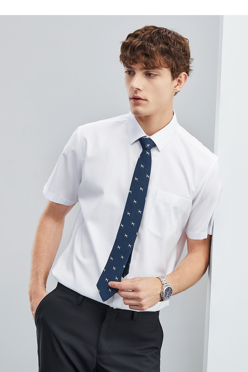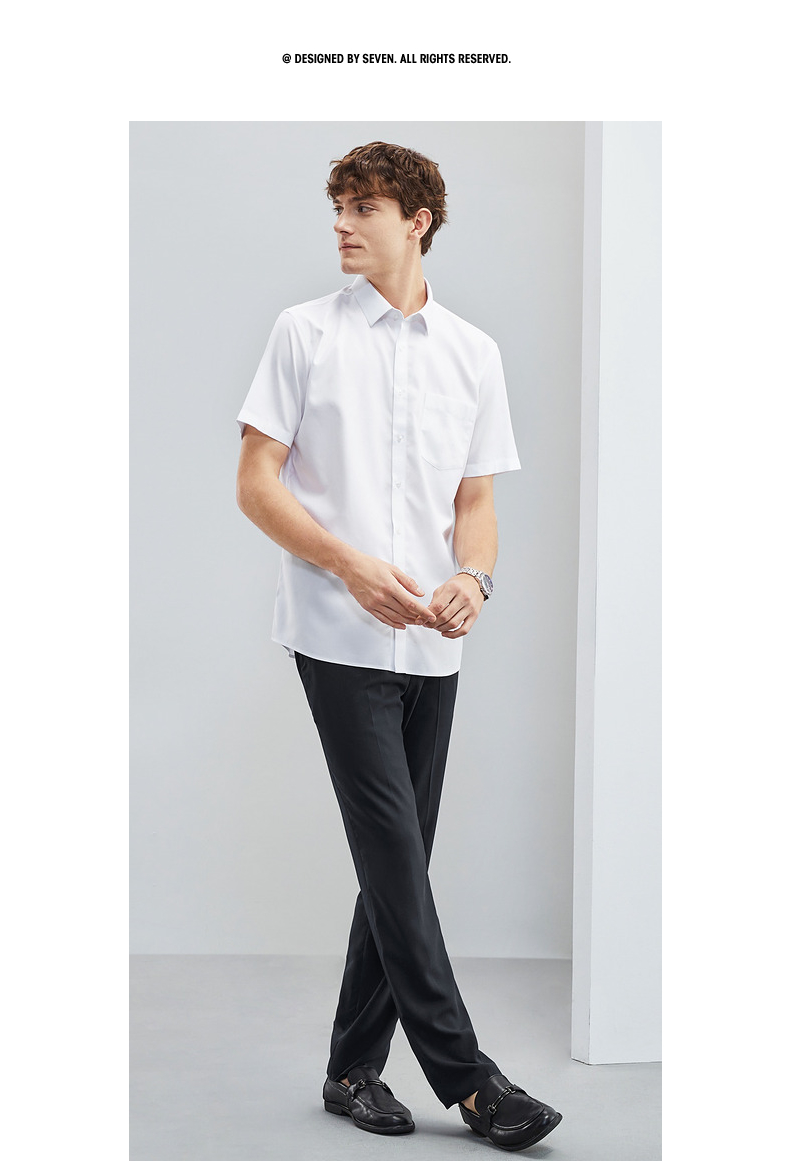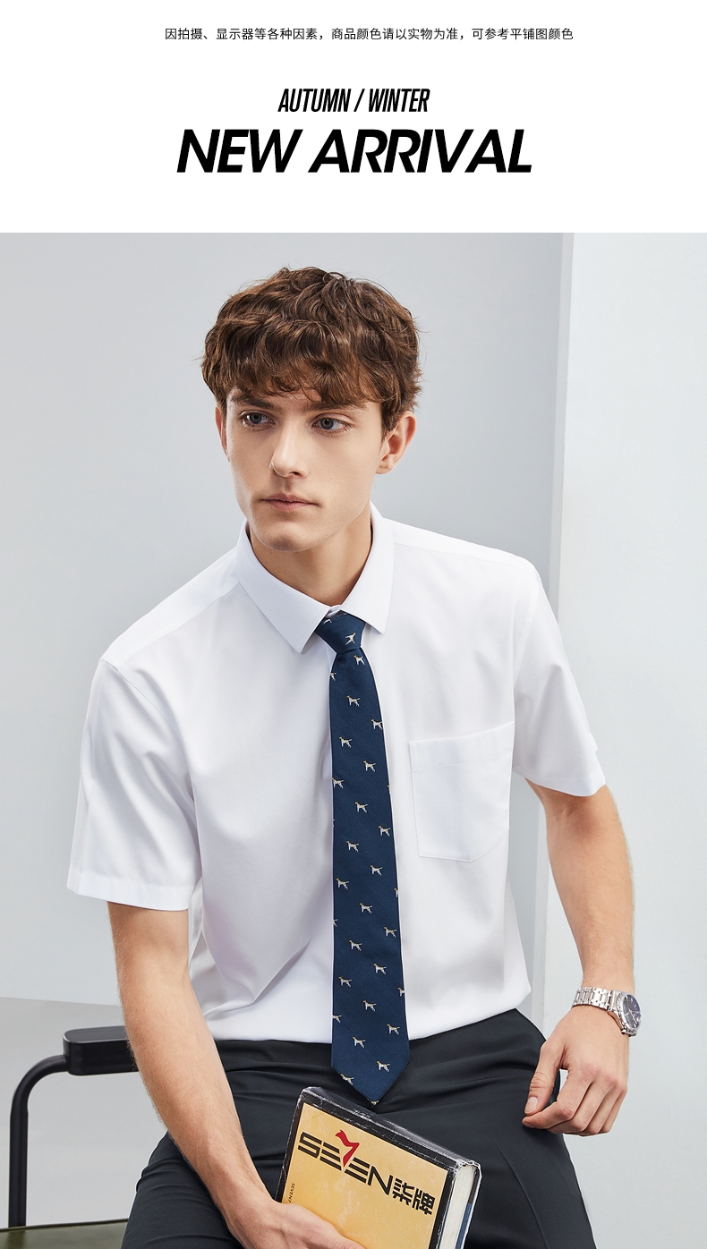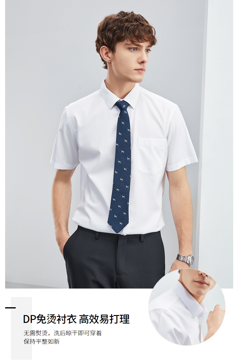 【DP免烫】柒牌衬衫短袖男夏季新款商务正装白色纯棉打底翻领衬衣124A70340