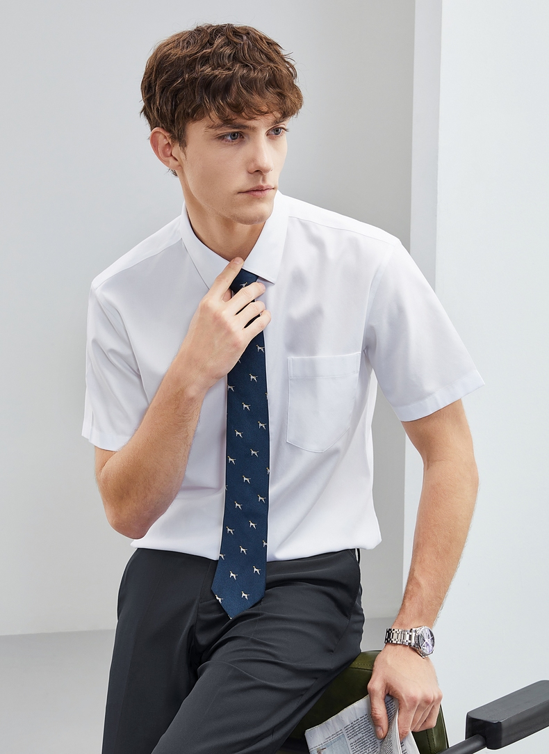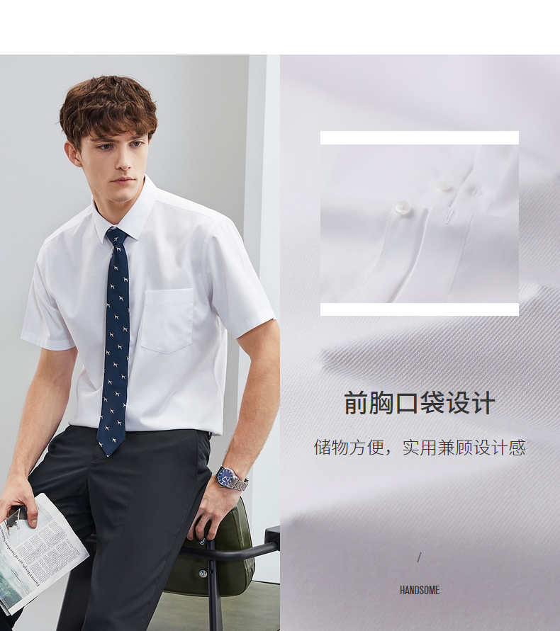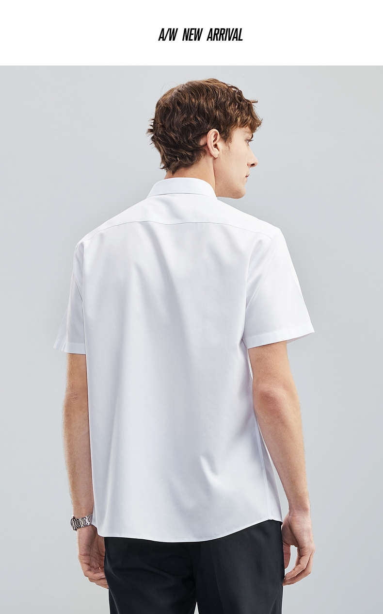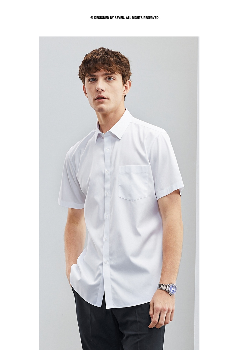【DP免烫】柒牌衬衫短袖男夏季新款商务正装白色纯棉打底翻领衬衣124A70340