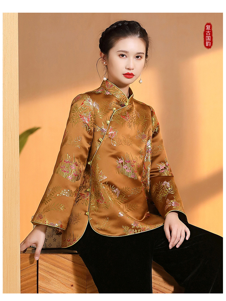 戏蝶提花改良上衣,国风宽松立领改良唐装AYK-220911