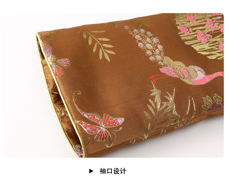 【丹凤朝阳】紫色斜开叉长款年轻款演出旗袍YD90