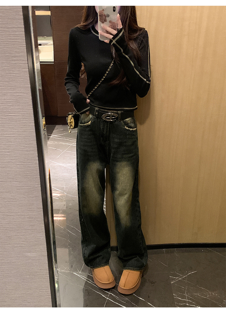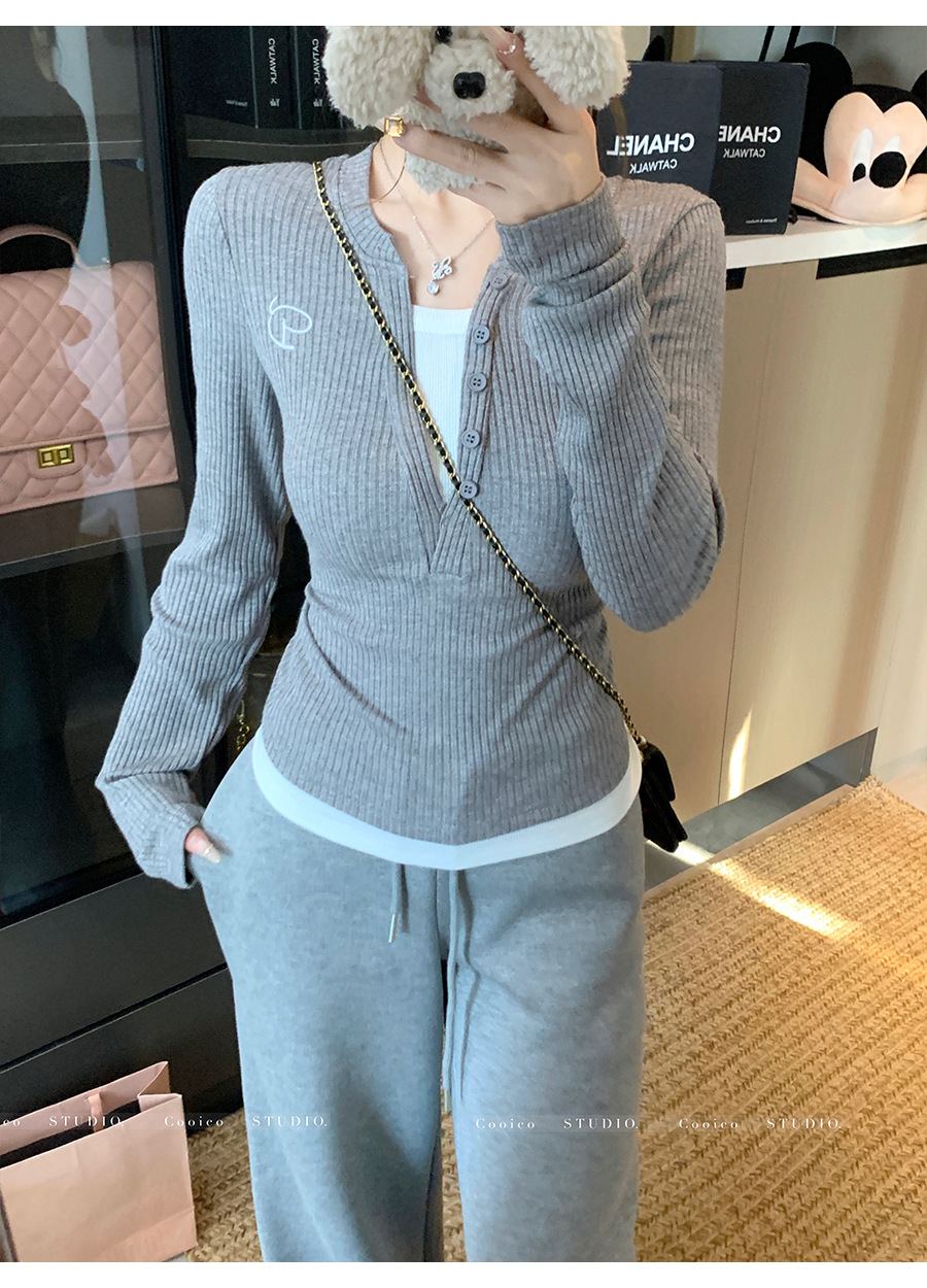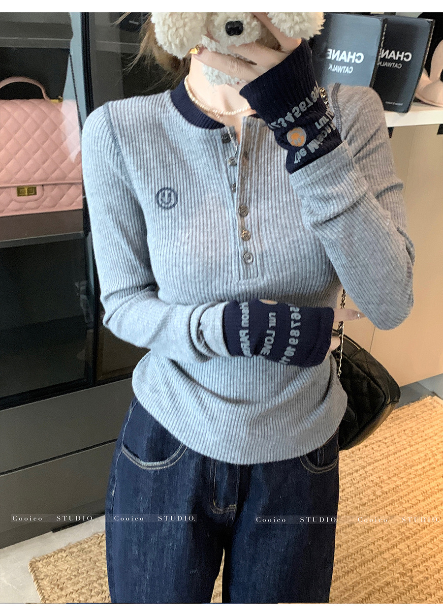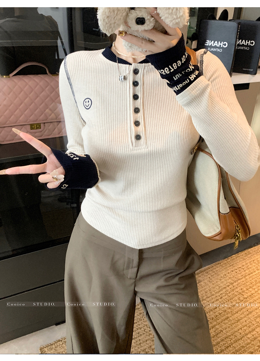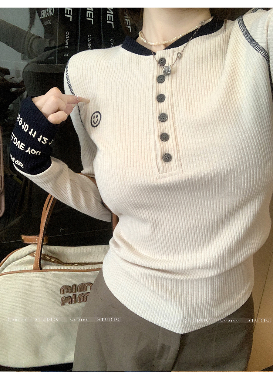 【99元拍2件】【甜辣风纯棉T恤】撞色圆领纯棉T恤 秋季假两件设计感修身内搭单穿上衣