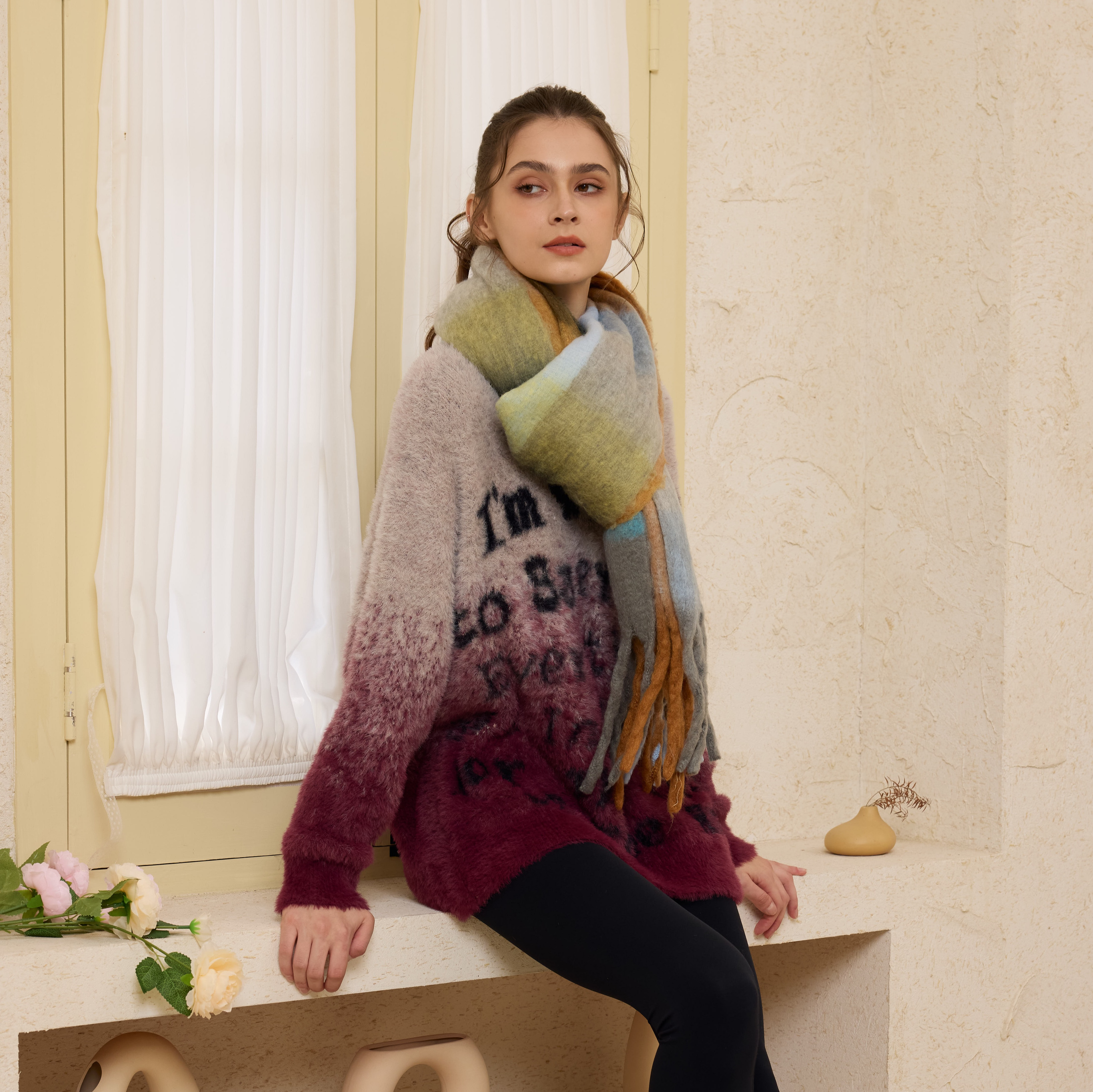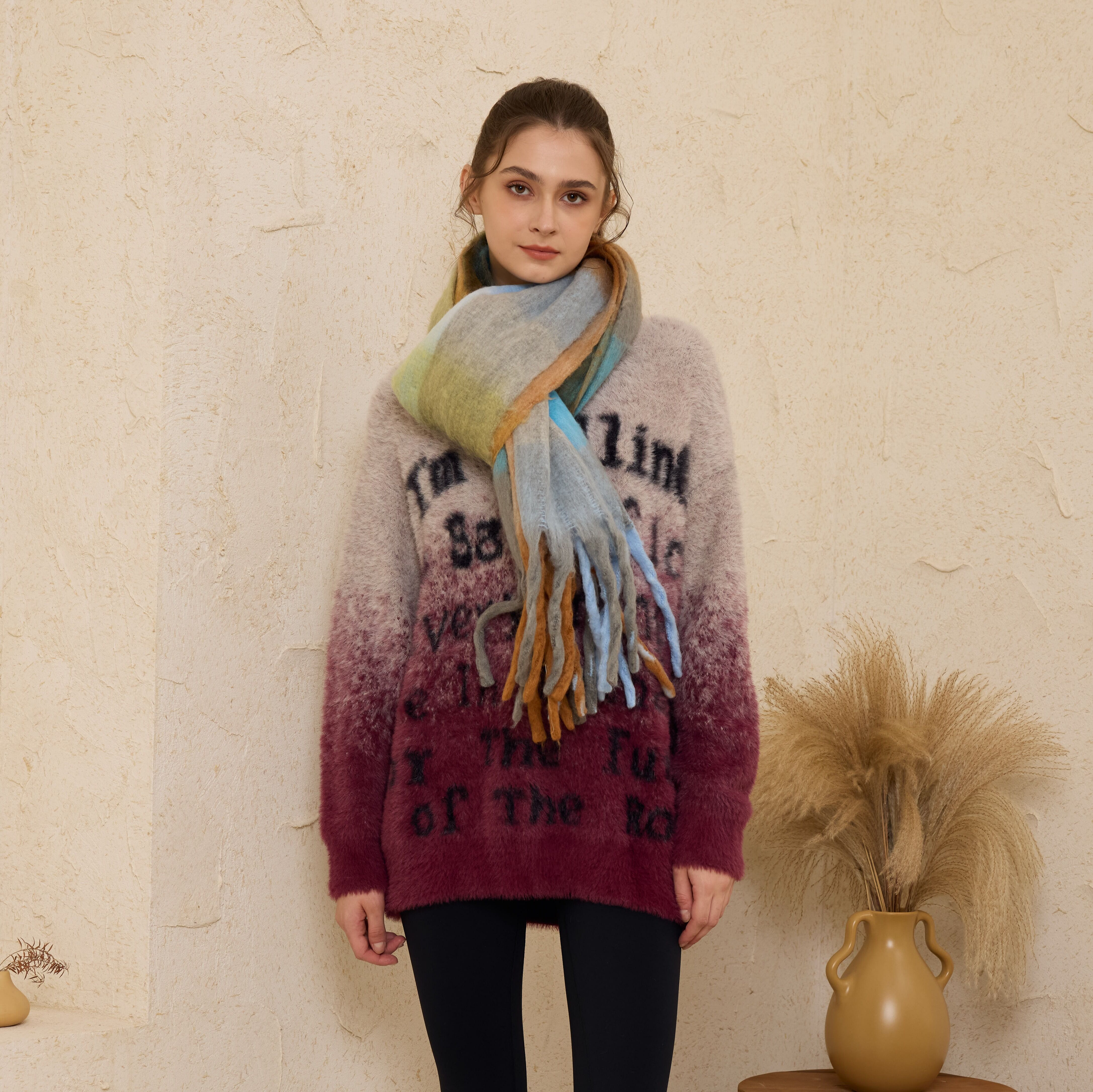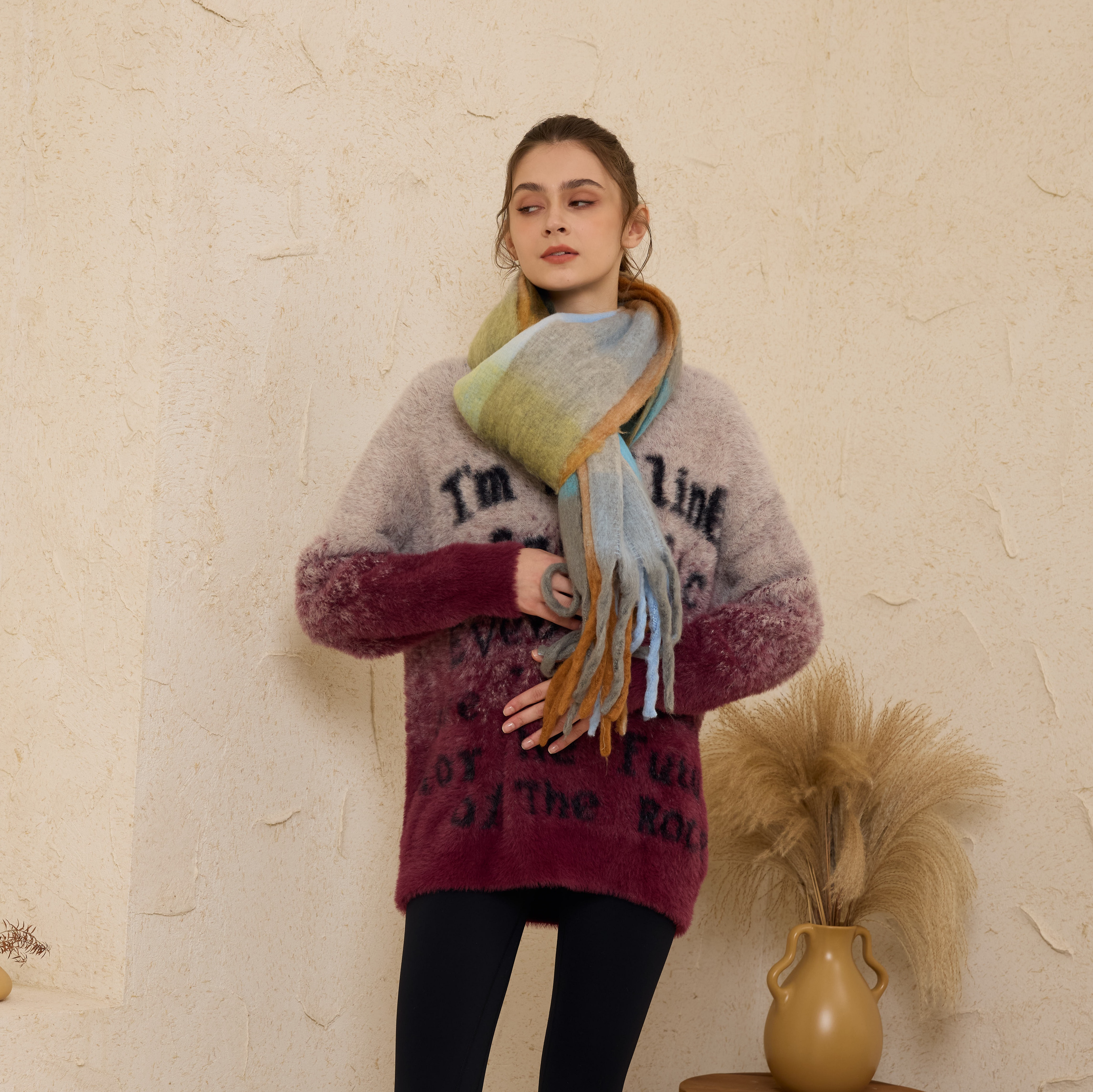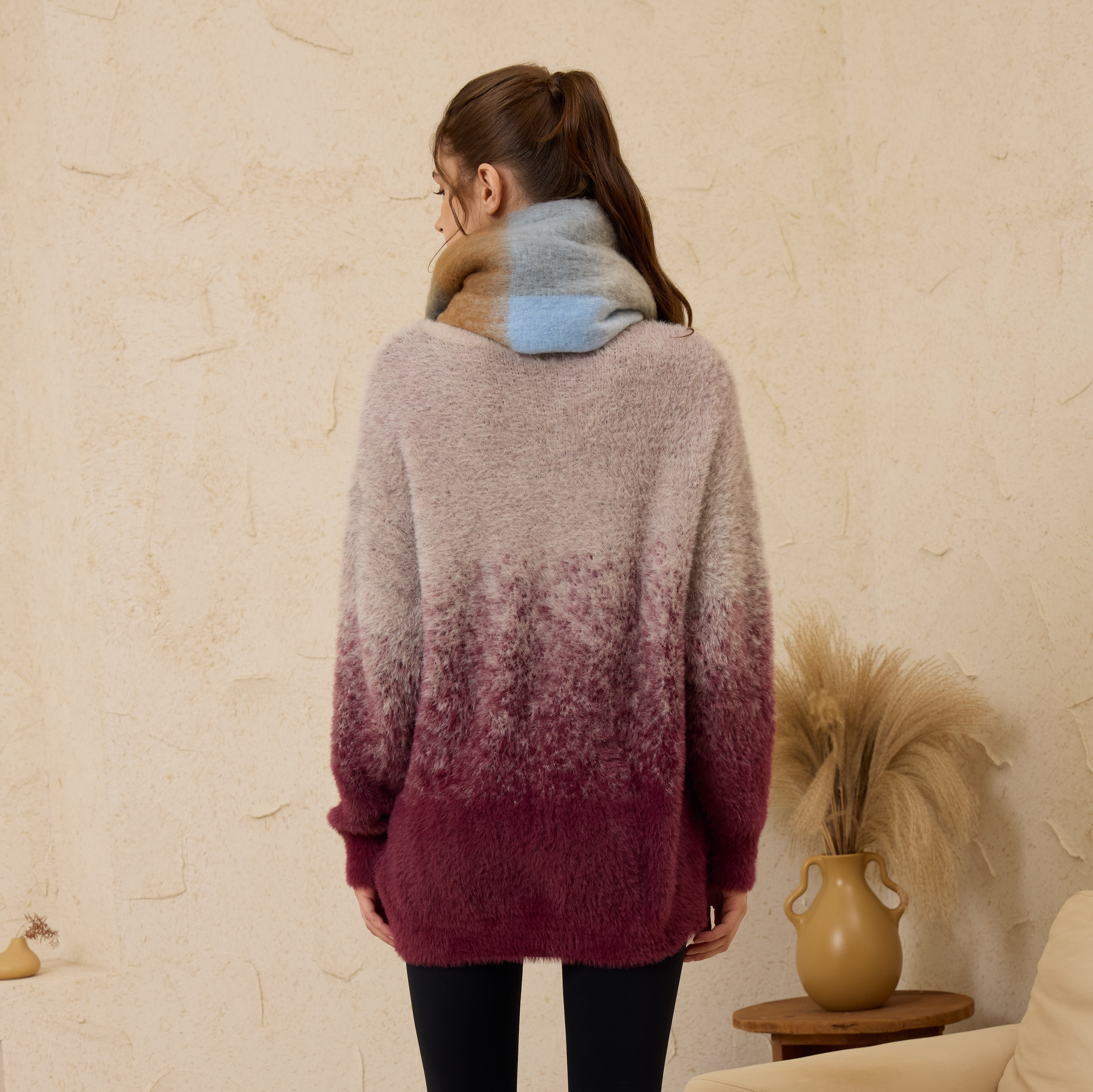2024秋冬新款复古撞色毛衣——紫欣