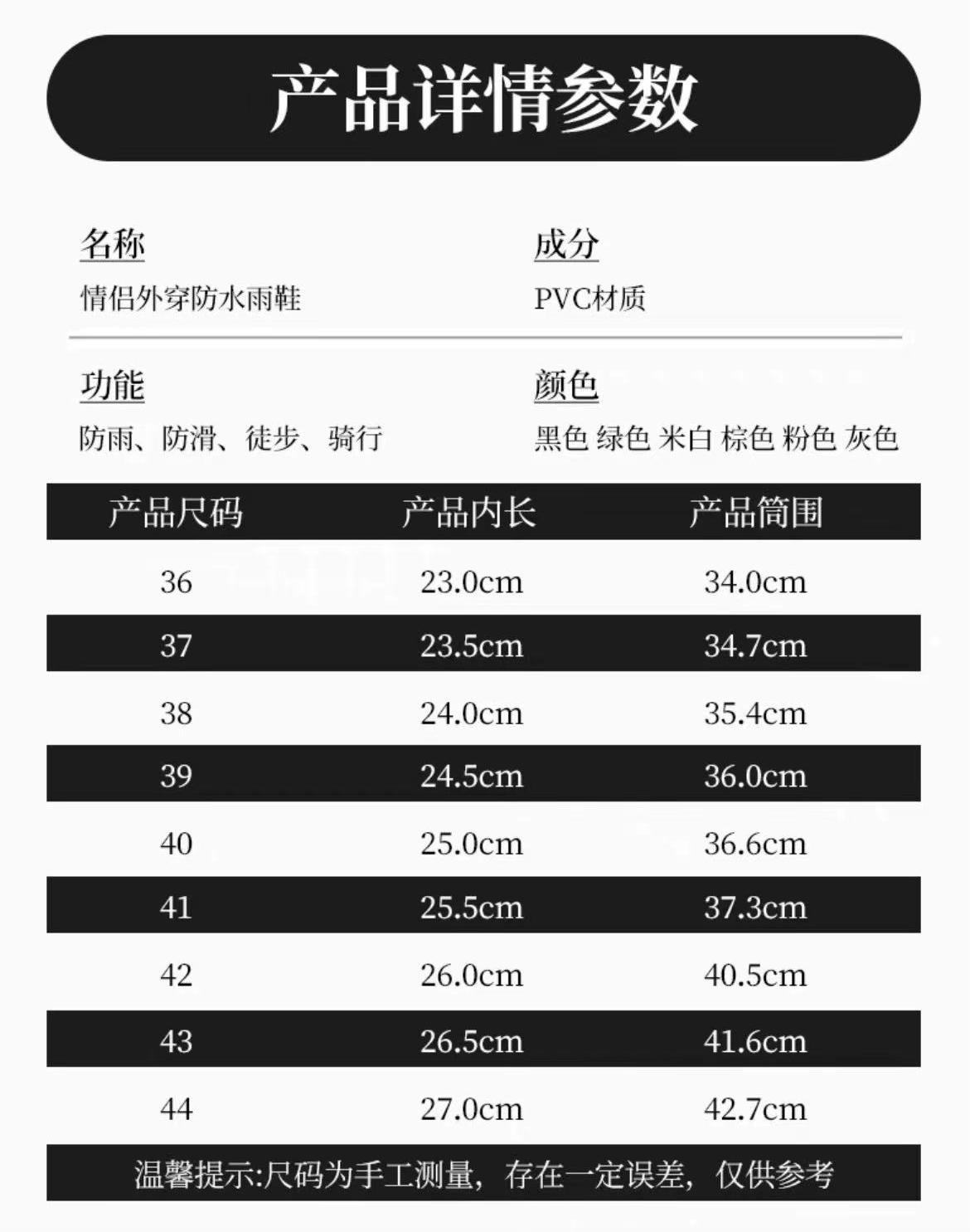 【索尔薇米】情侣时尚雨靴 防滑雨靴 雨季必备