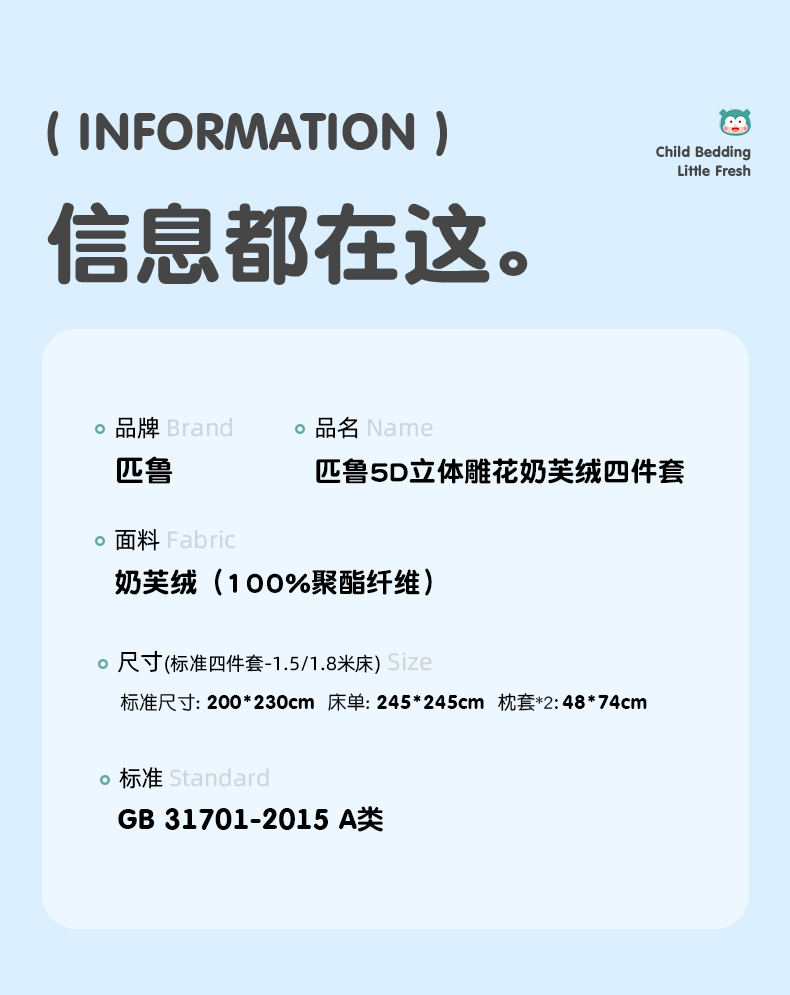 匹鲁5D立体雕花奶芙绒四件套yb0930004