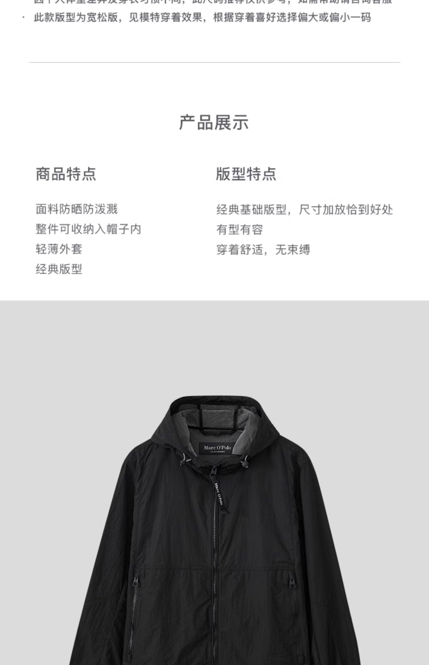 Marc O'Polo/MOP 秋季新款轻薄宽松户外百搭连帽防晒服男外套