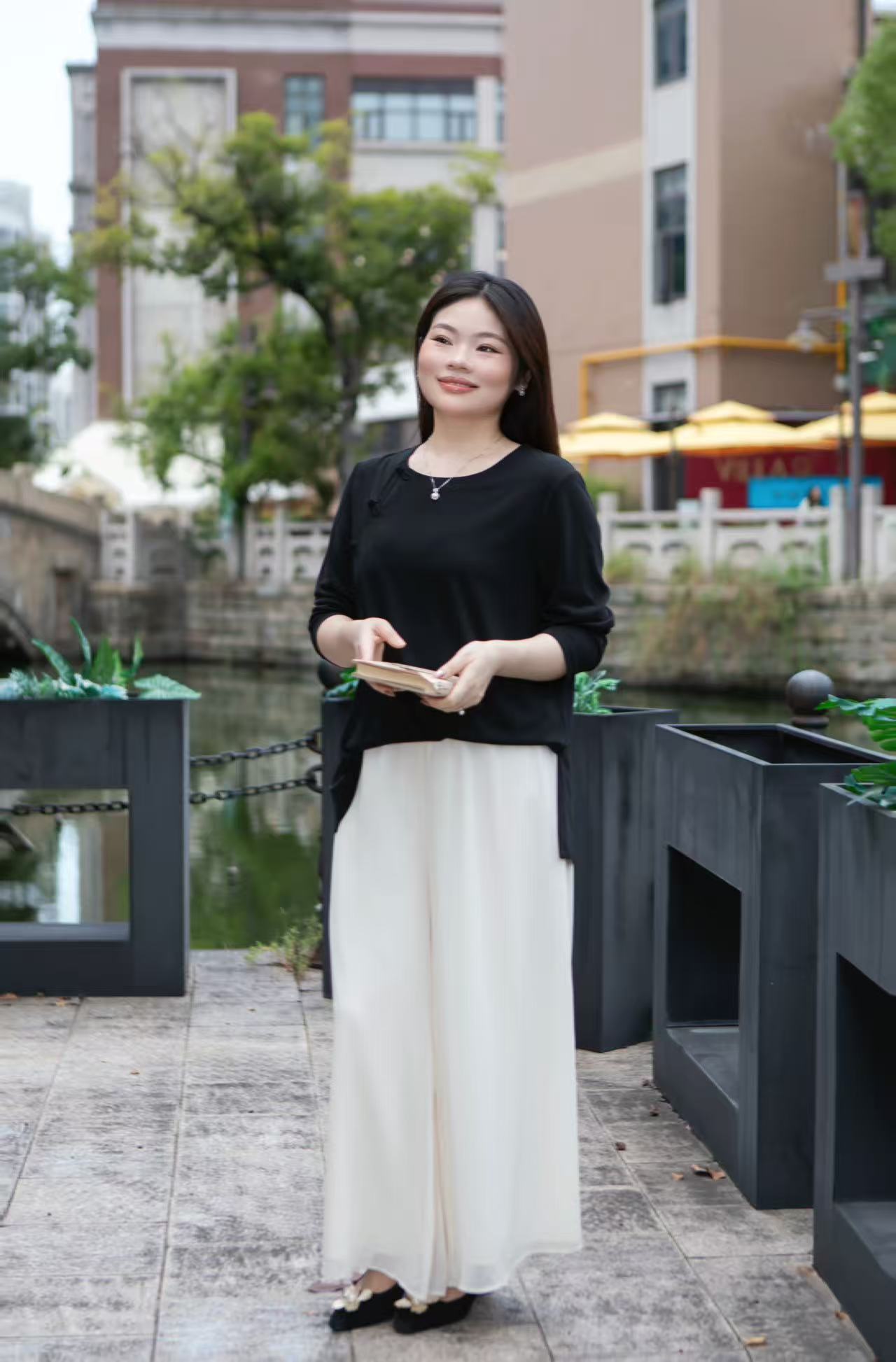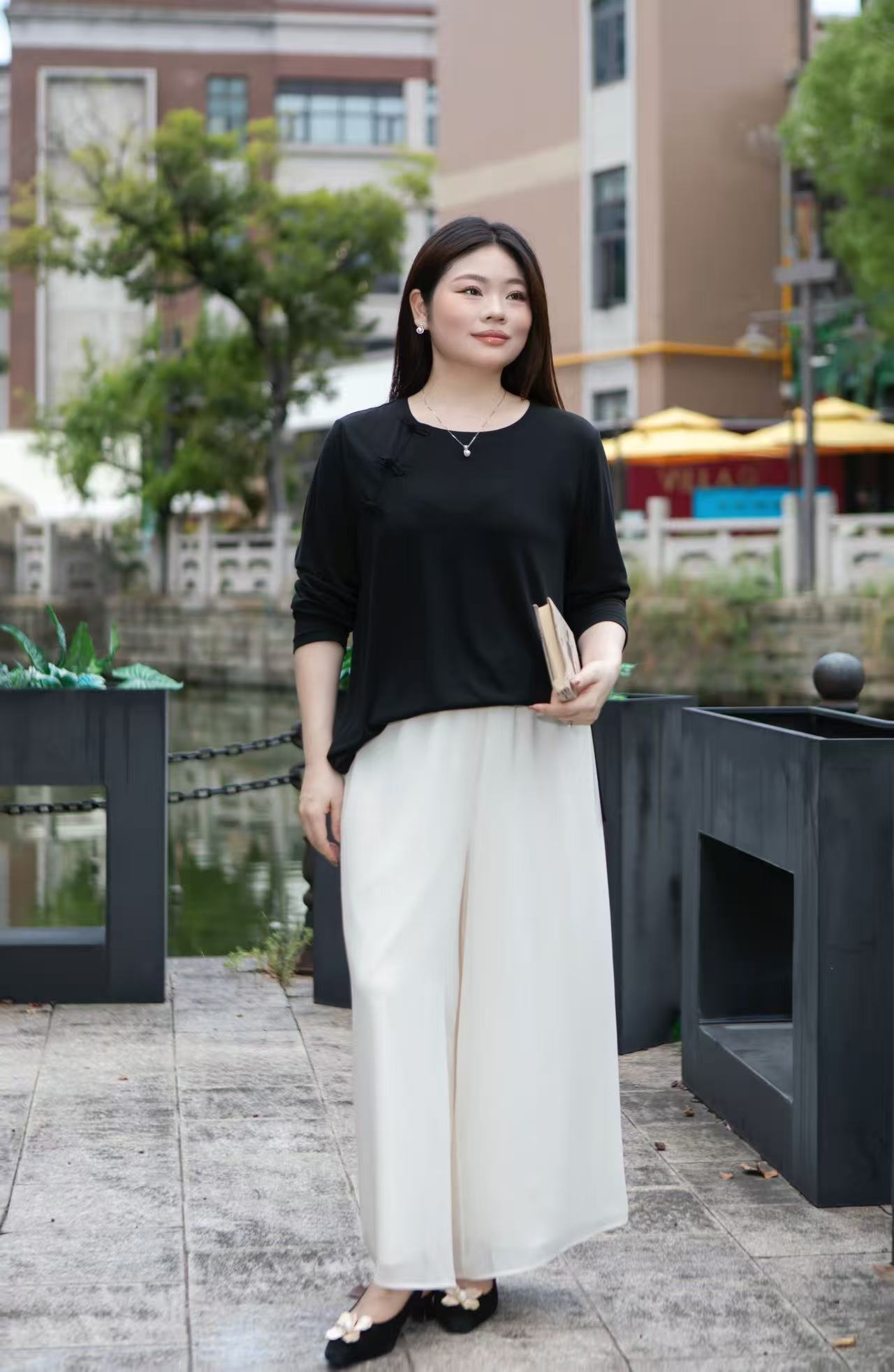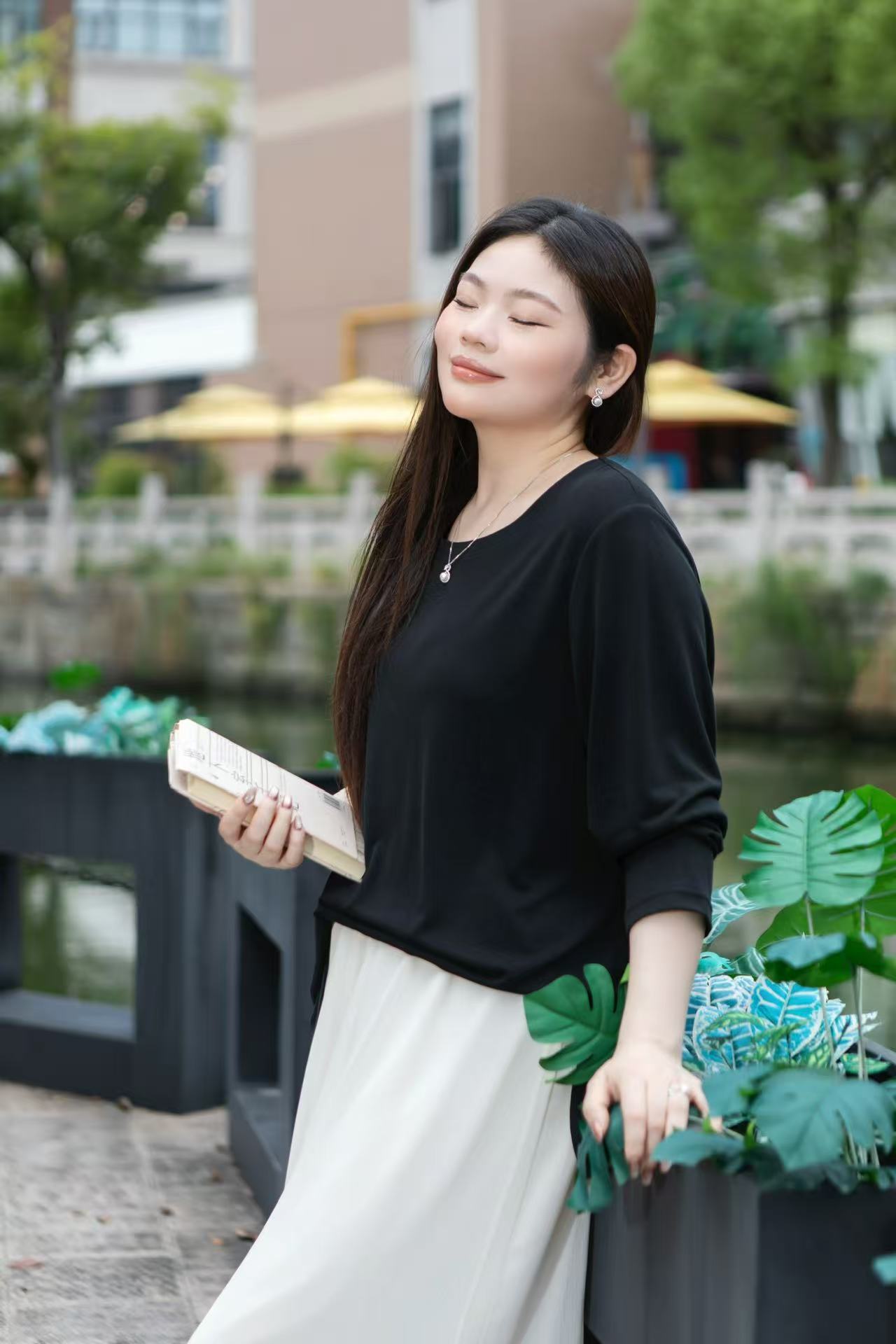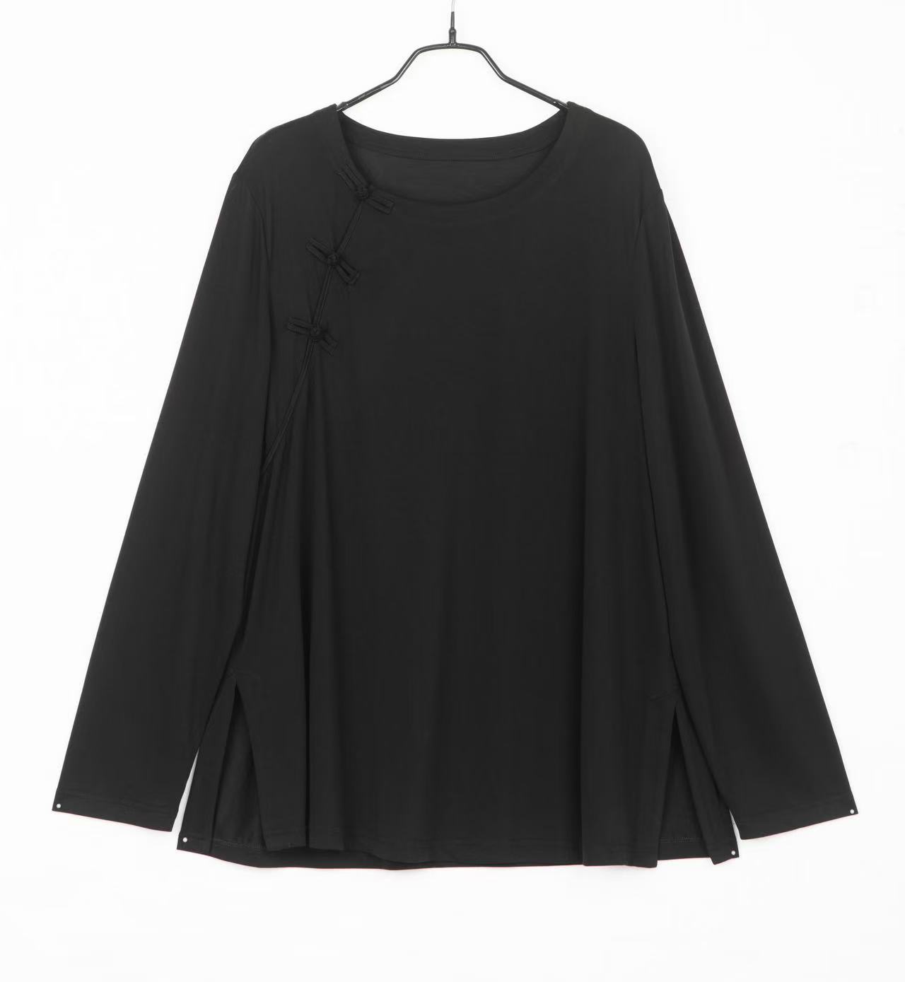 人手2件必入款🔥🔥【黑白双色 袢扣套头打底衫】结合大家最中意的元素!左右两侧开衩,防铜氨丝面料,莫代尔手感,舒适软糯亲肤,穿不腻的打底衫,非常推荐!