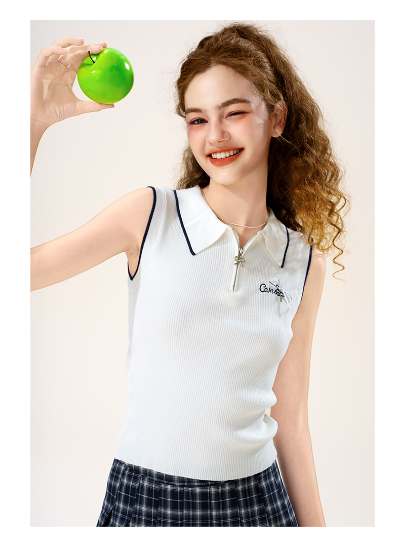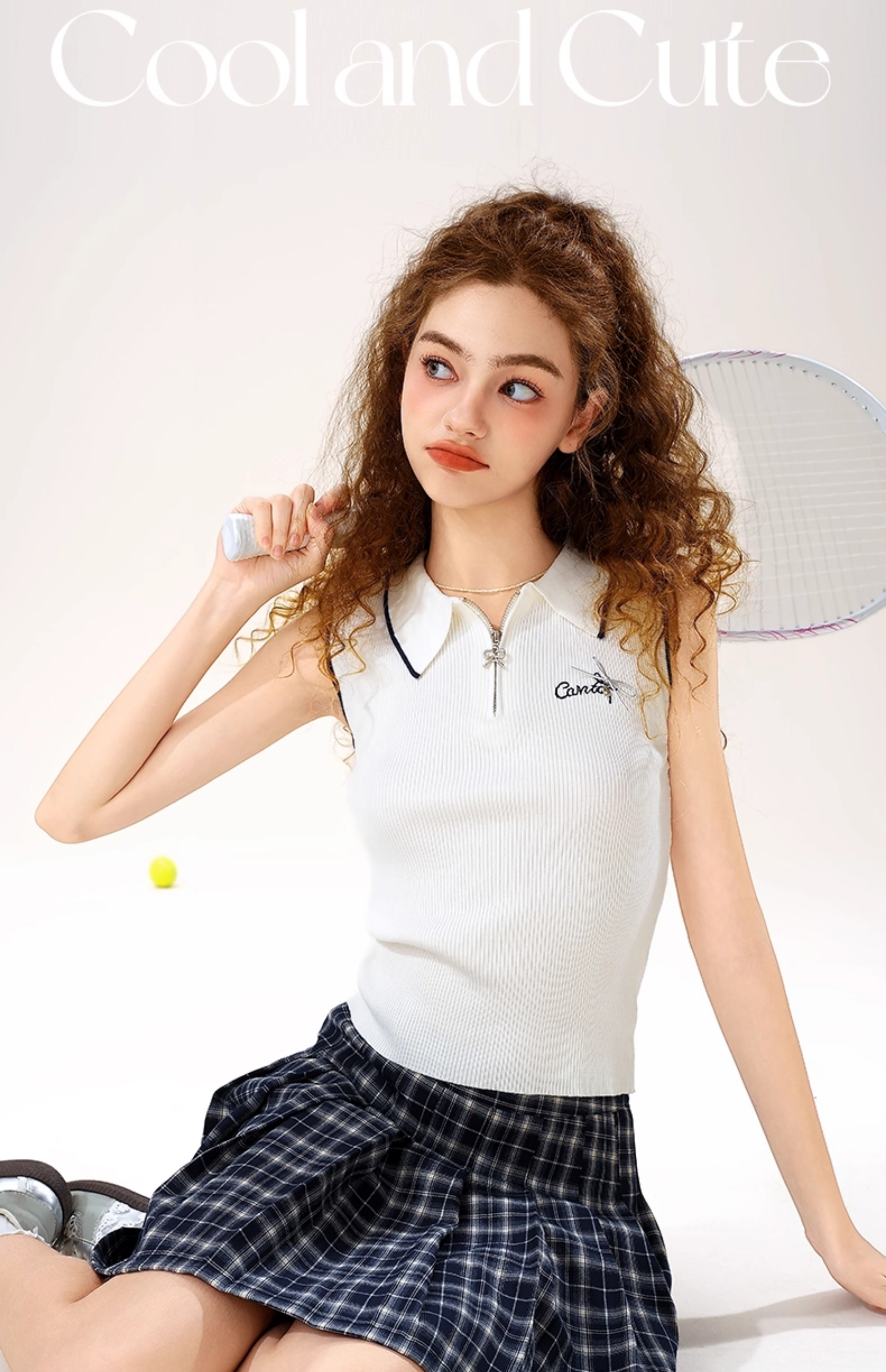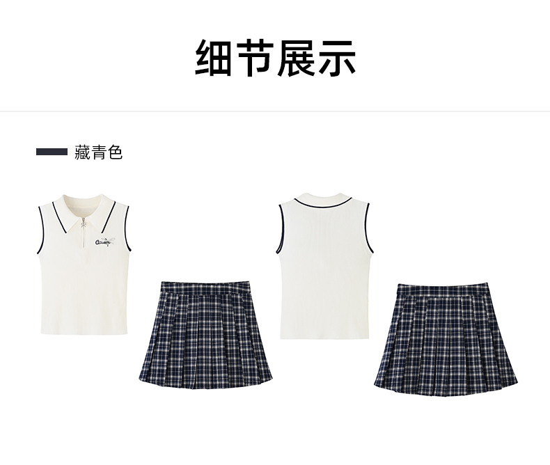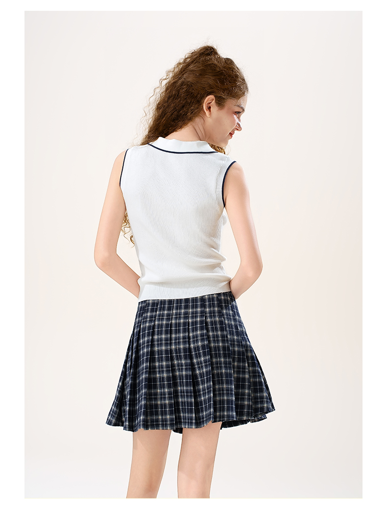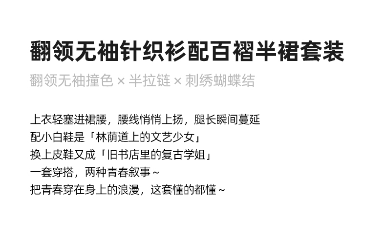 mc2女装翻领无袖针织衫配百褶半裙夏季新款学院风小个子甜美可爱