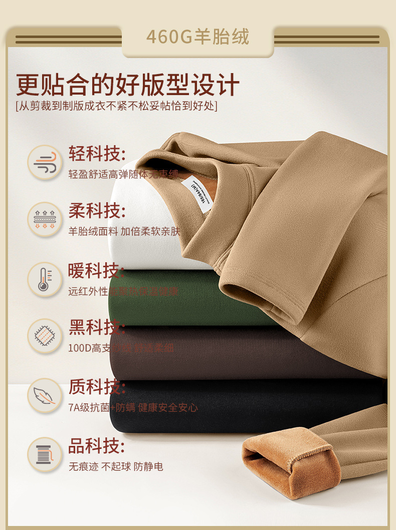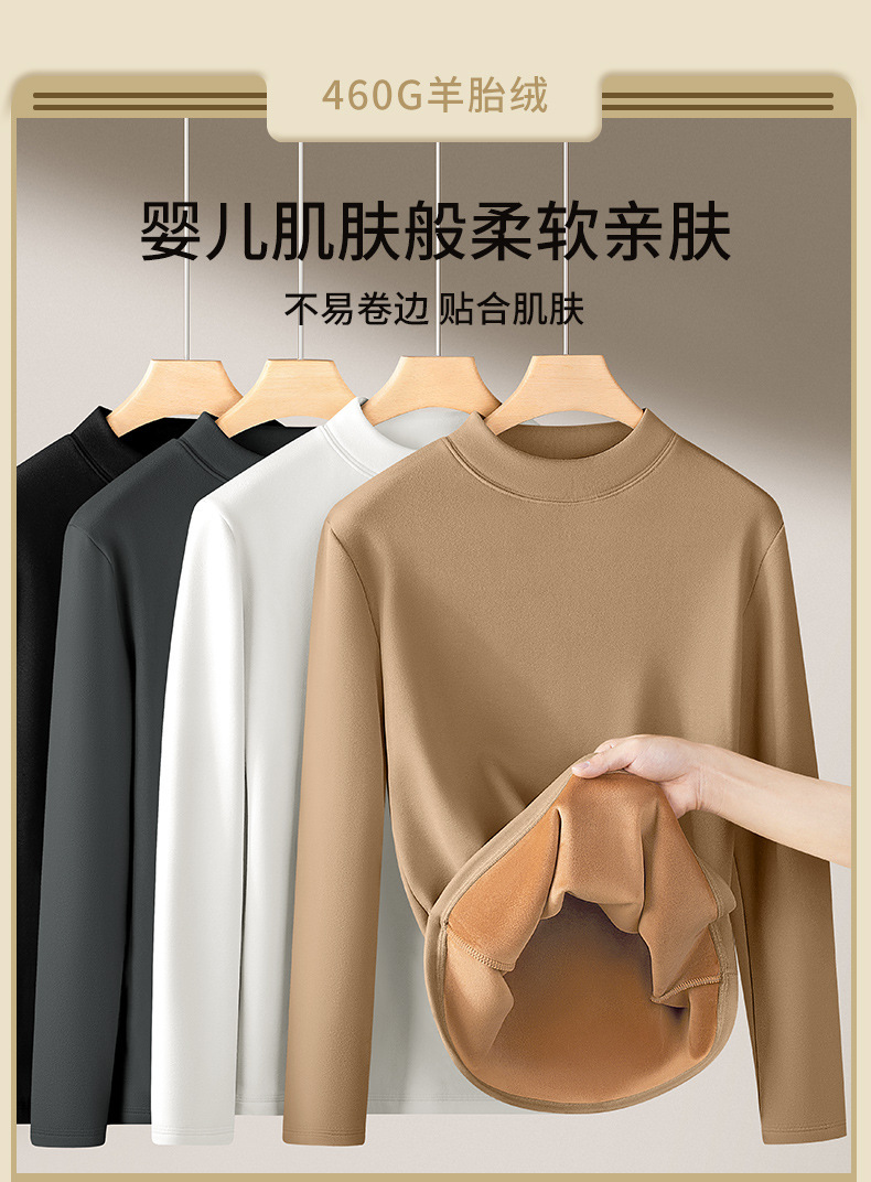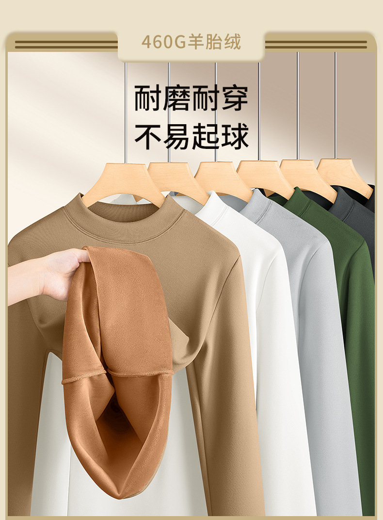 春节不打烊【加厚不臃肿❗️亲肤不扎身】秋冬款 羊胎绒内搭保暖半高领男士打底衫加绒加厚长袖内搭上衣T恤。jd