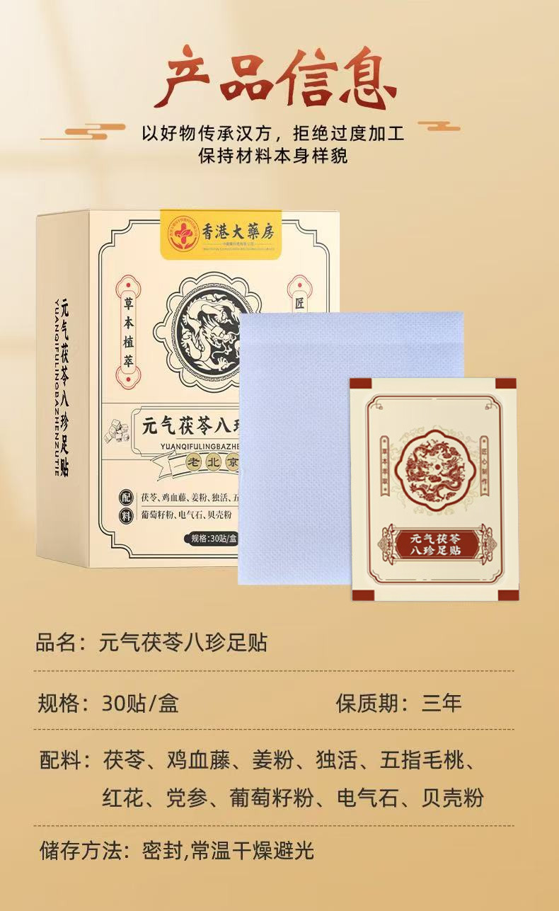 【元气茯苓!八珍足贴】摆脱水汽,不做“潮”人,老北京足贴艾草生姜足底贴艾灸贴温灸贴。rc