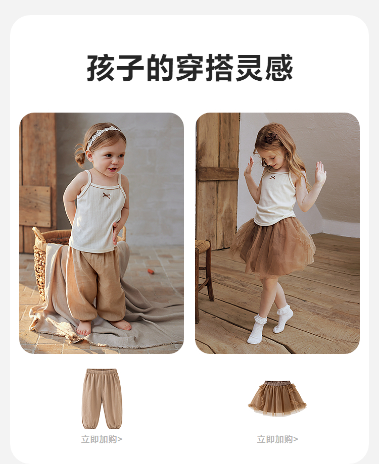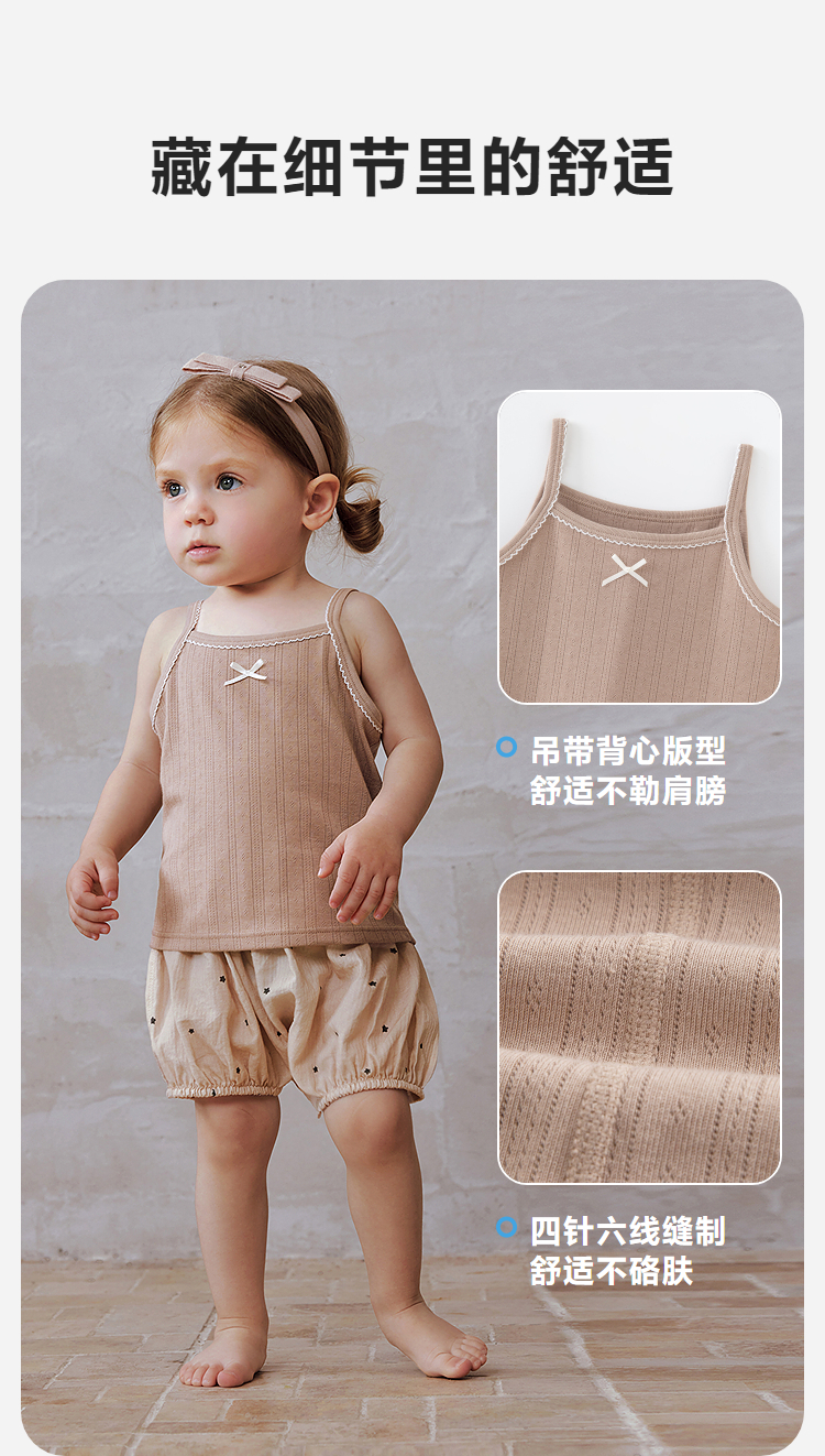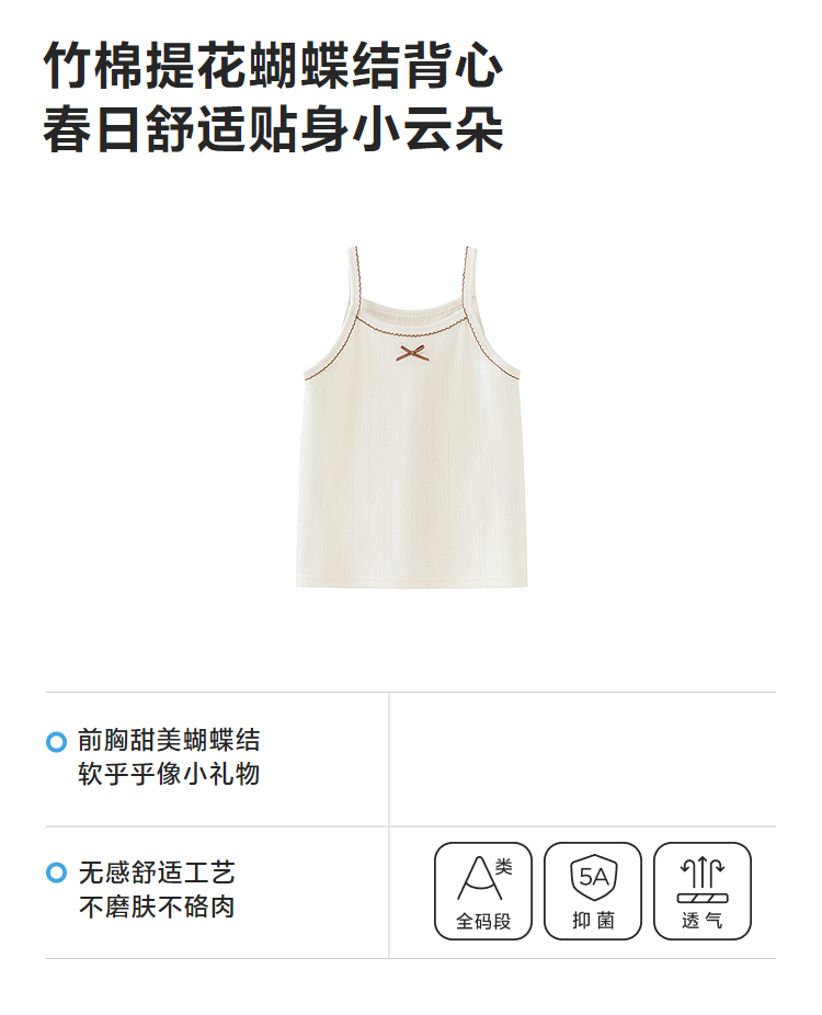 迷你巴拉巴拉女童背心柔软亲肤竹棉抑菌透气甜美家居服宝宝上衣夏