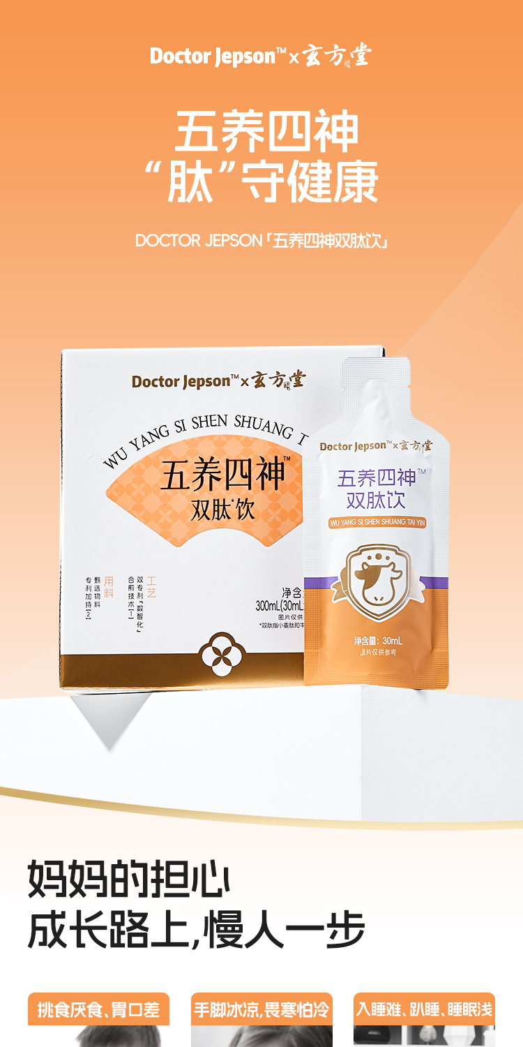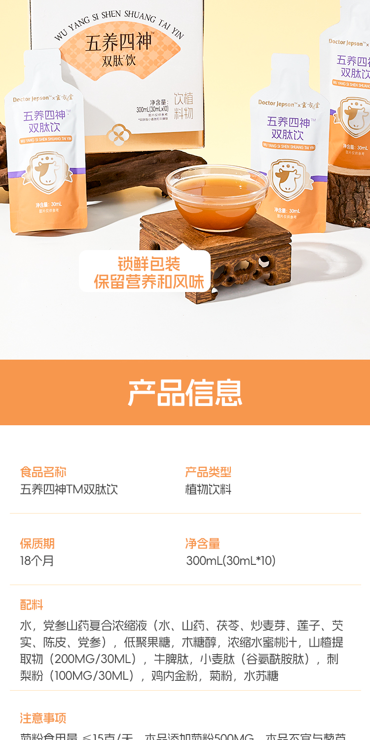 ³【五养四神双肽饮 】蜜桃味健脾饮草本植萃+益生元+山楂提取物+刺梨粉+小麦肽+鸡内金粉+牛脾肽 30ml*10袋/盒 XN03-CRMM-HPK(HOT)