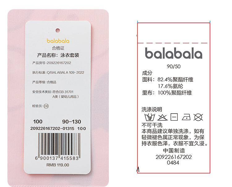 巴拉巴拉儿童泳衣男女童宝宝2026年新款分体泳装防晒耐氯泳衣裤